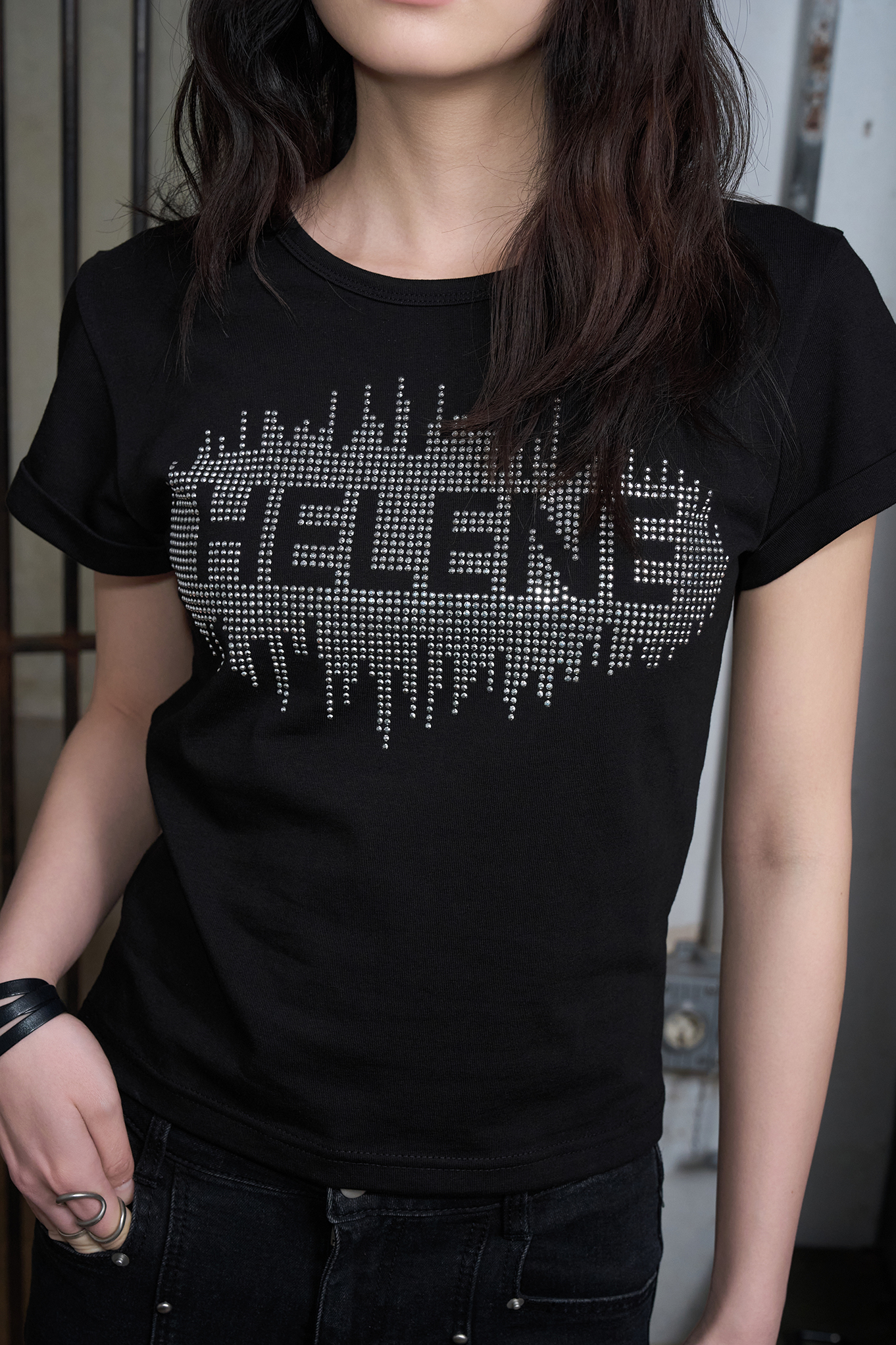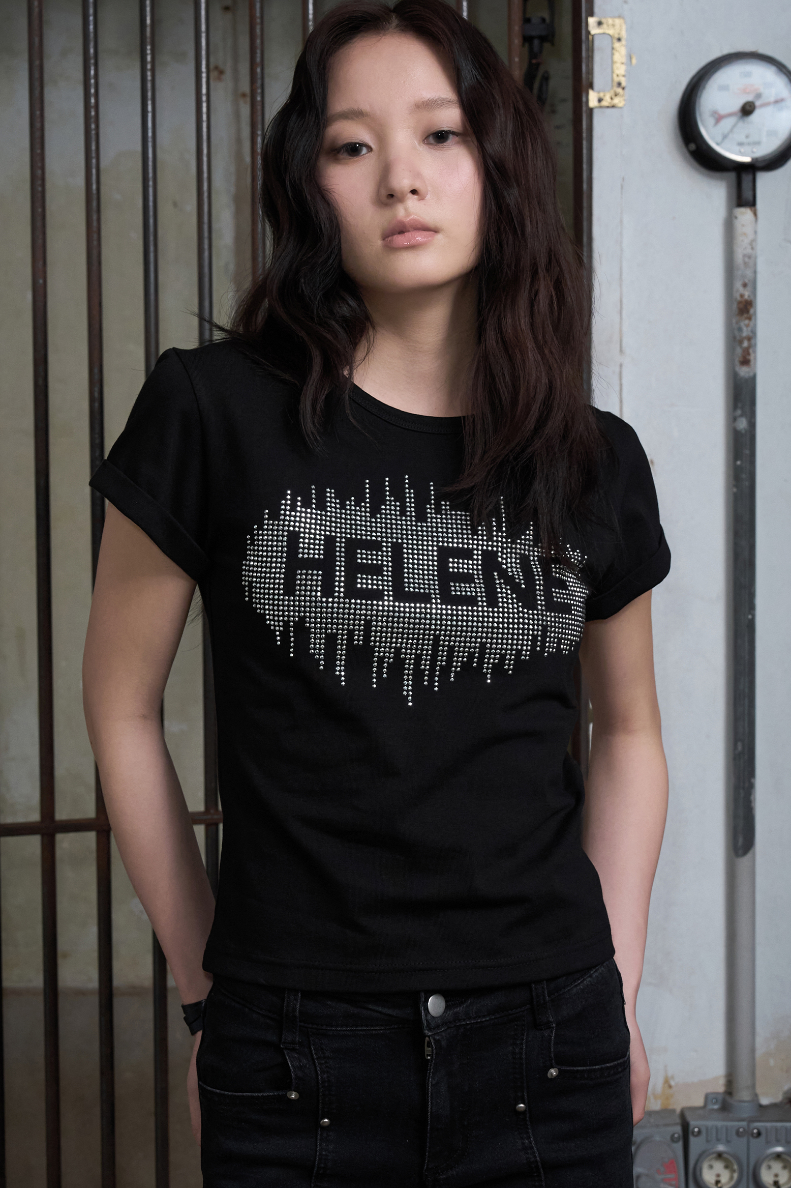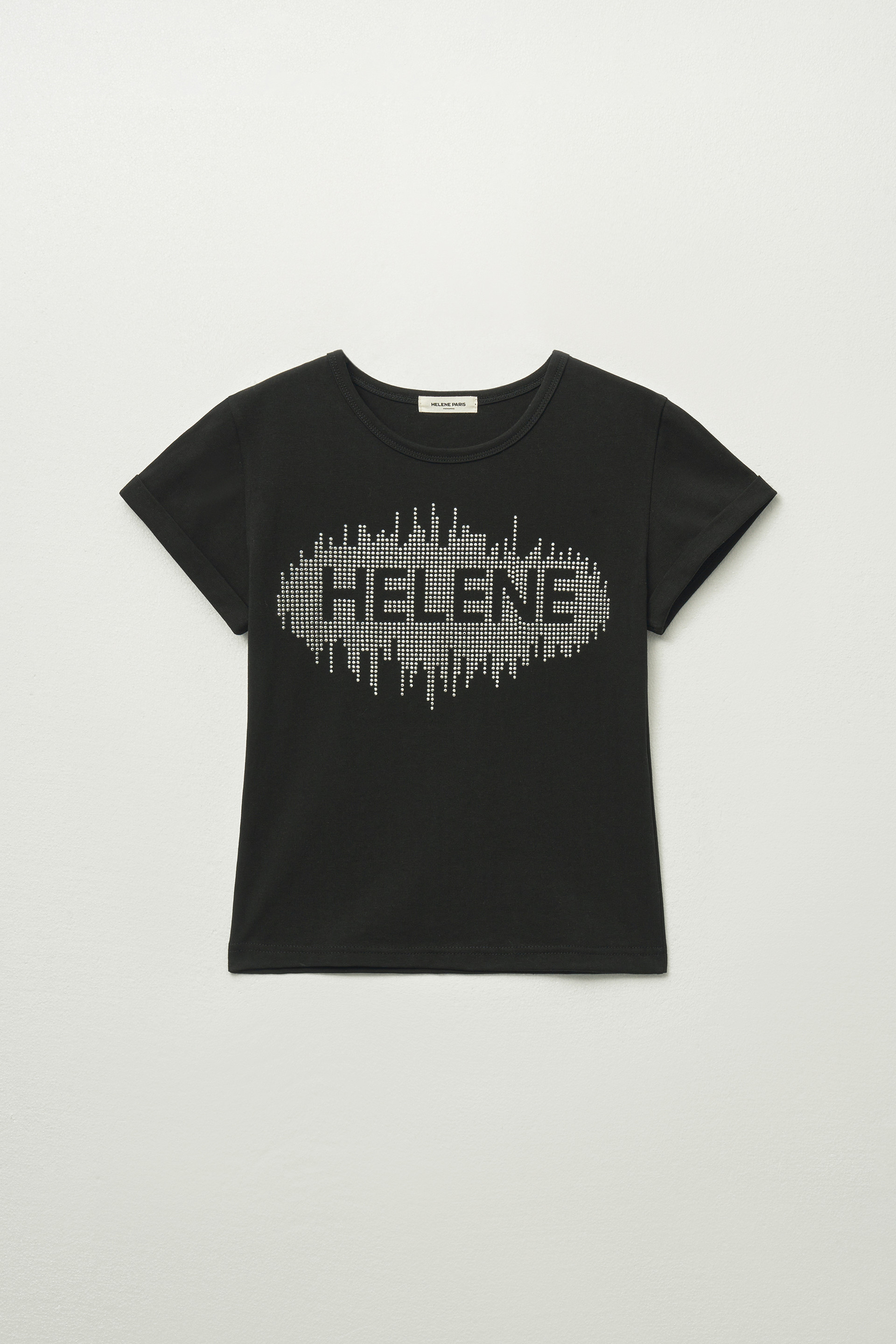 헬레네 스터드 아플리케 하프 티셔츠 [블랙]