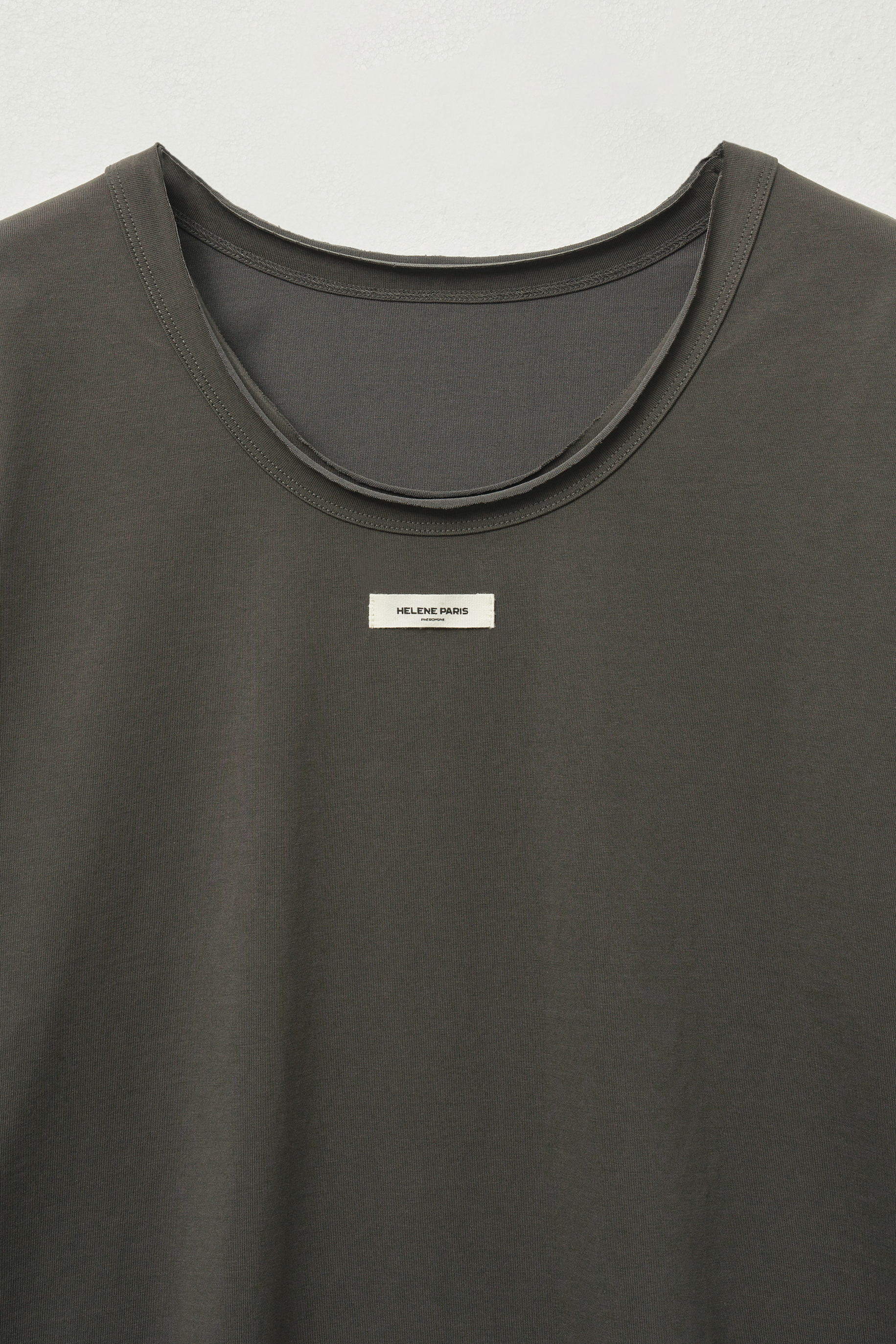 러프 라인 오버핏 하프 티셔츠 [문 그레이]
