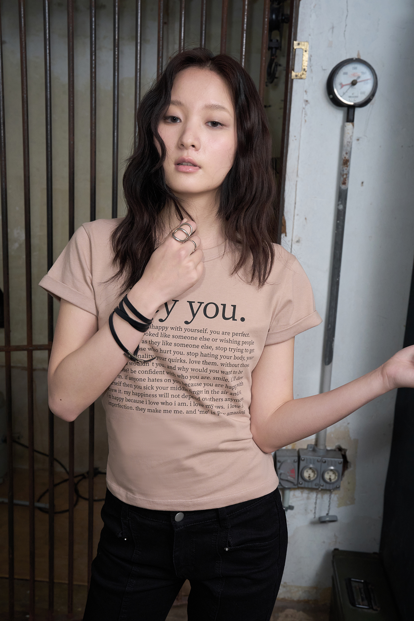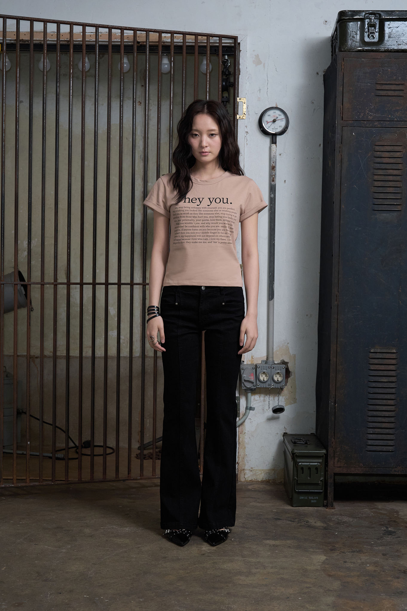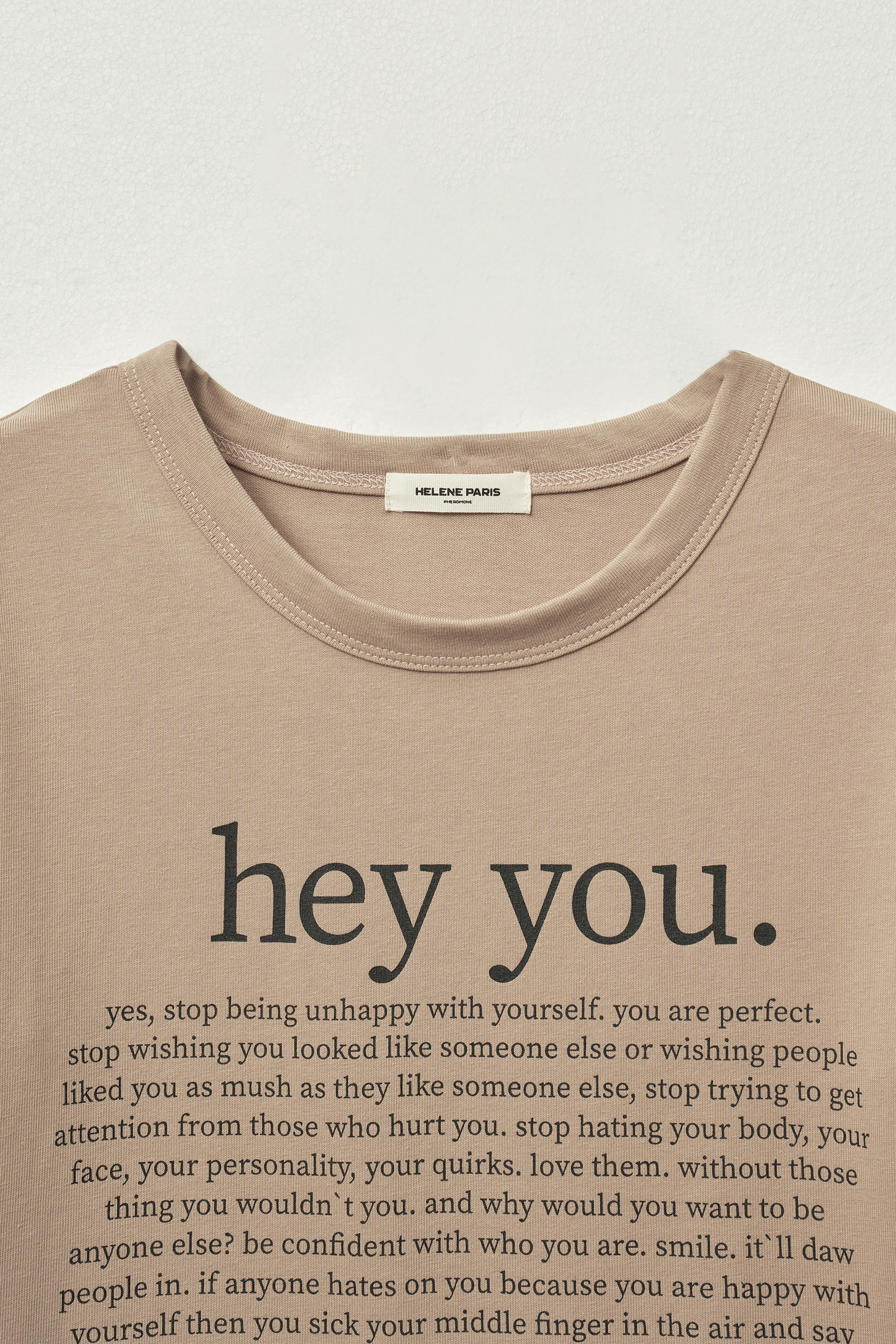 HEY YOU 아트워크 하프 티셔츠 [아몬드]