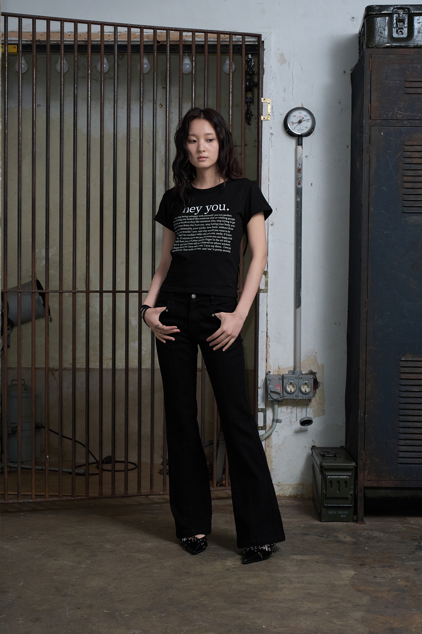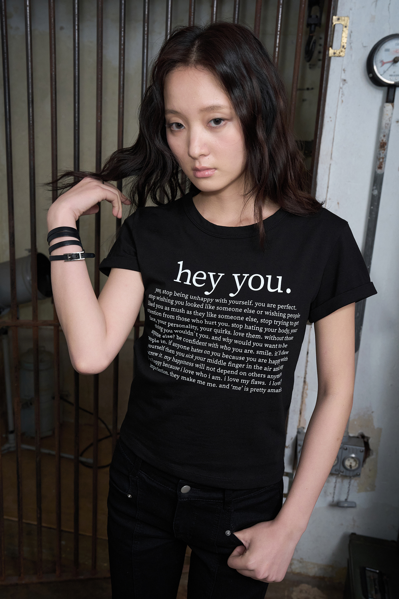 HEY YOU 아트워크 하프 티셔츠 [블랙]