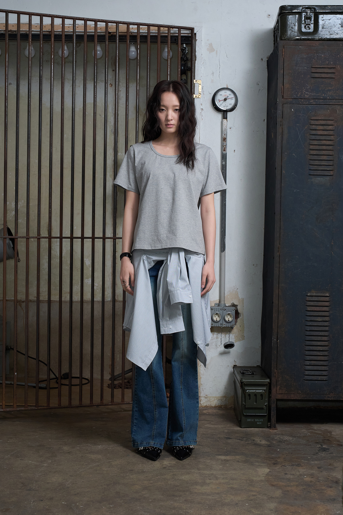 에센셜 U 네크라인 하프 티셔츠 [멜란지]