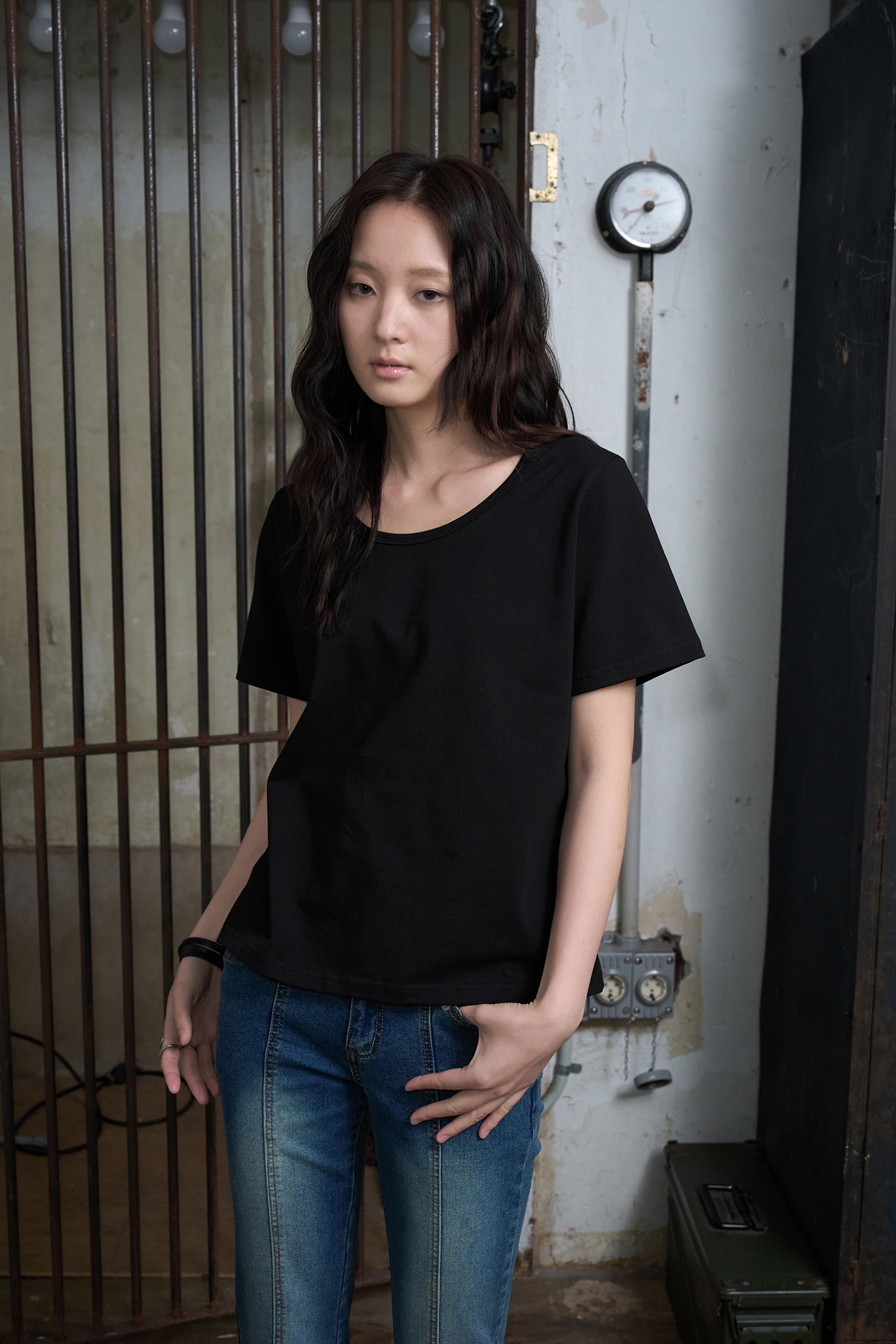 에센셜 U 네크라인 하프 티셔츠 [블랙]
