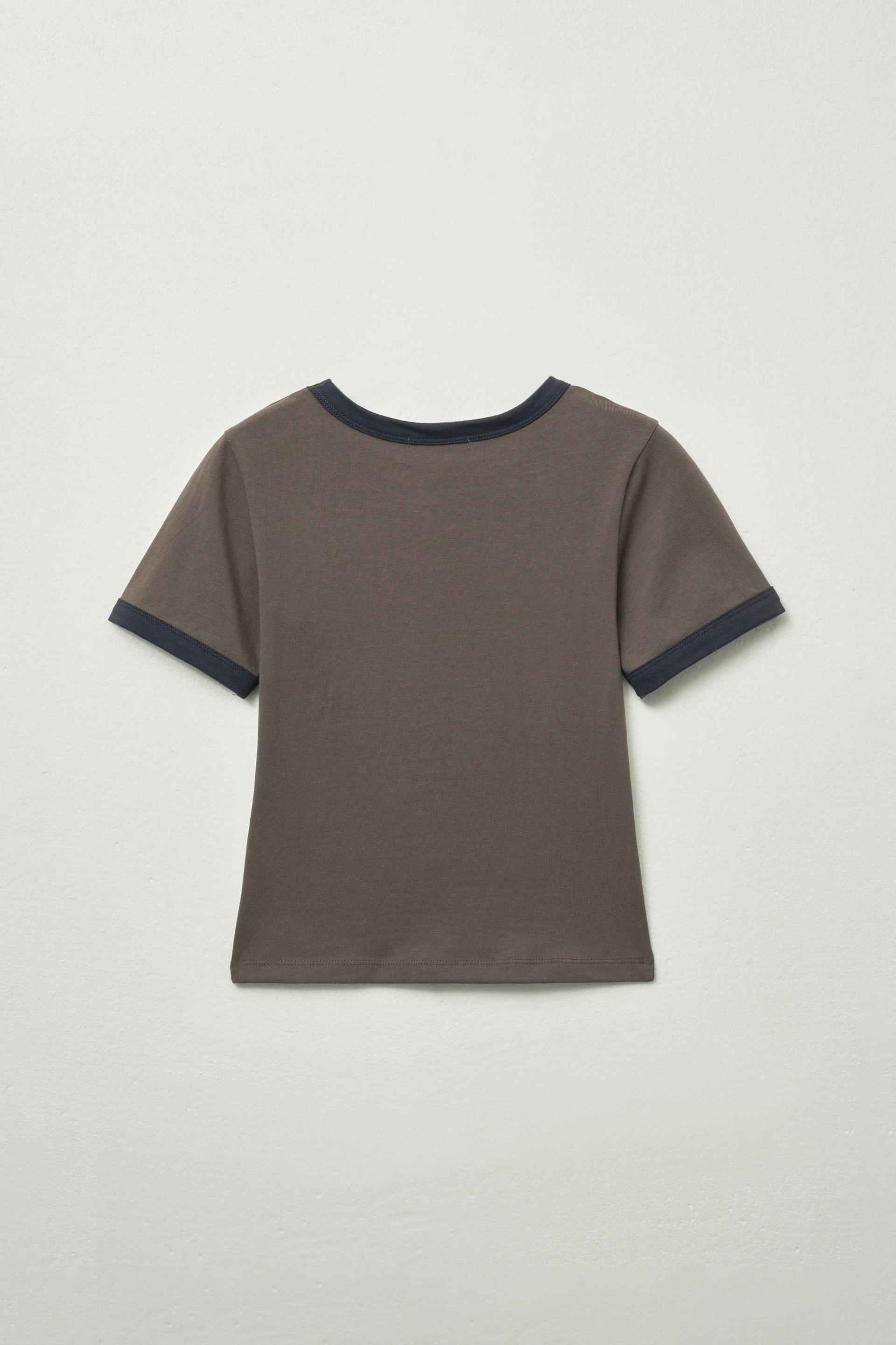 - 라운드넥과 소매에 레트로한 배색 디자인이 들어간 링거 티셔츠입니다.
