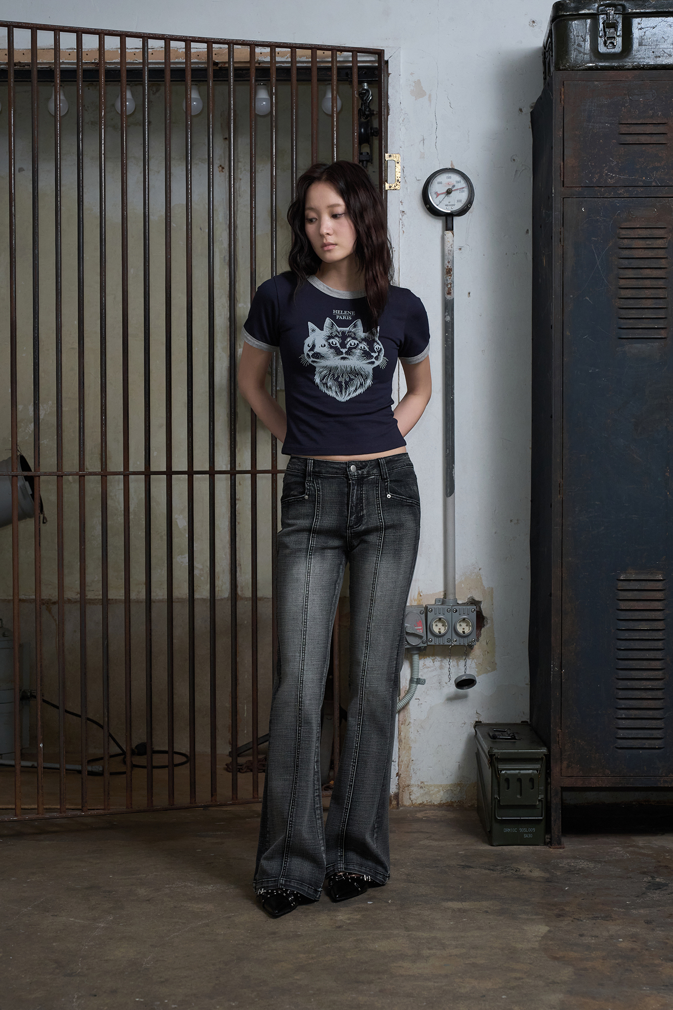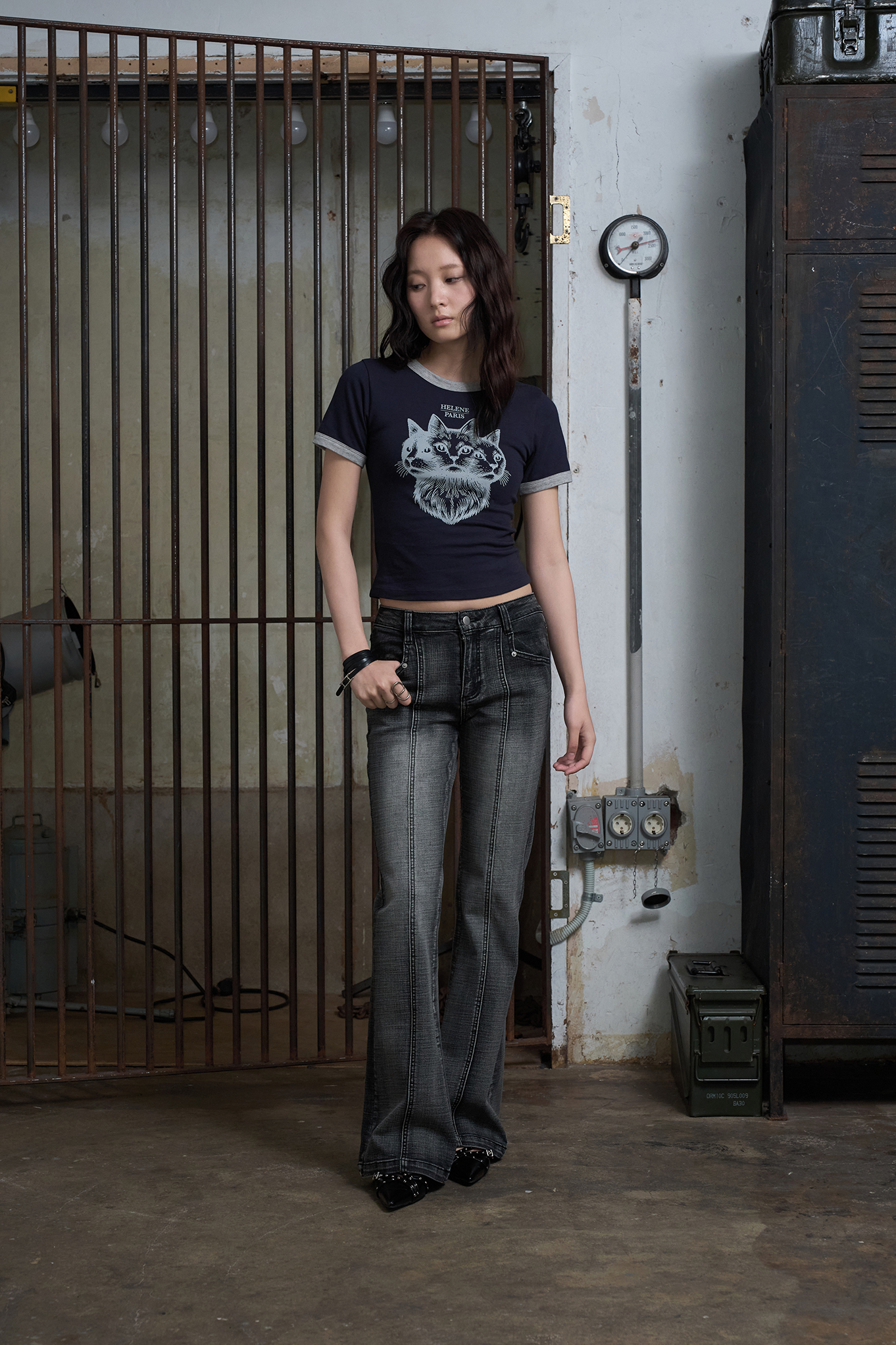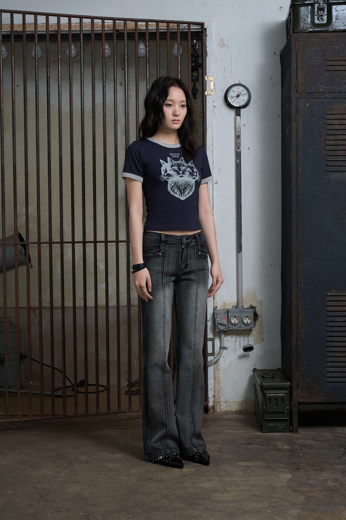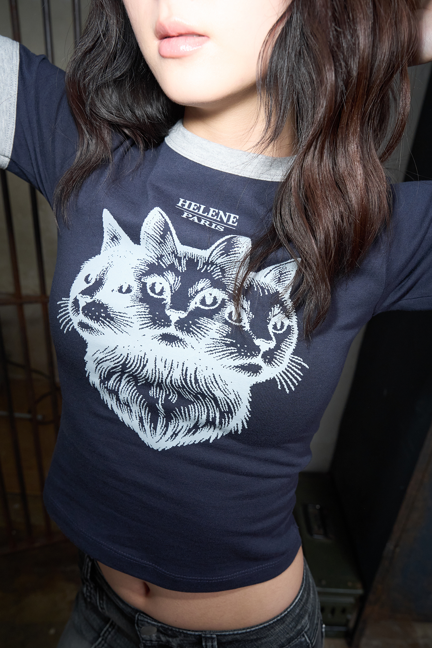 트리오캣 아트워크 하프 티셔츠 [네이비]