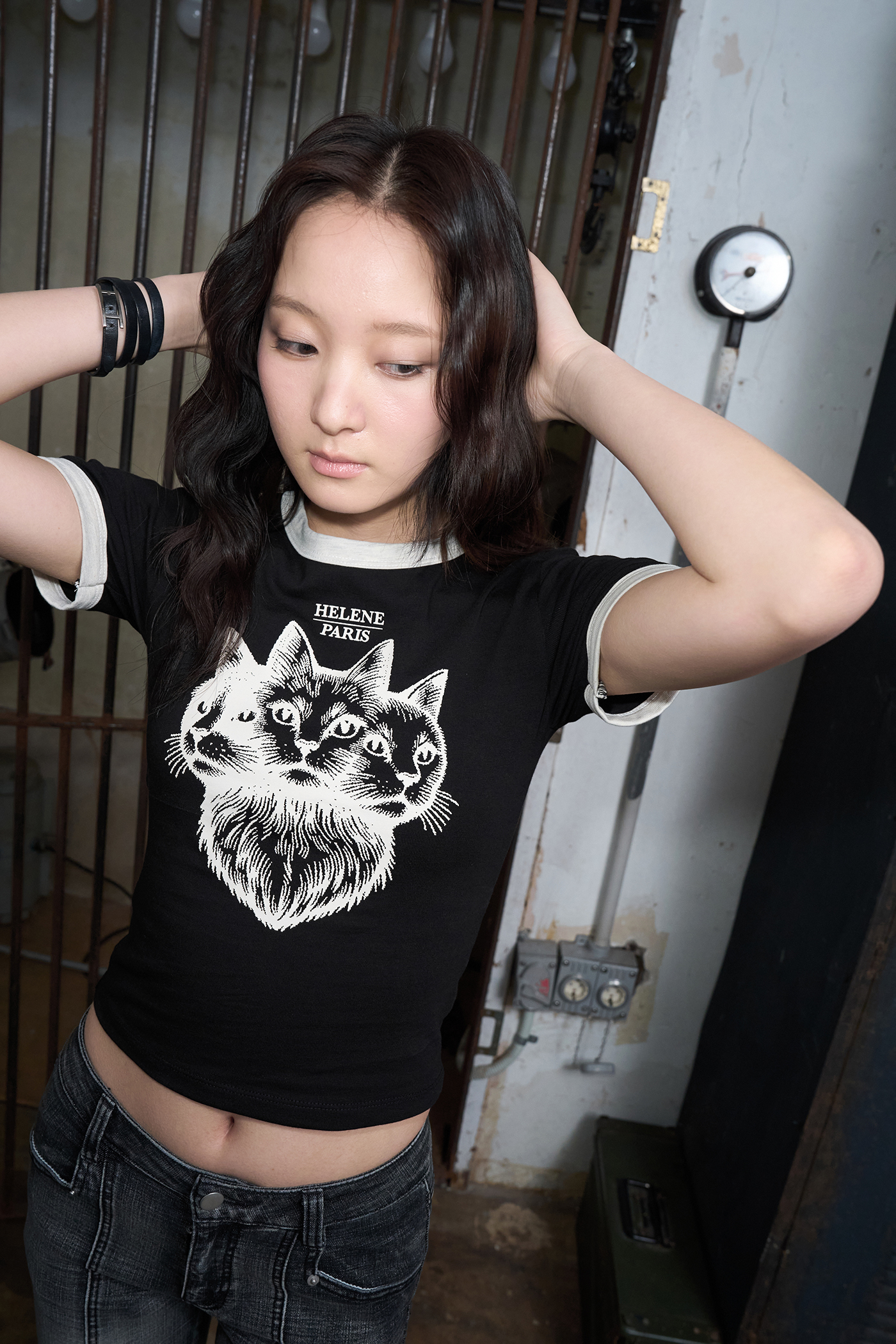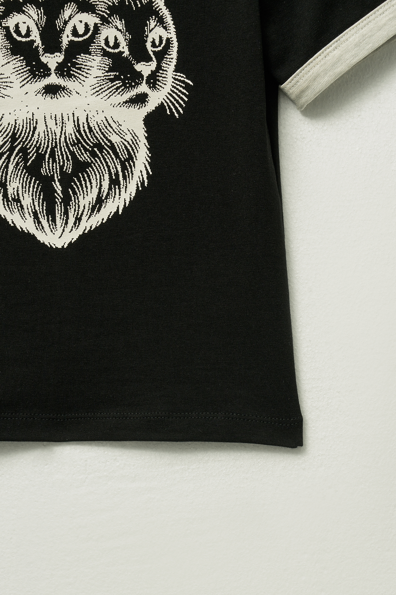 트리오캣 아트워크 하프 티셔츠 [블랙]