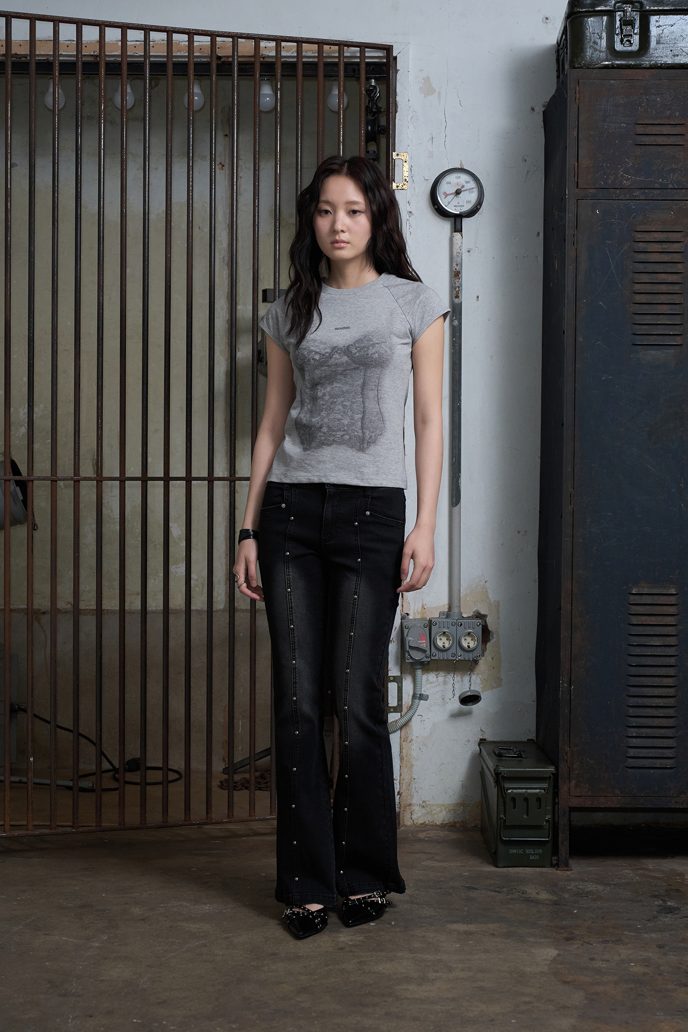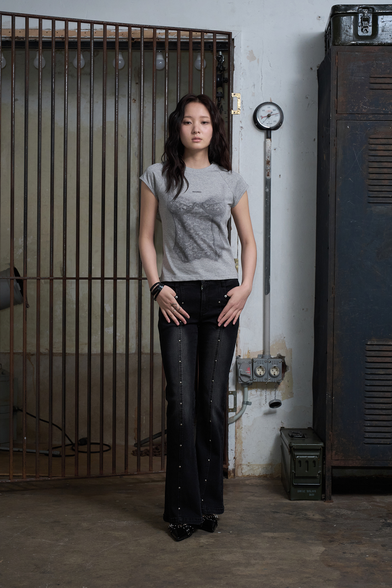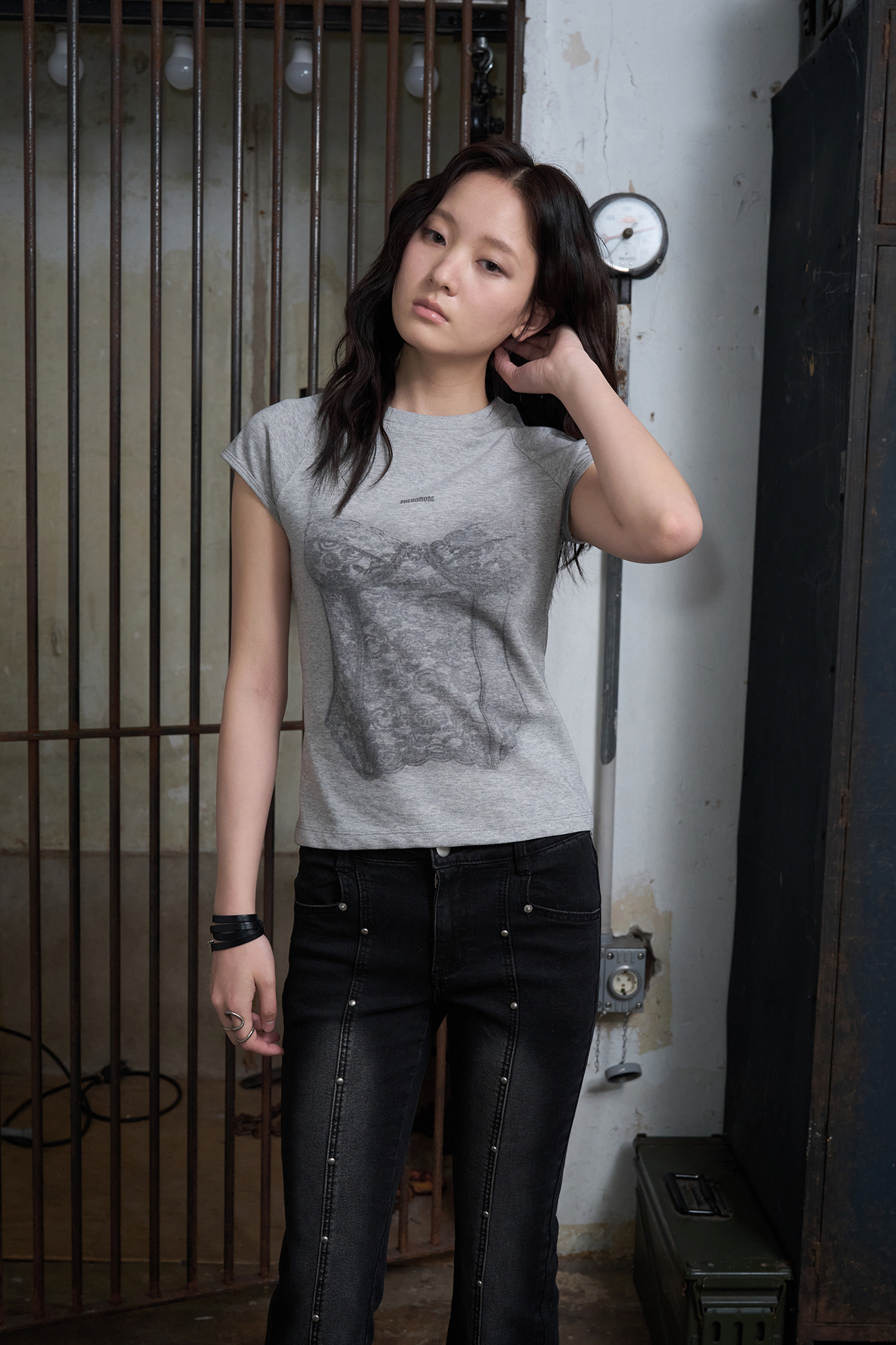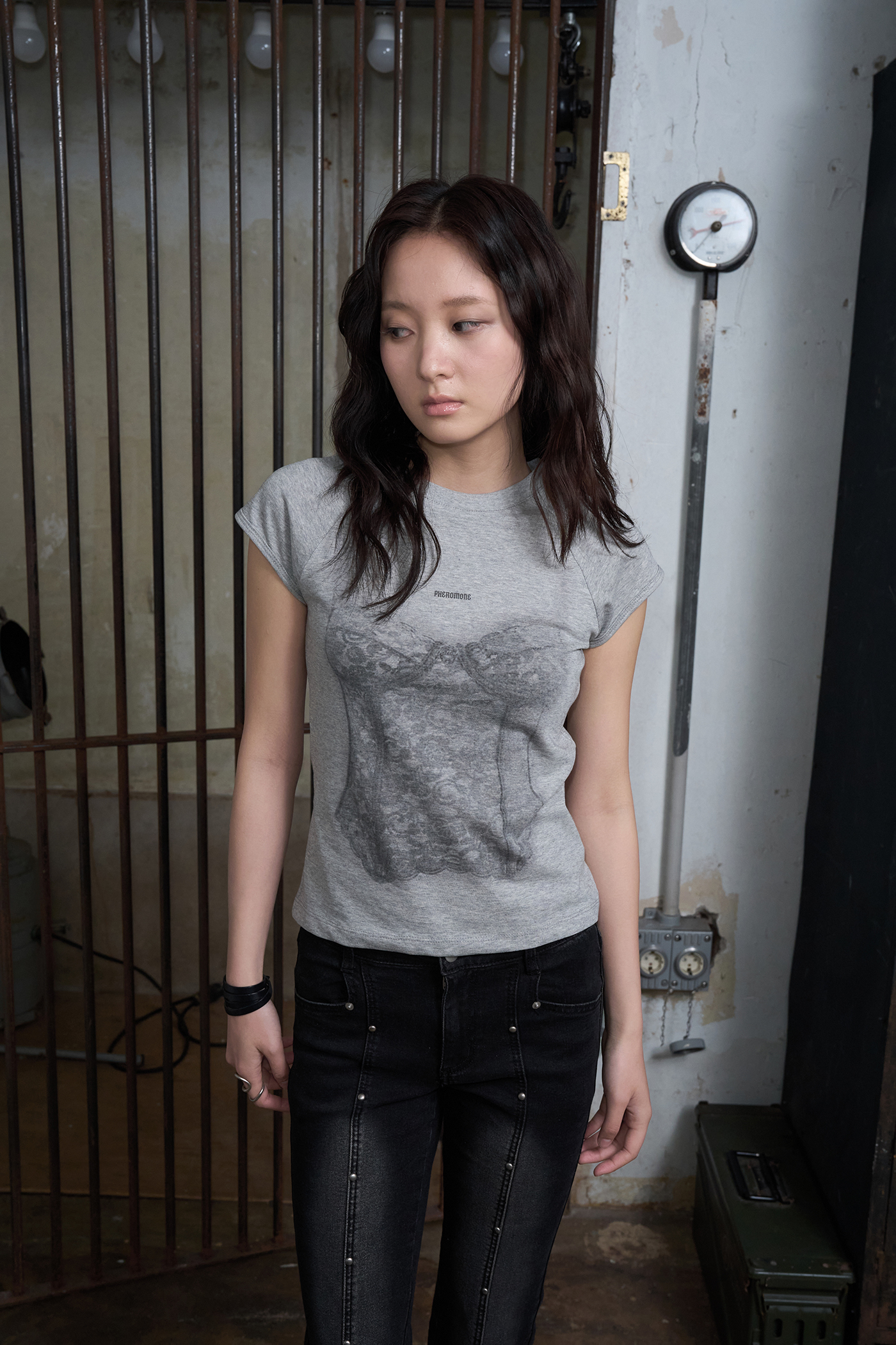 코르셋 프린트 하프 티셔츠 [멜란지]