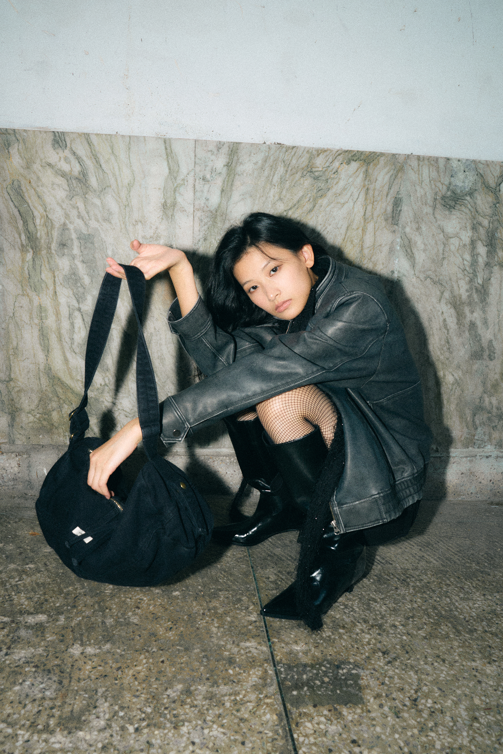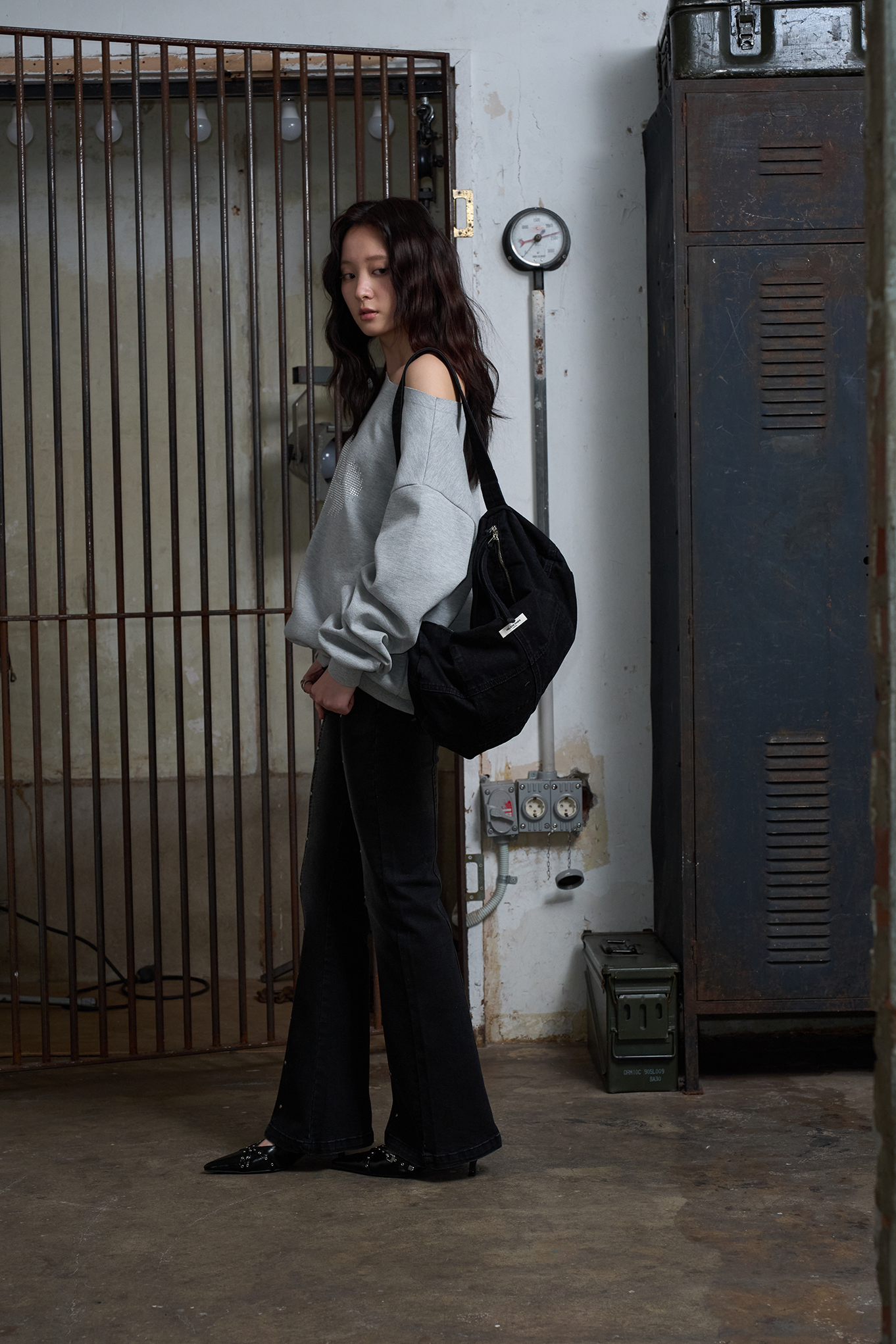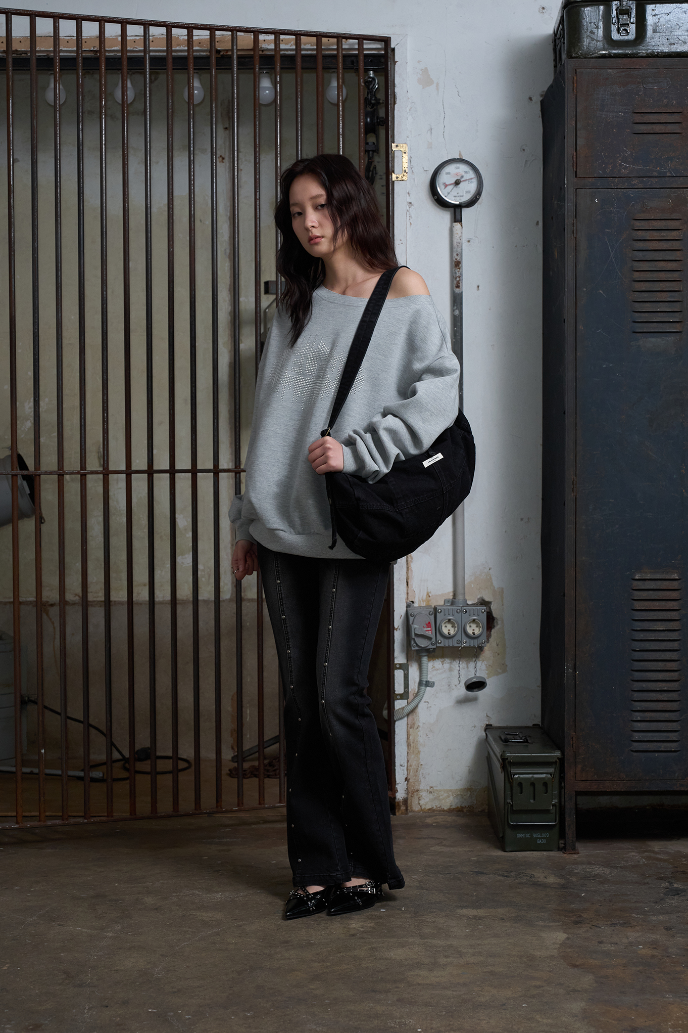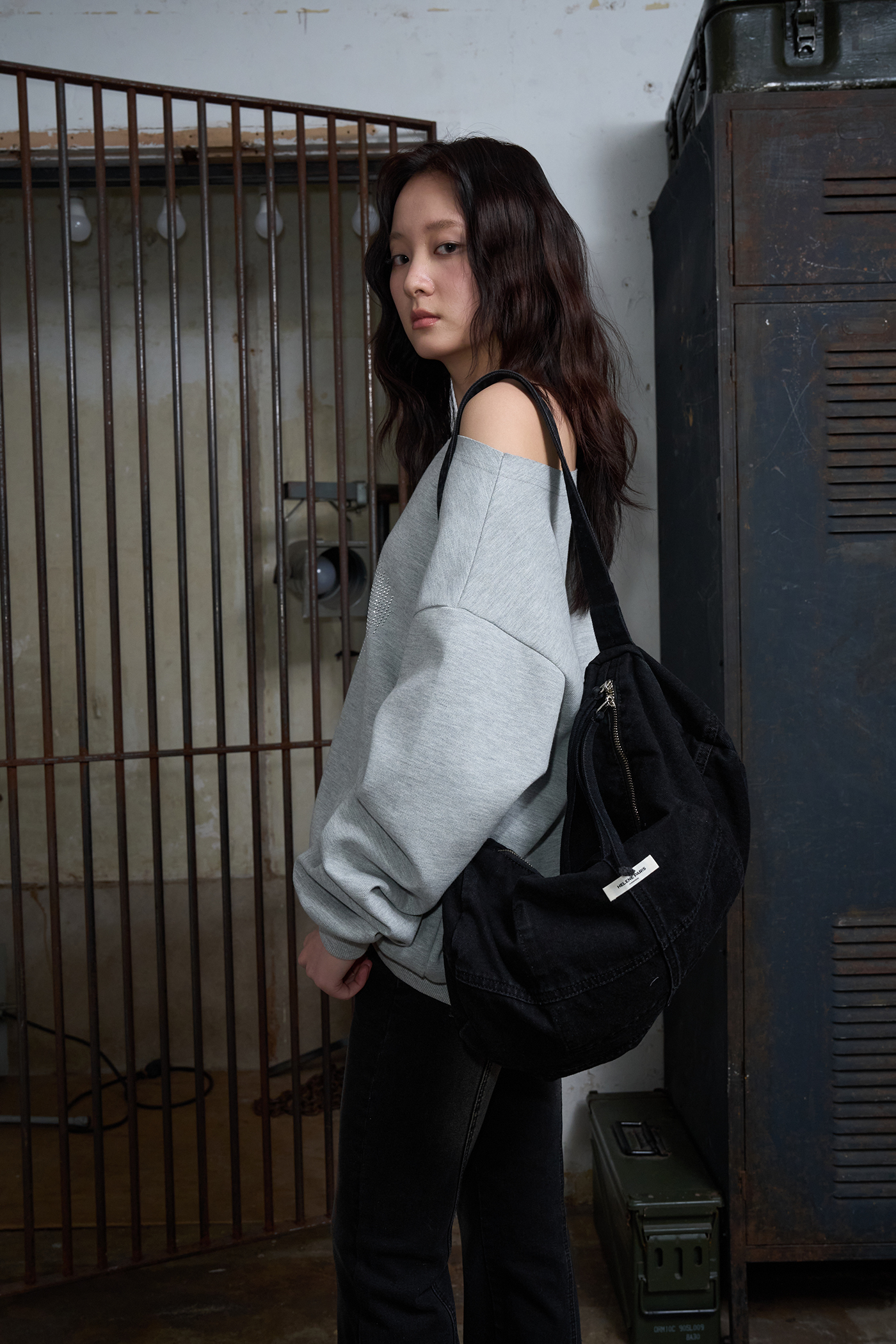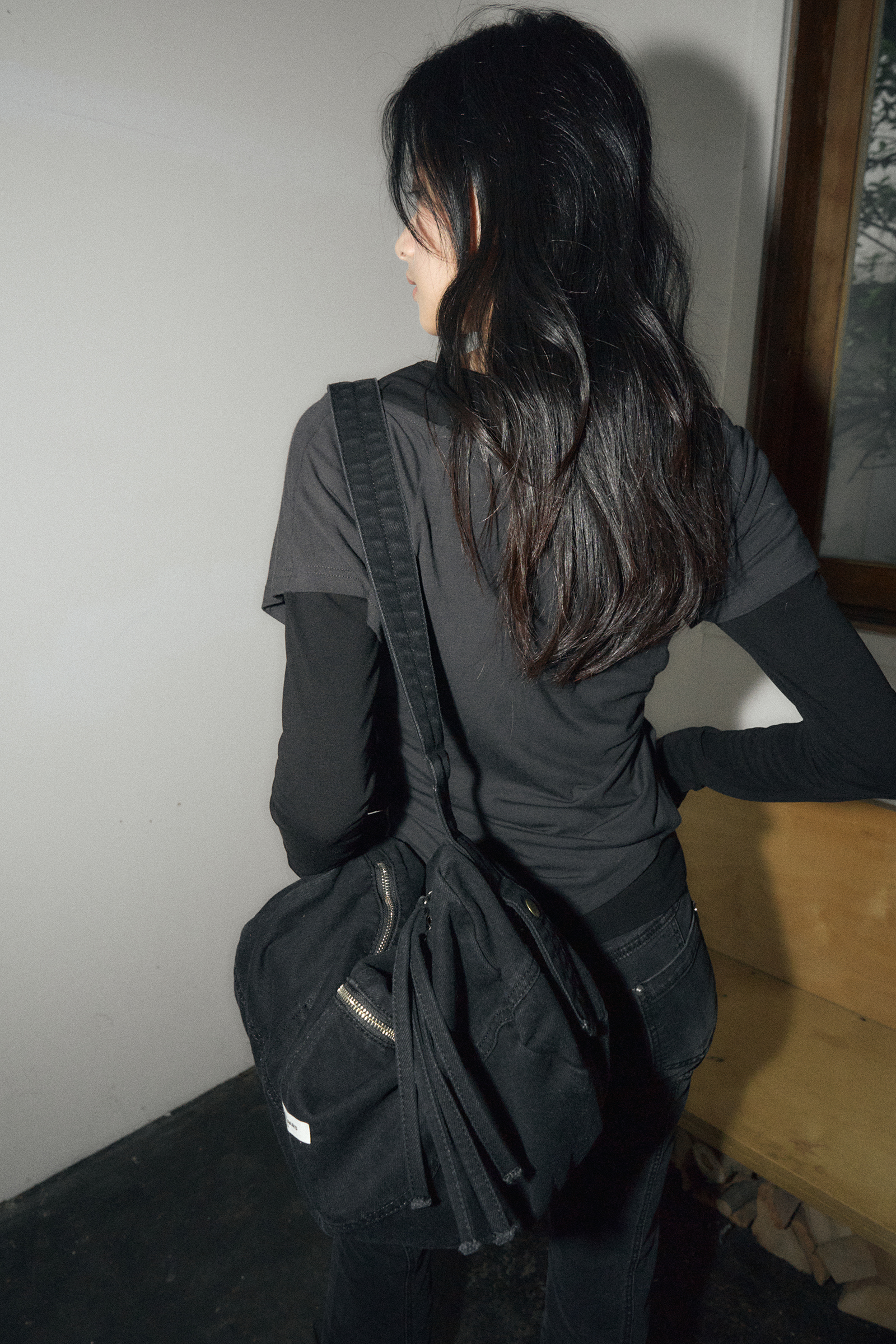 워시드 데님 크로스백 [블랙]