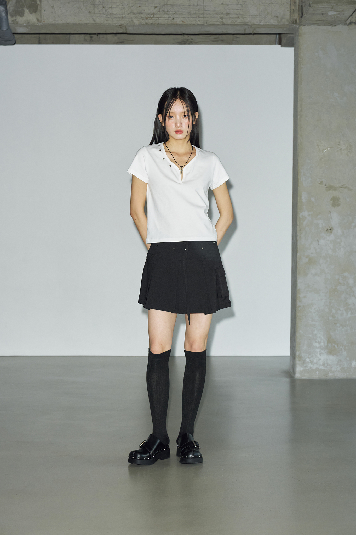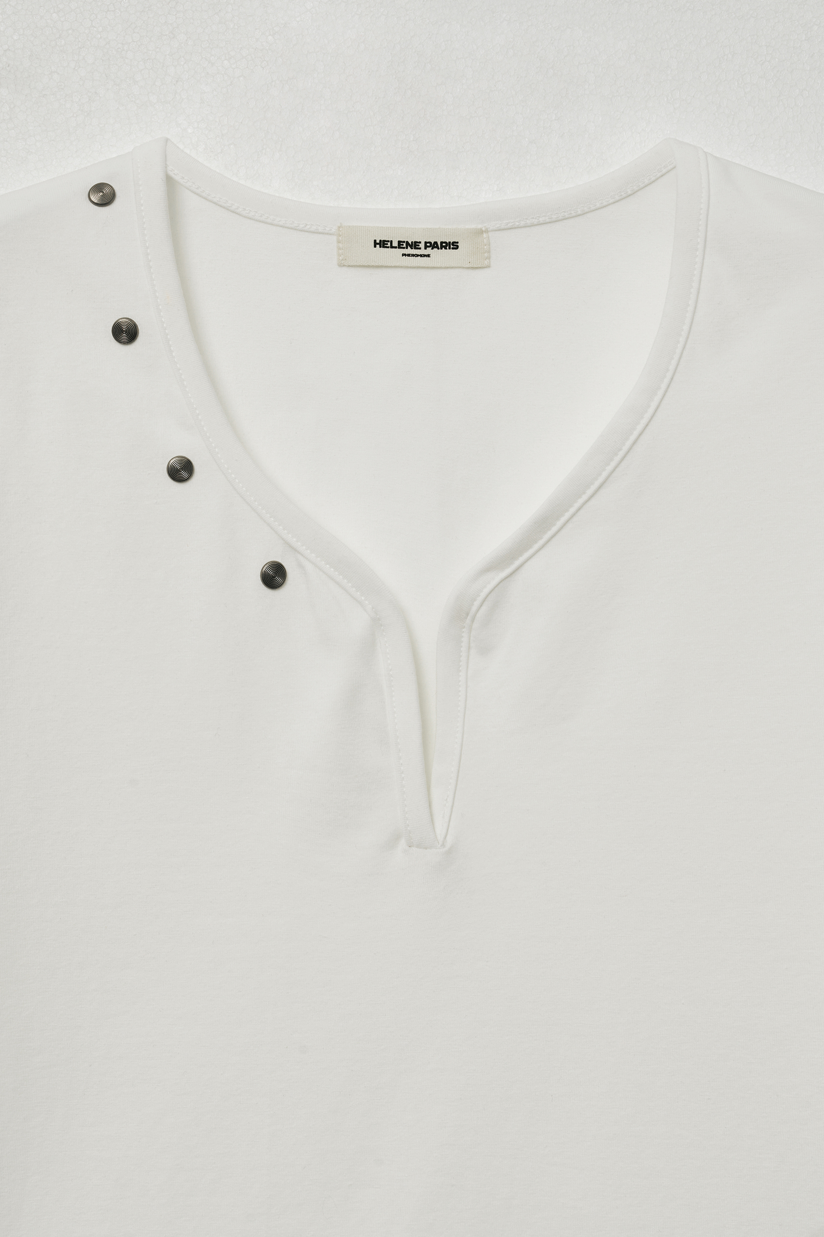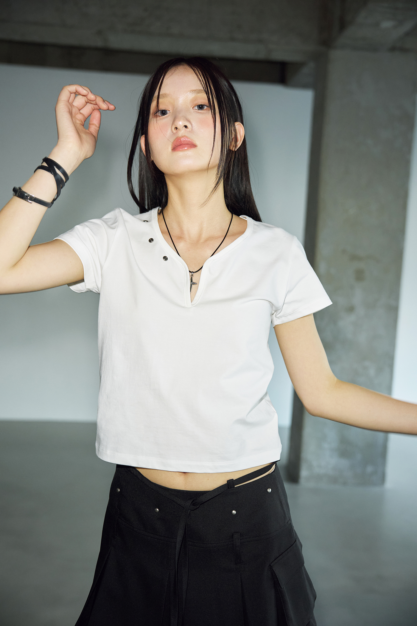 스터드 Y 네크라인 하프 슬리브 [화이트]