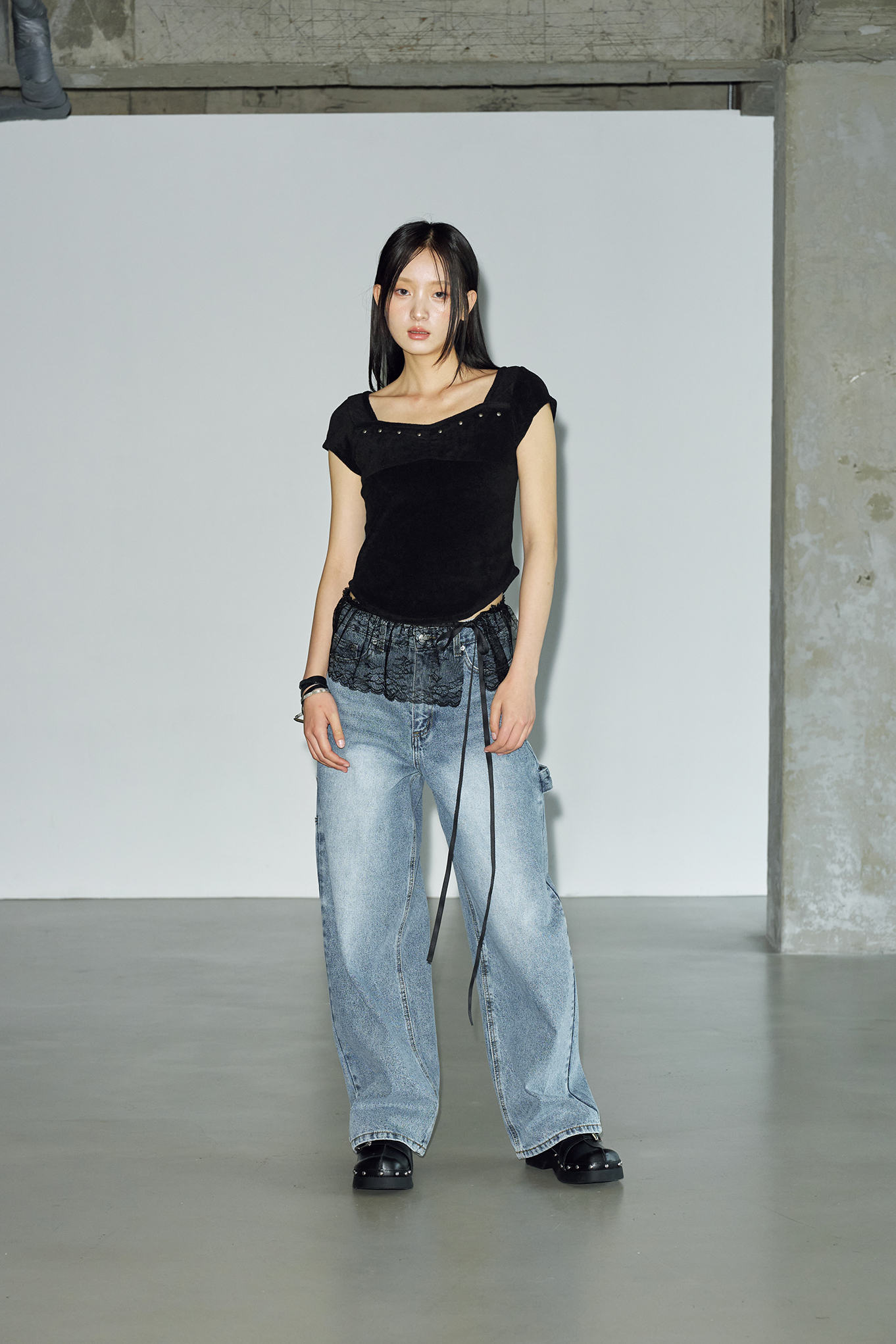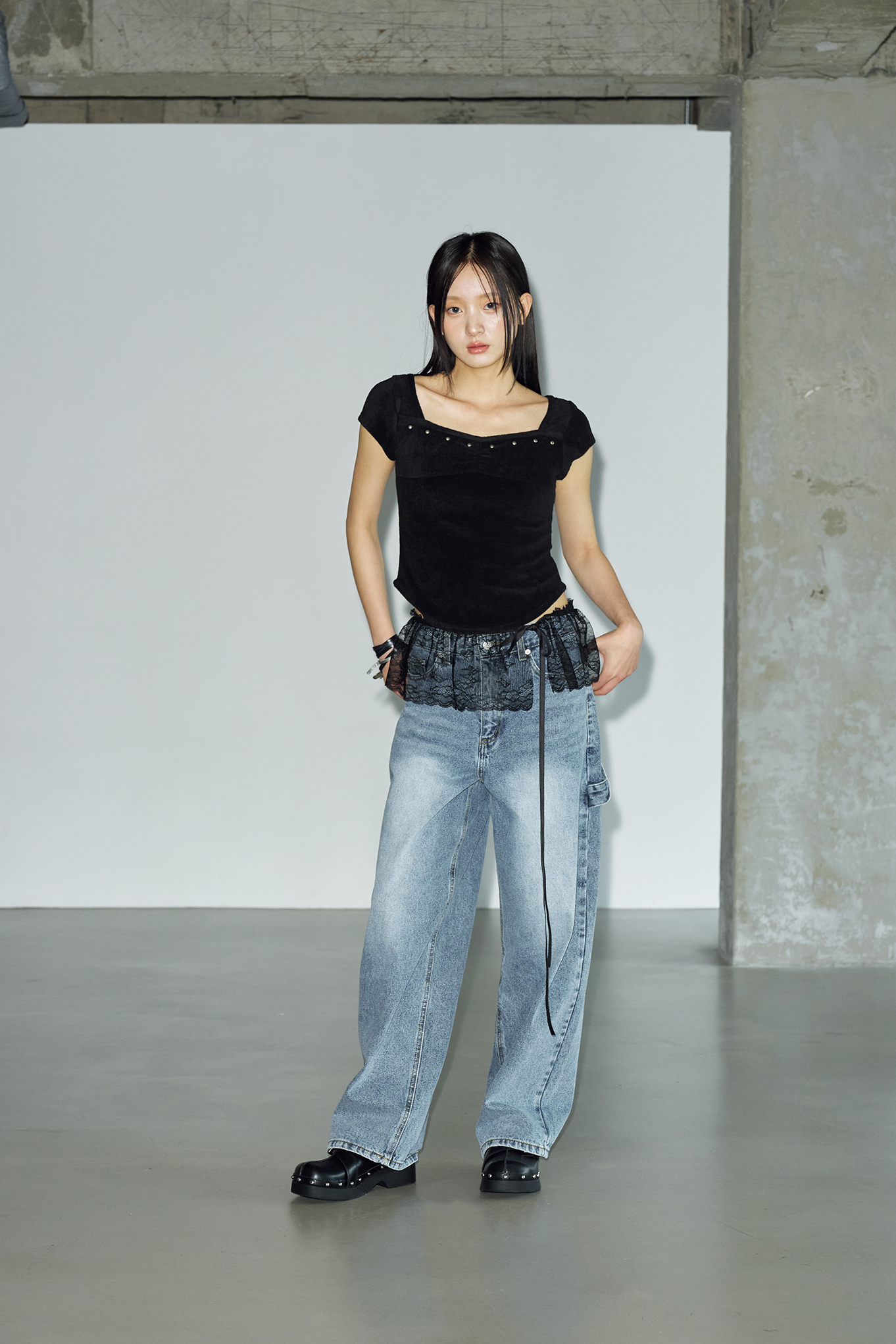 - 체스트 라인에 절개 디테일과 스터드 장식을 더해 유니크하면서도 감각적인 포인트를 더했습니다.