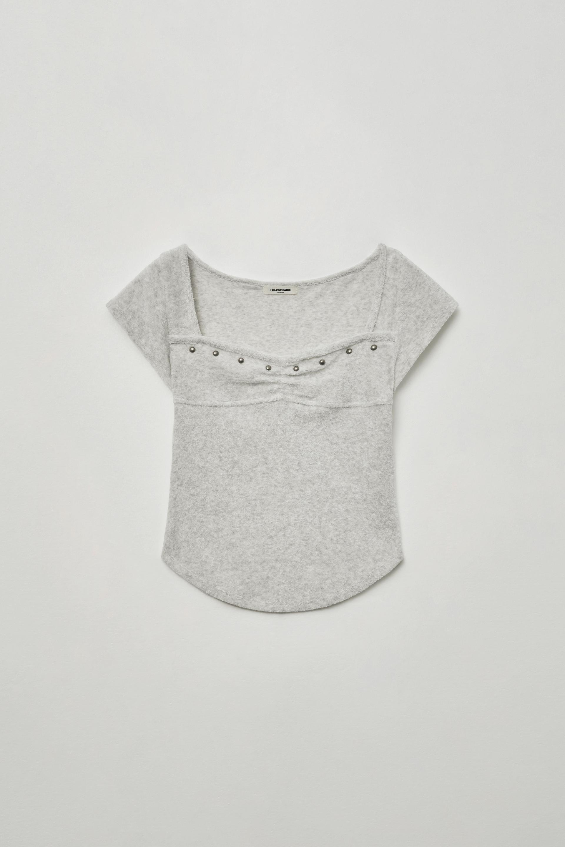테리 스터드 스퀘어 하프 티셔츠 [오트밀]
