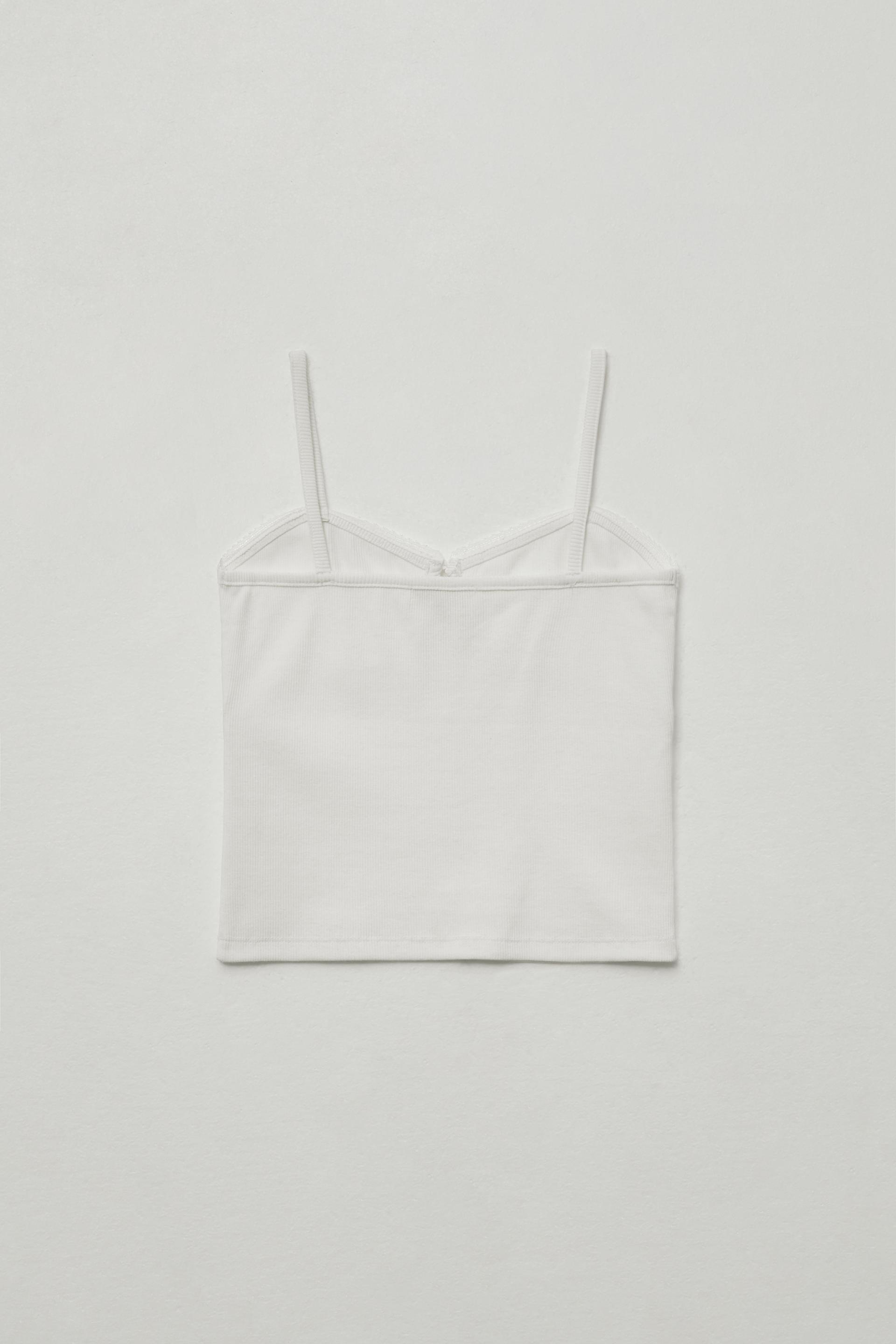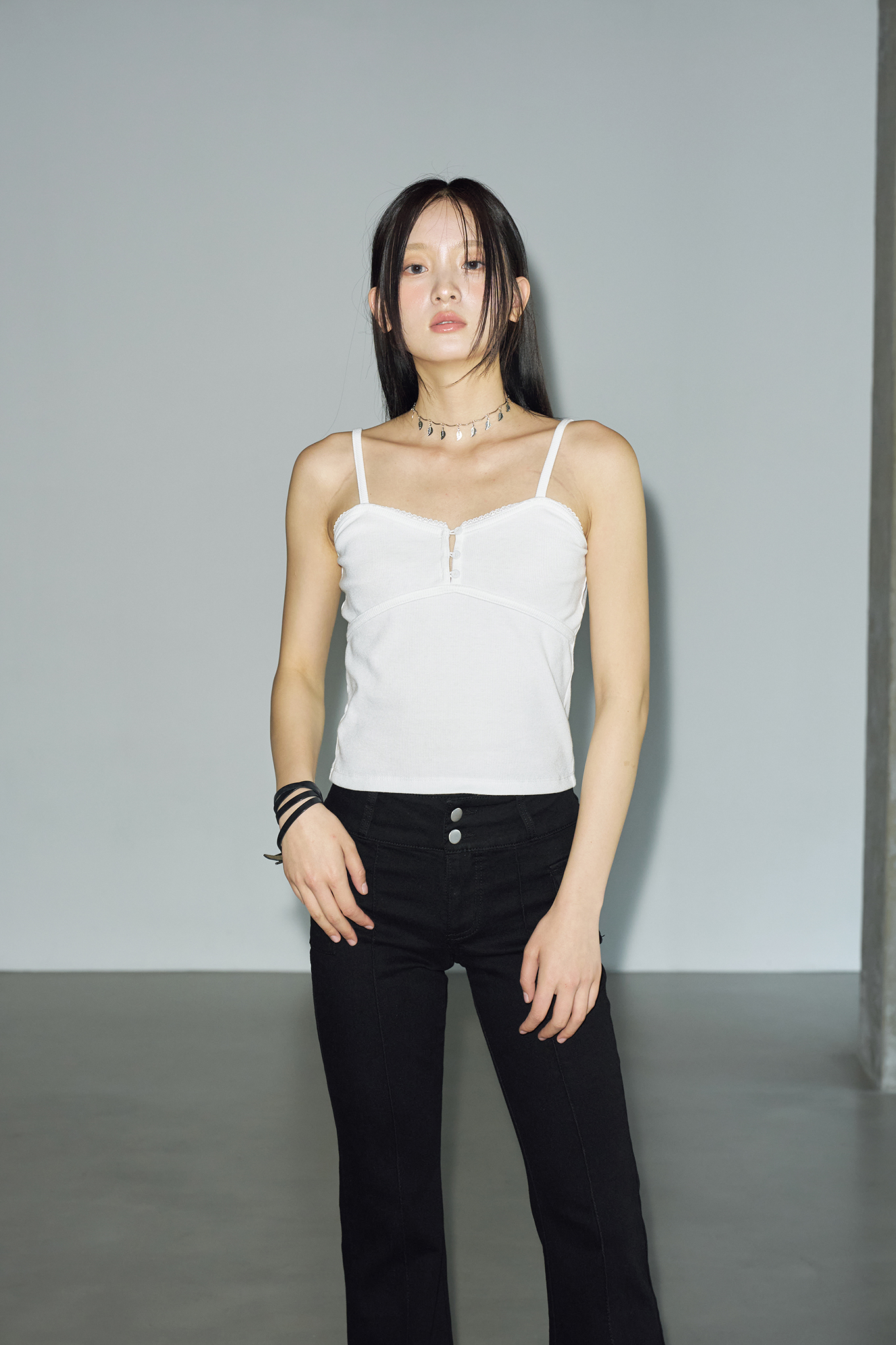- 레이스 디테일과 버튼 포인트로 여성스러운 무드를 강조하는 탱크탑입니다.