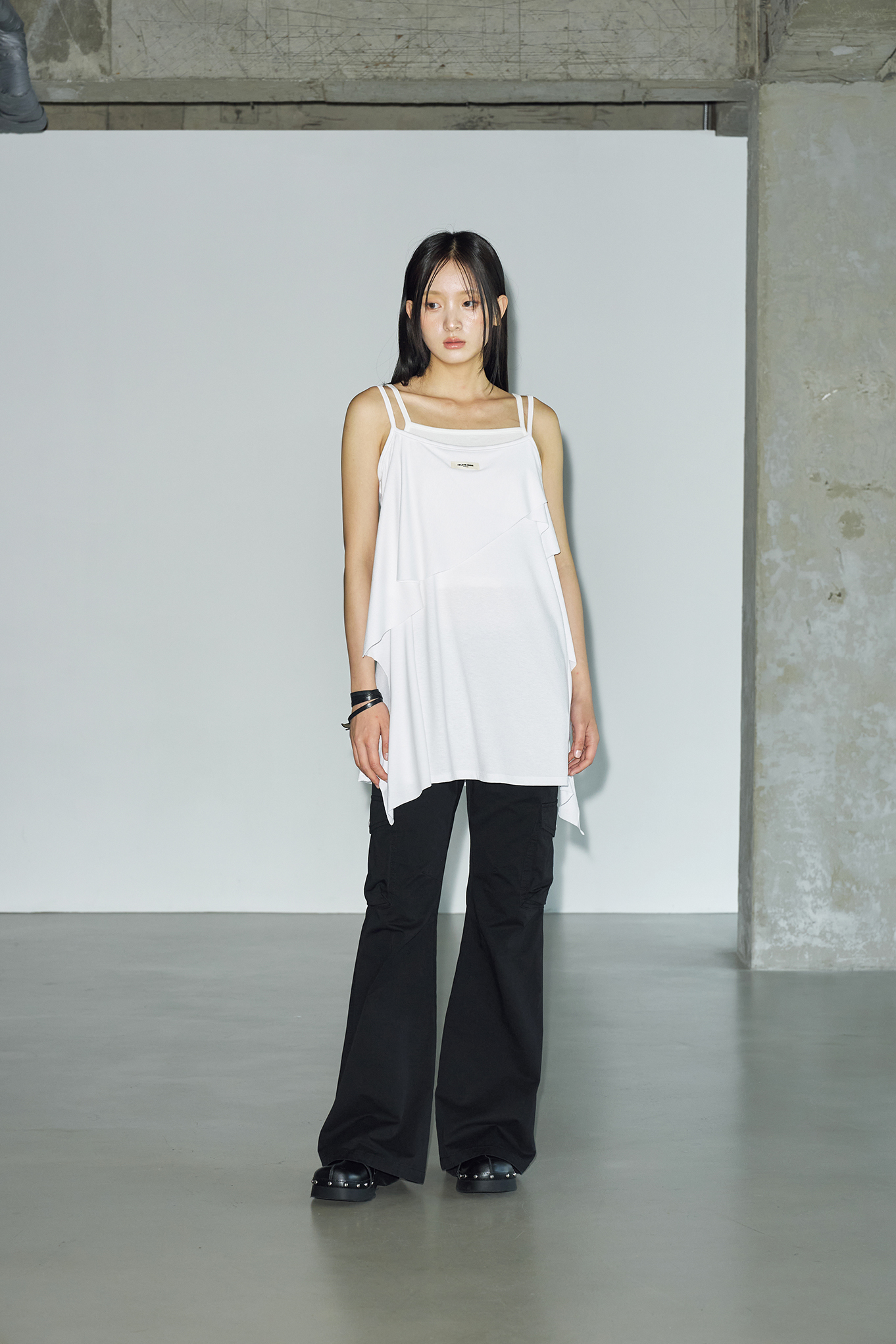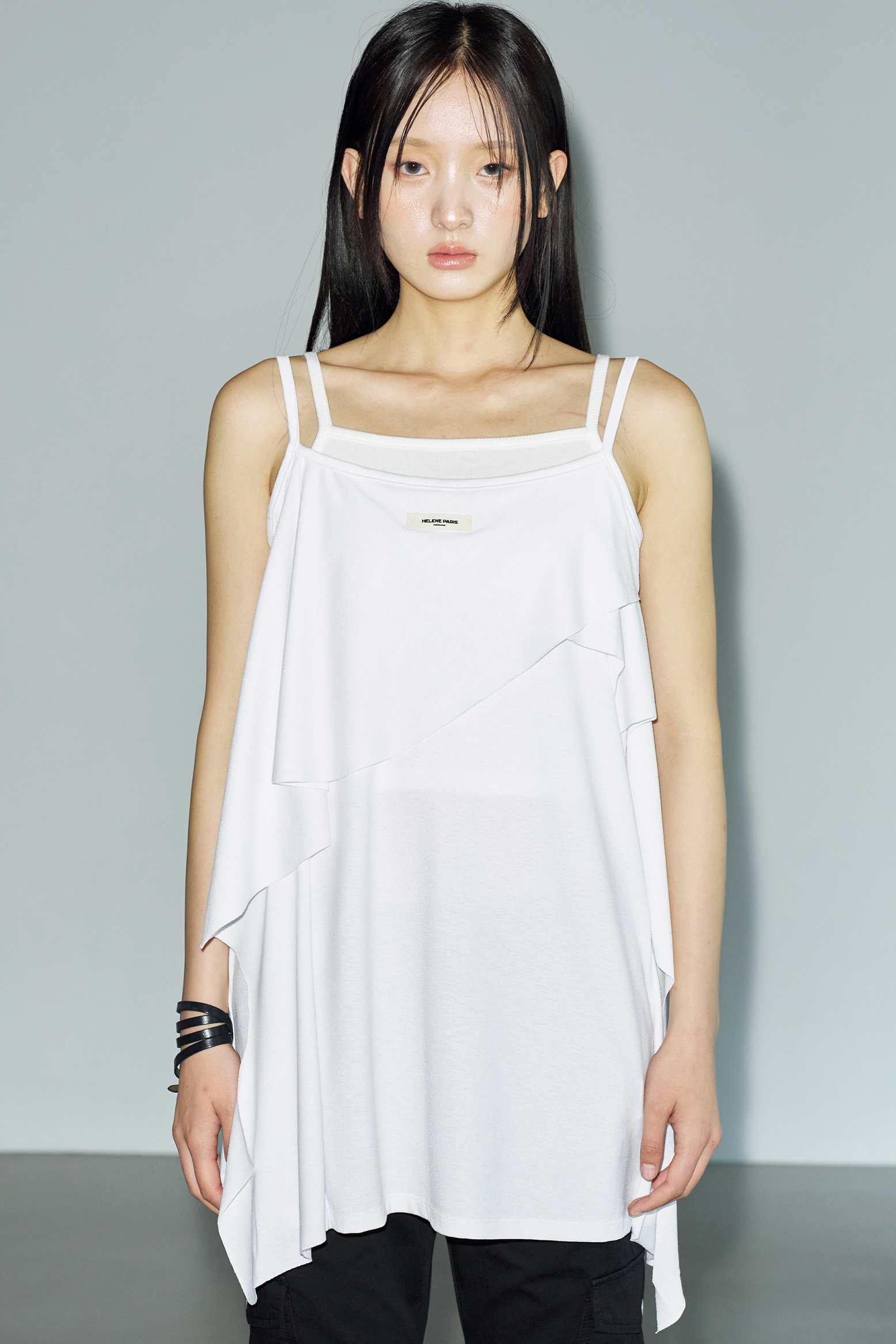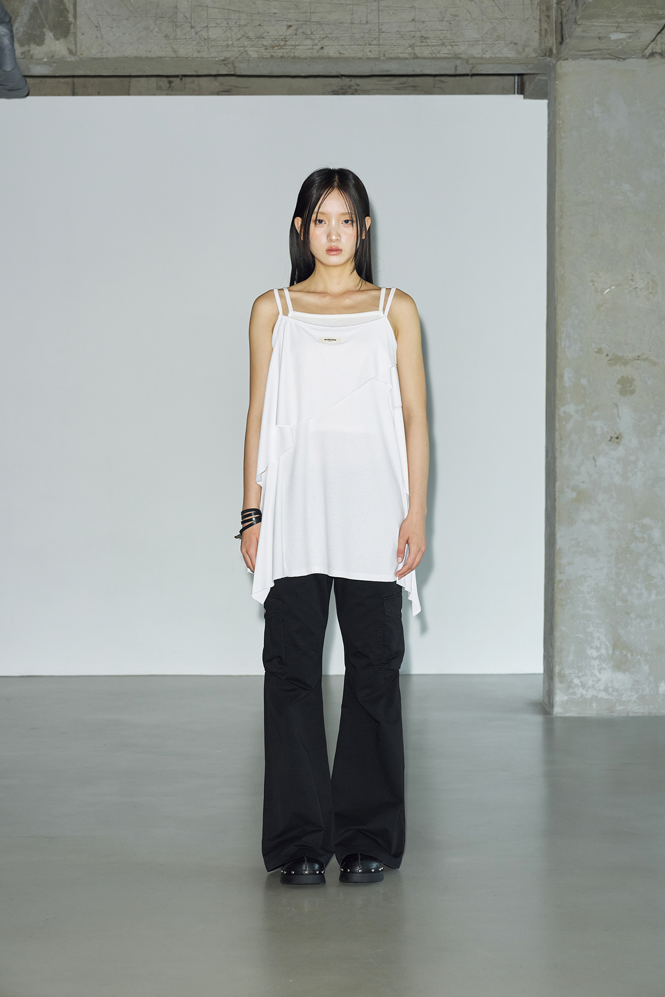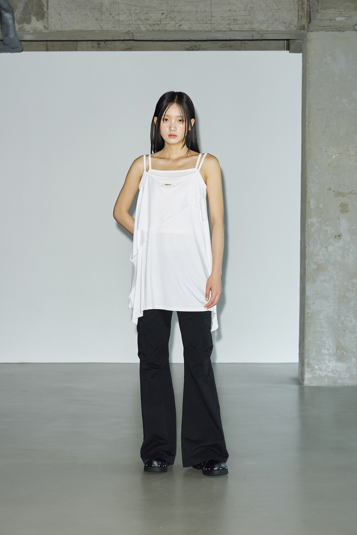 다이애그널 플레어 슬리브리스 원피스 [아이보리]