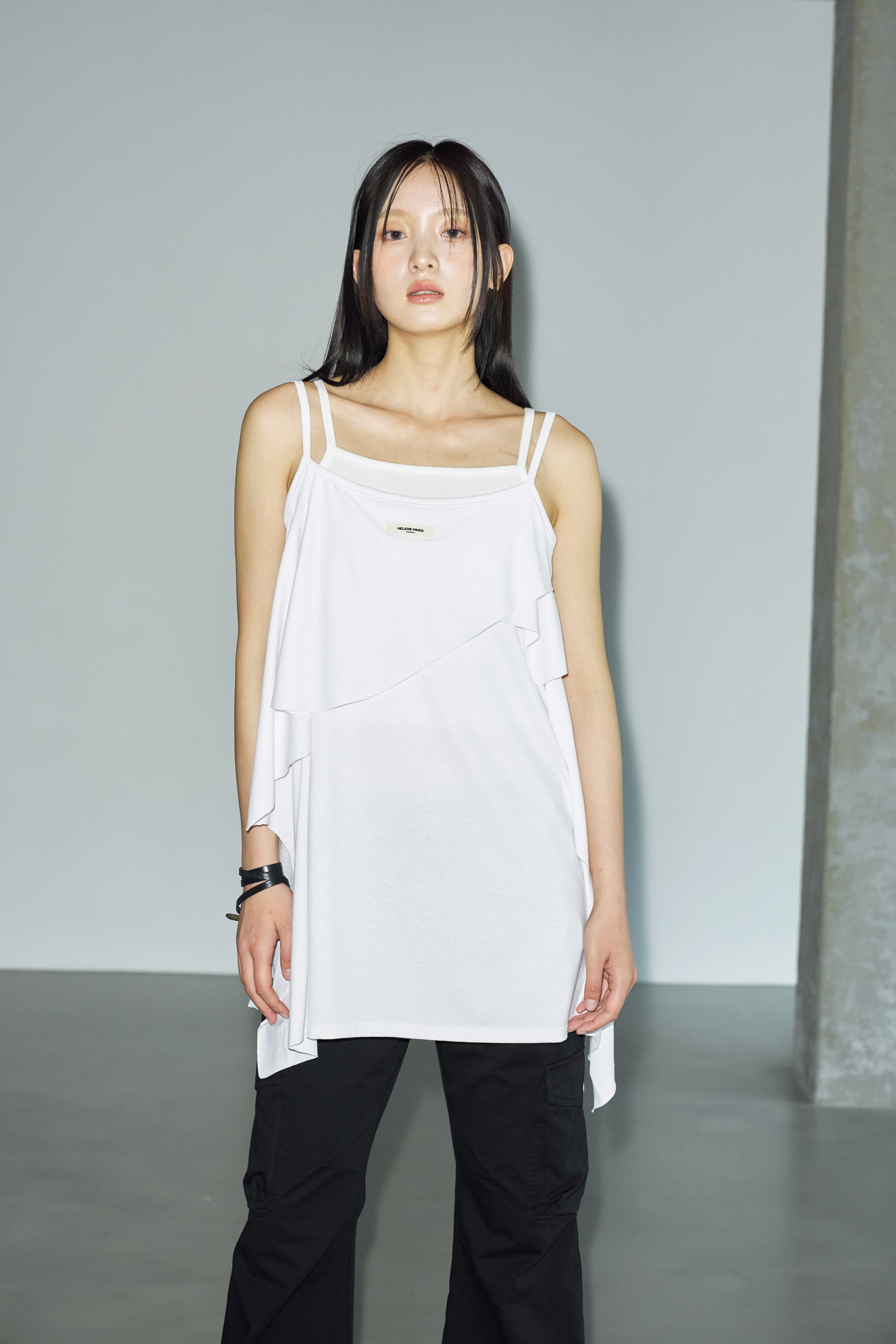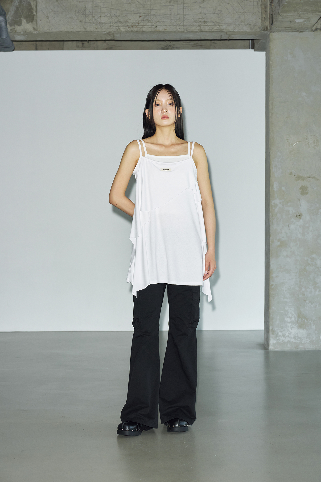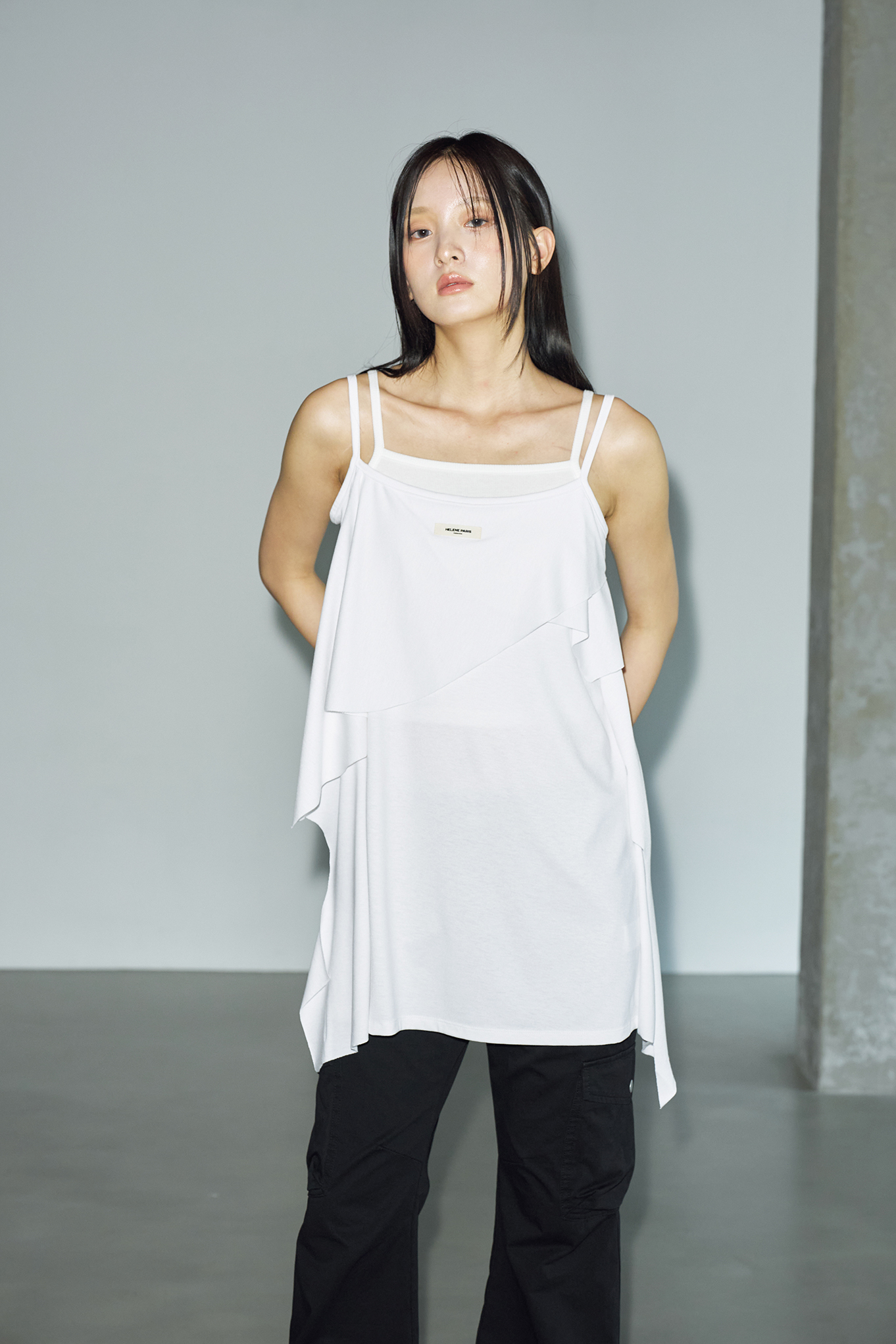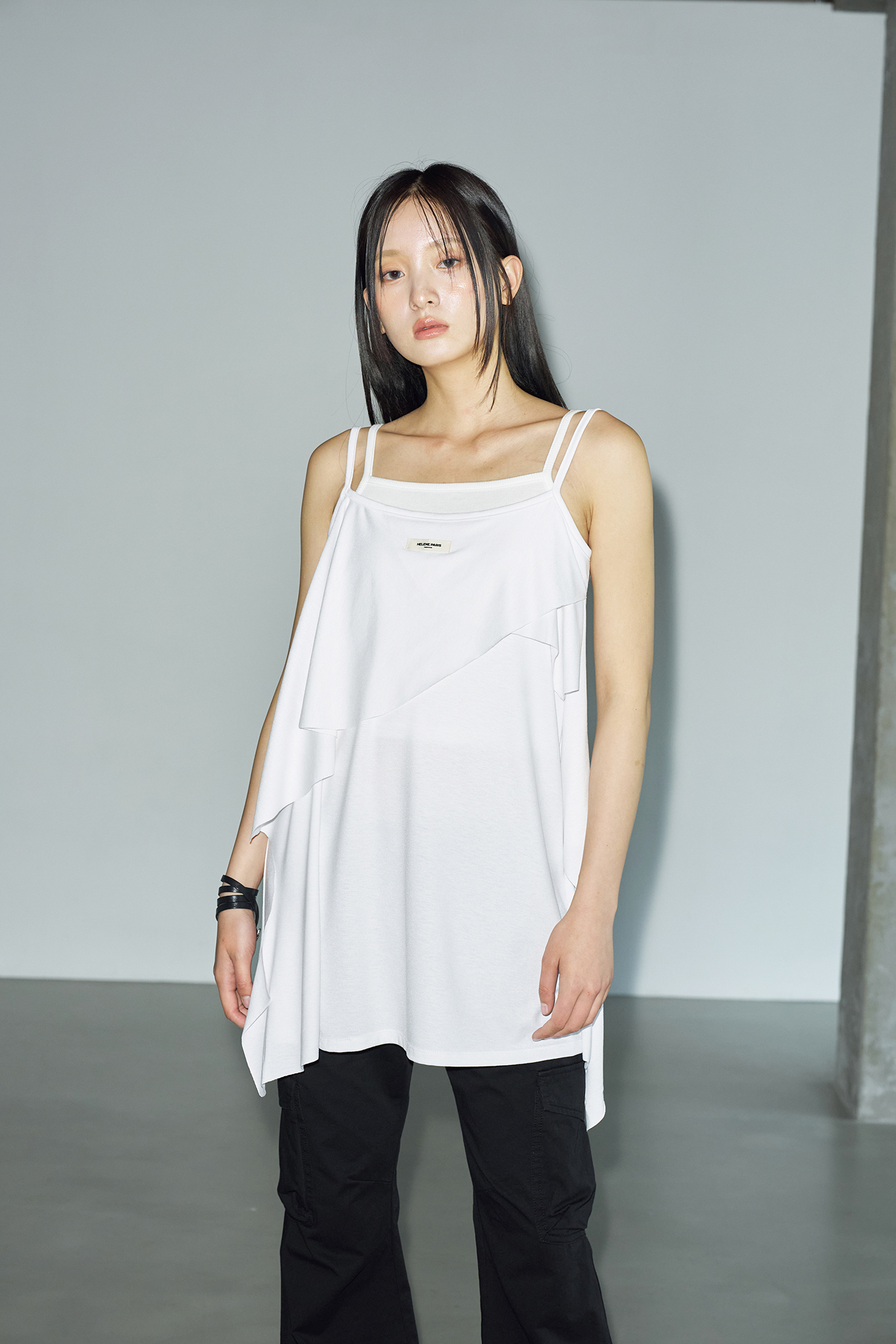 다이애그널 플레어 슬리브리스 원피스 [아이보리]