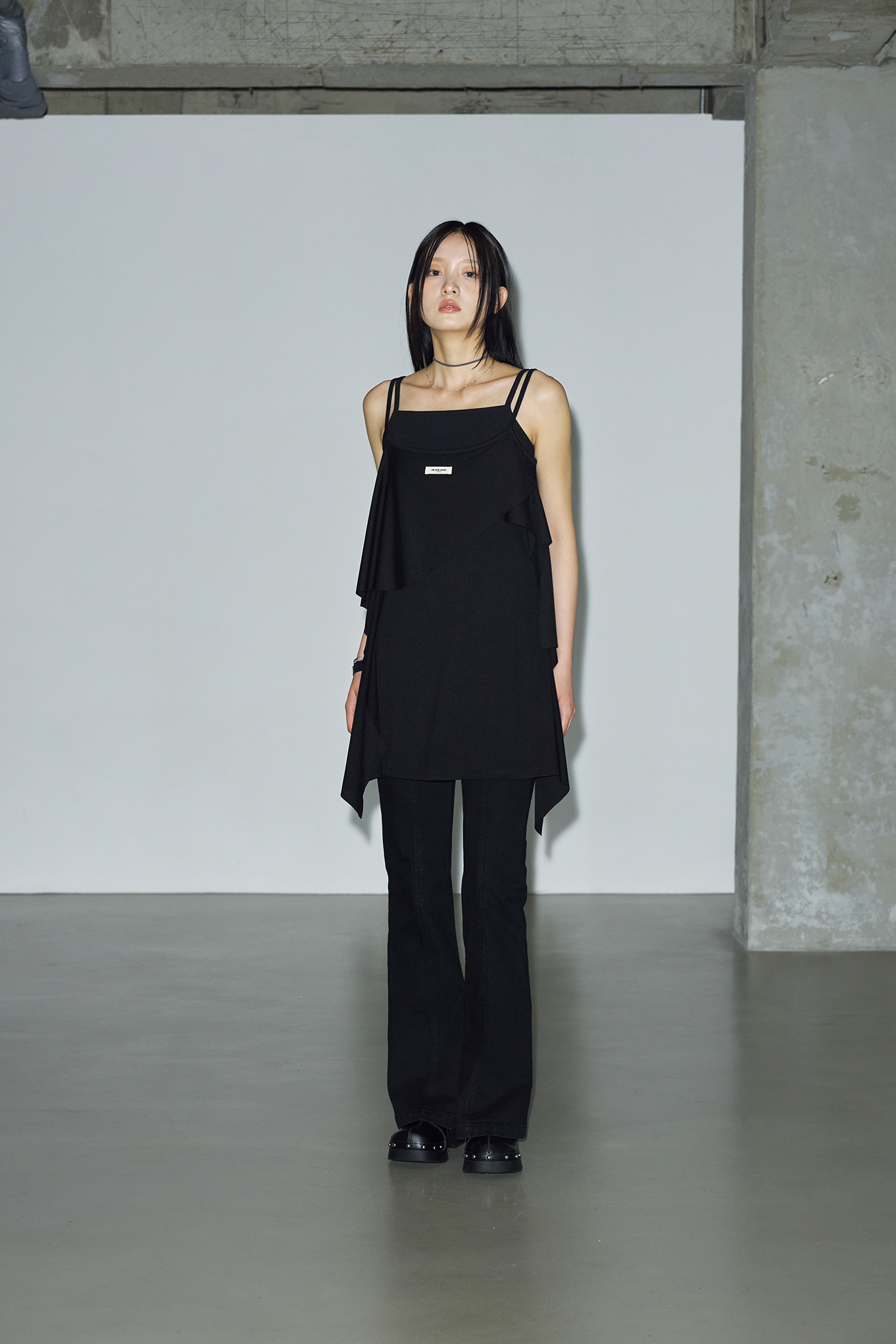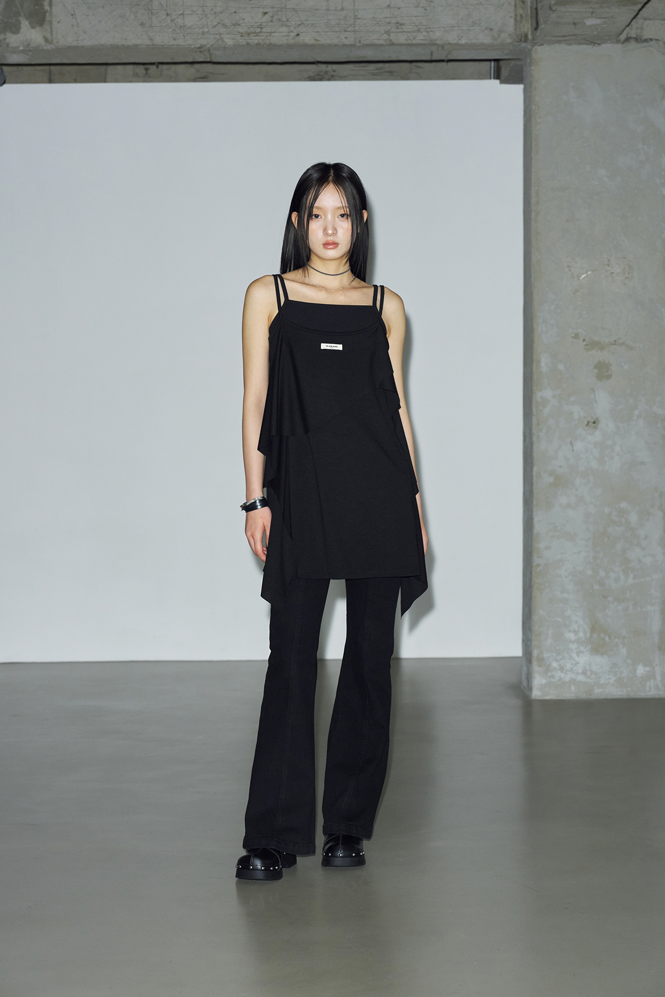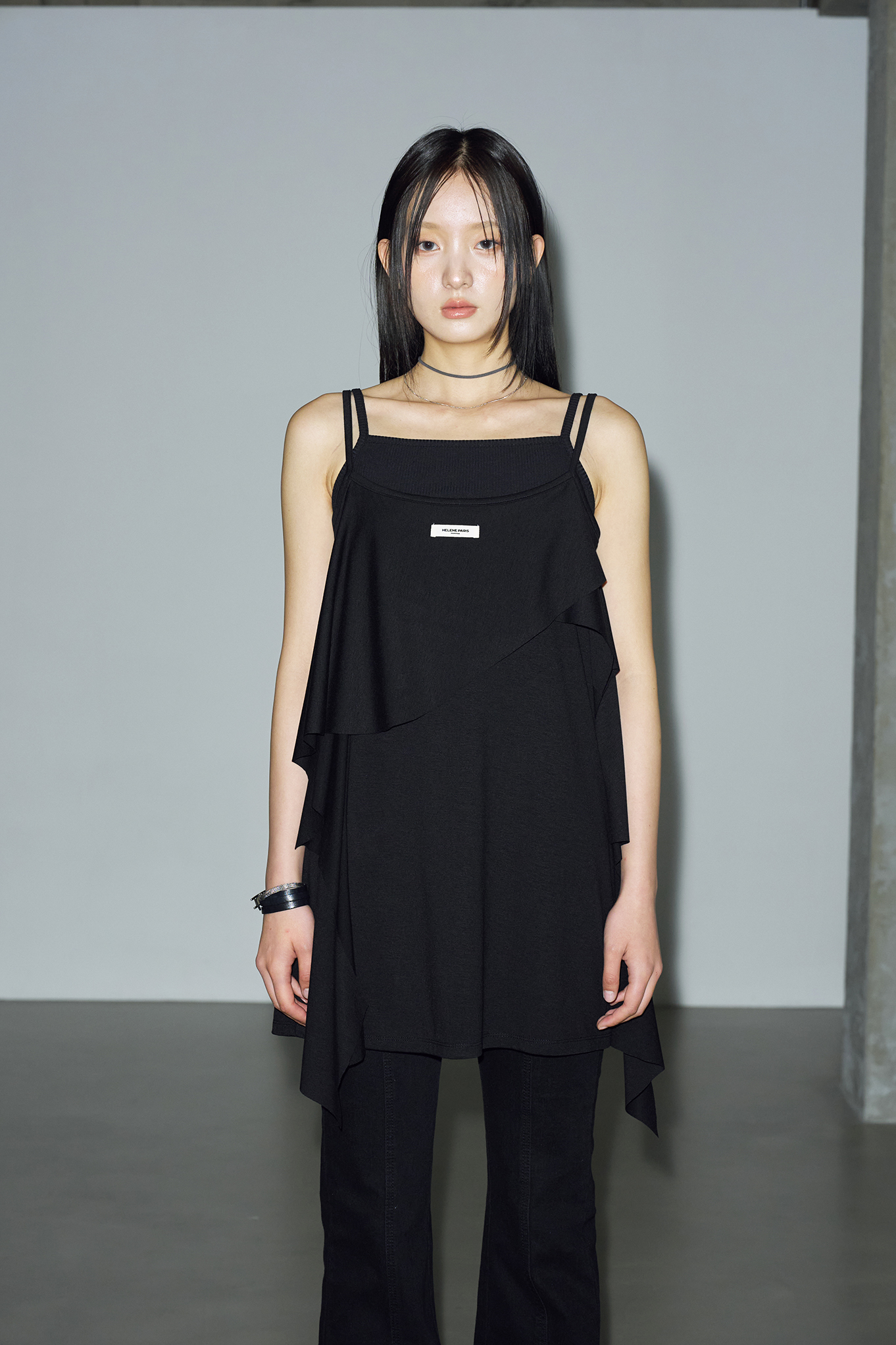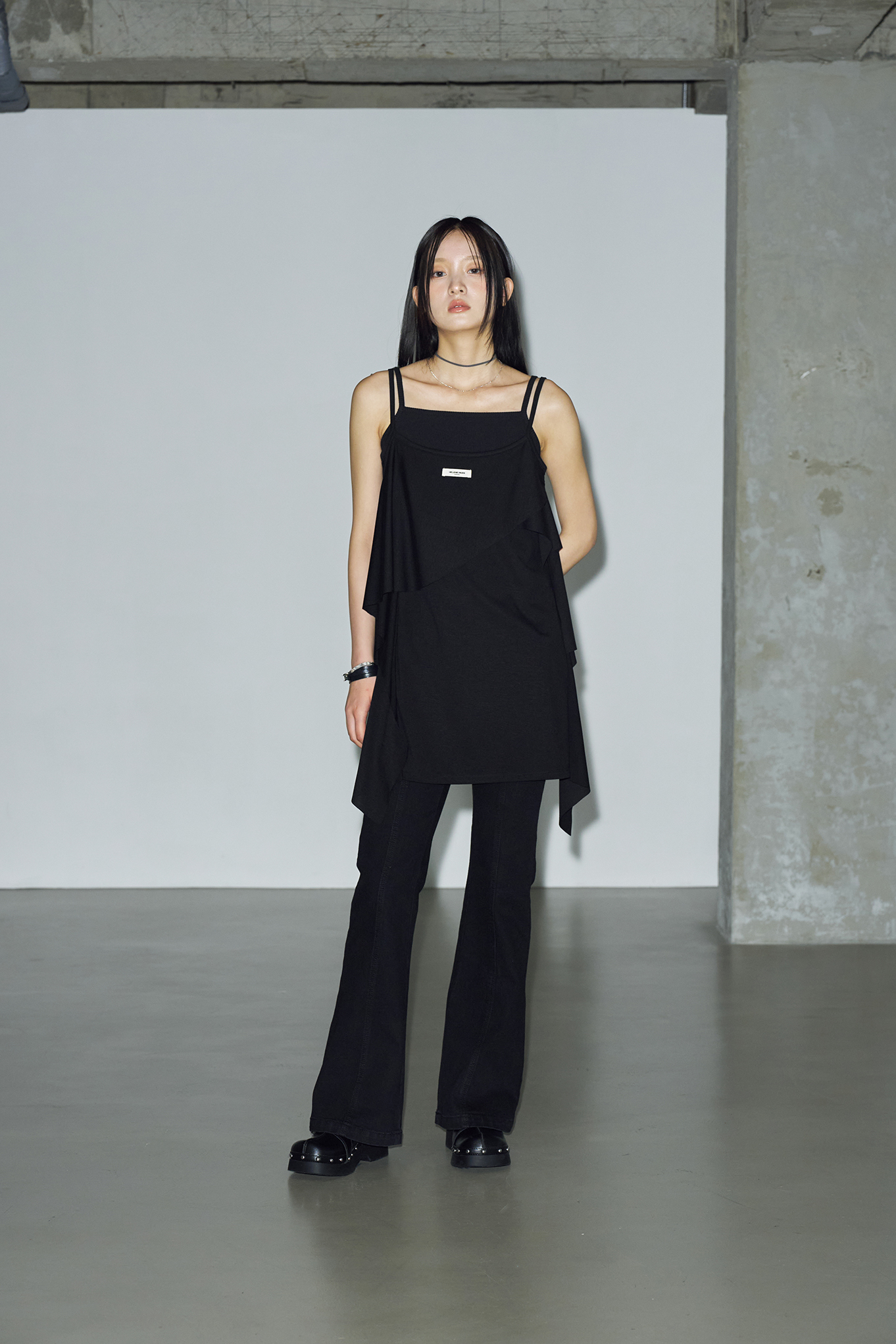 다이애그널 플레어 슬리브리스 원피스 [블랙]