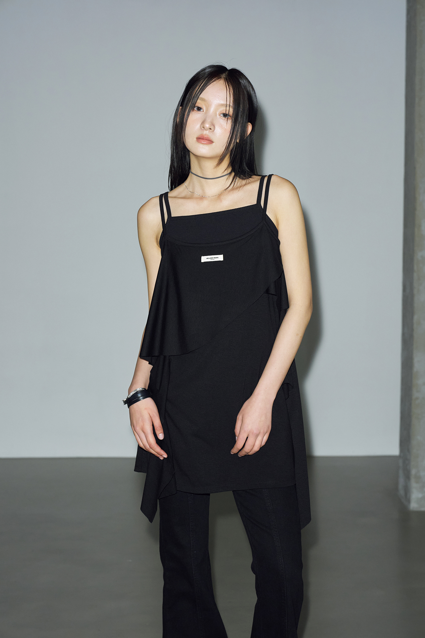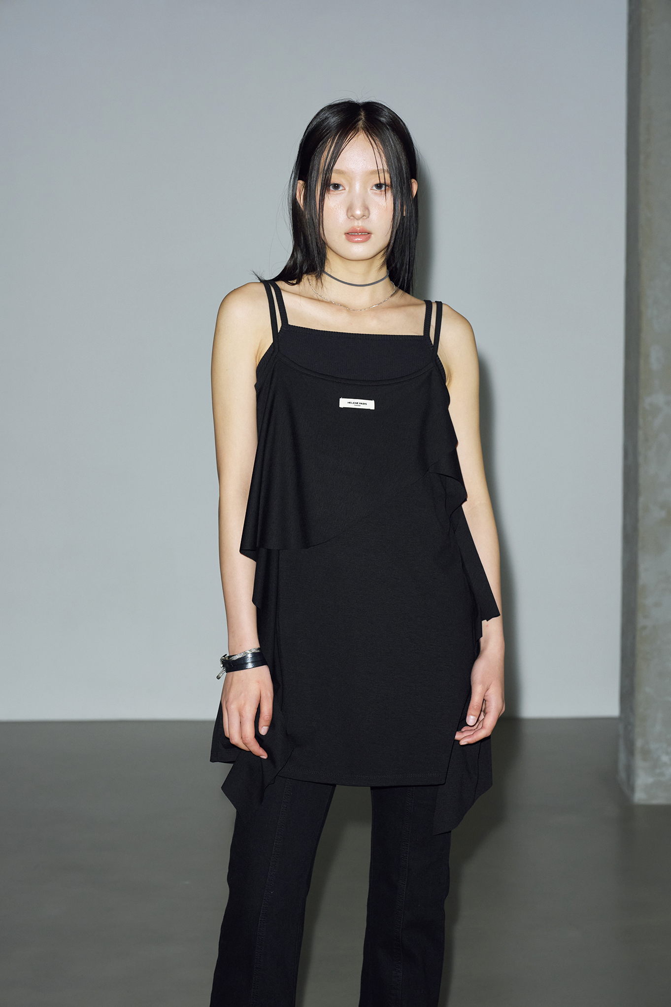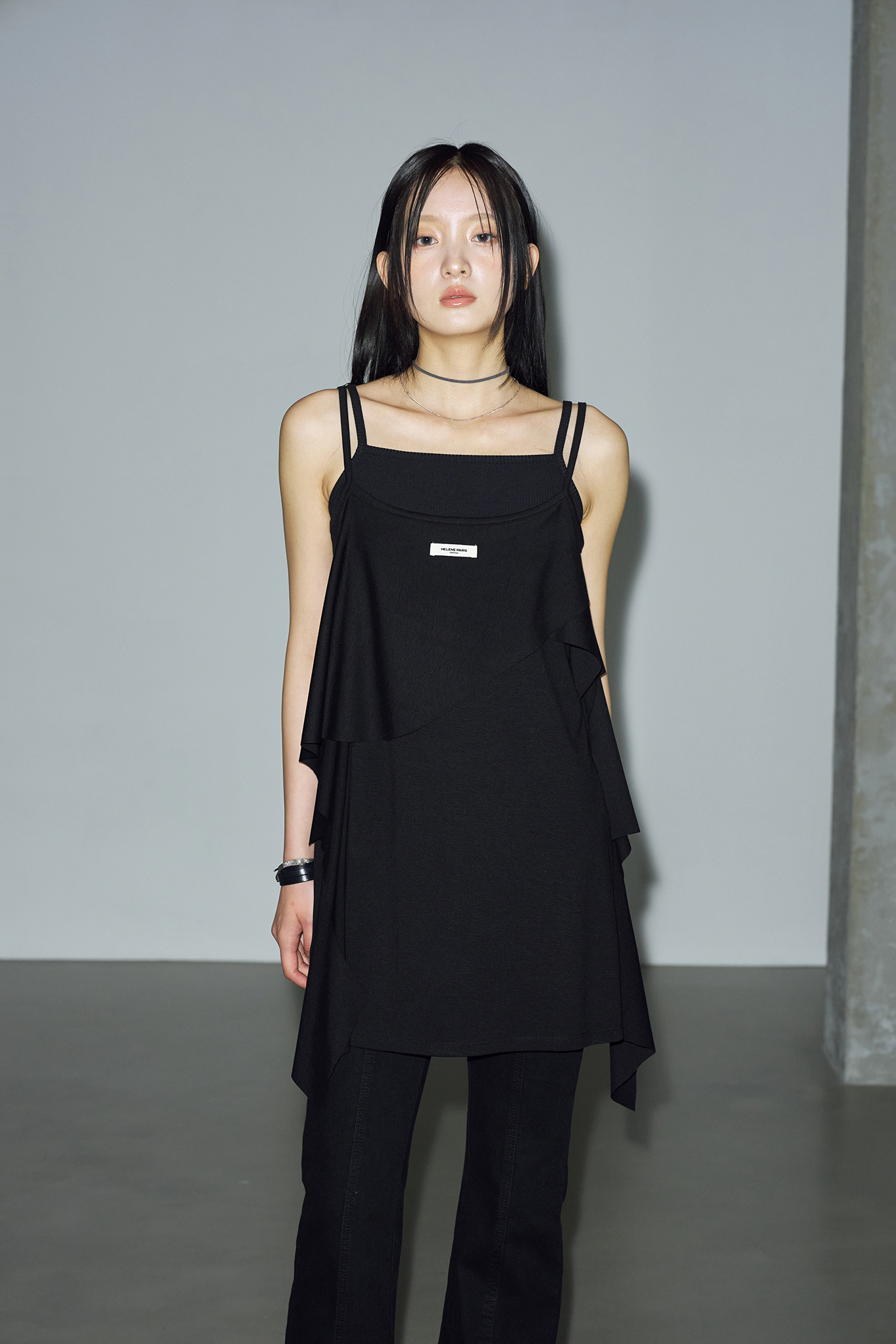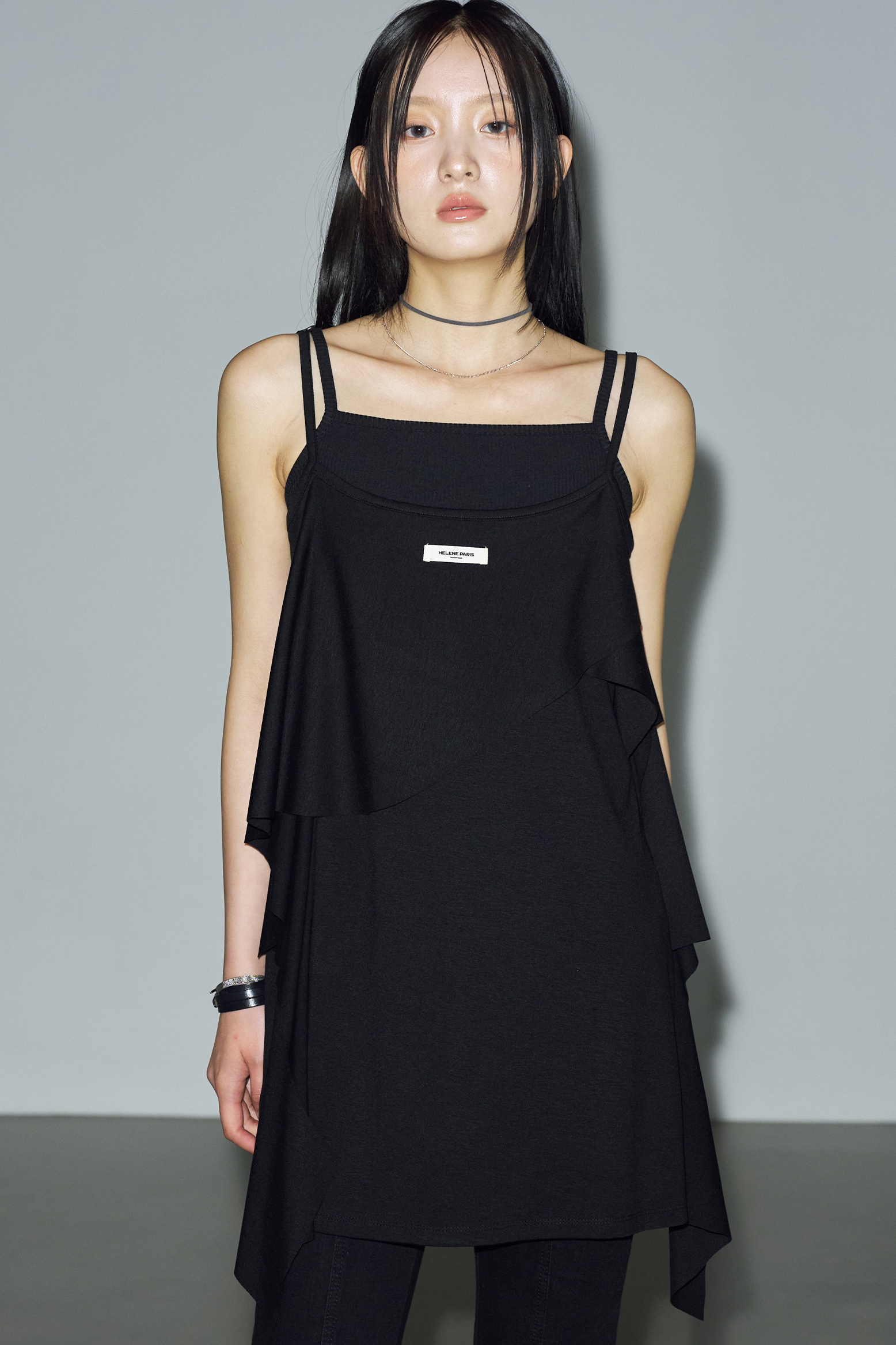 다이애그널 플레어 슬리브리스 원피스 [블랙]