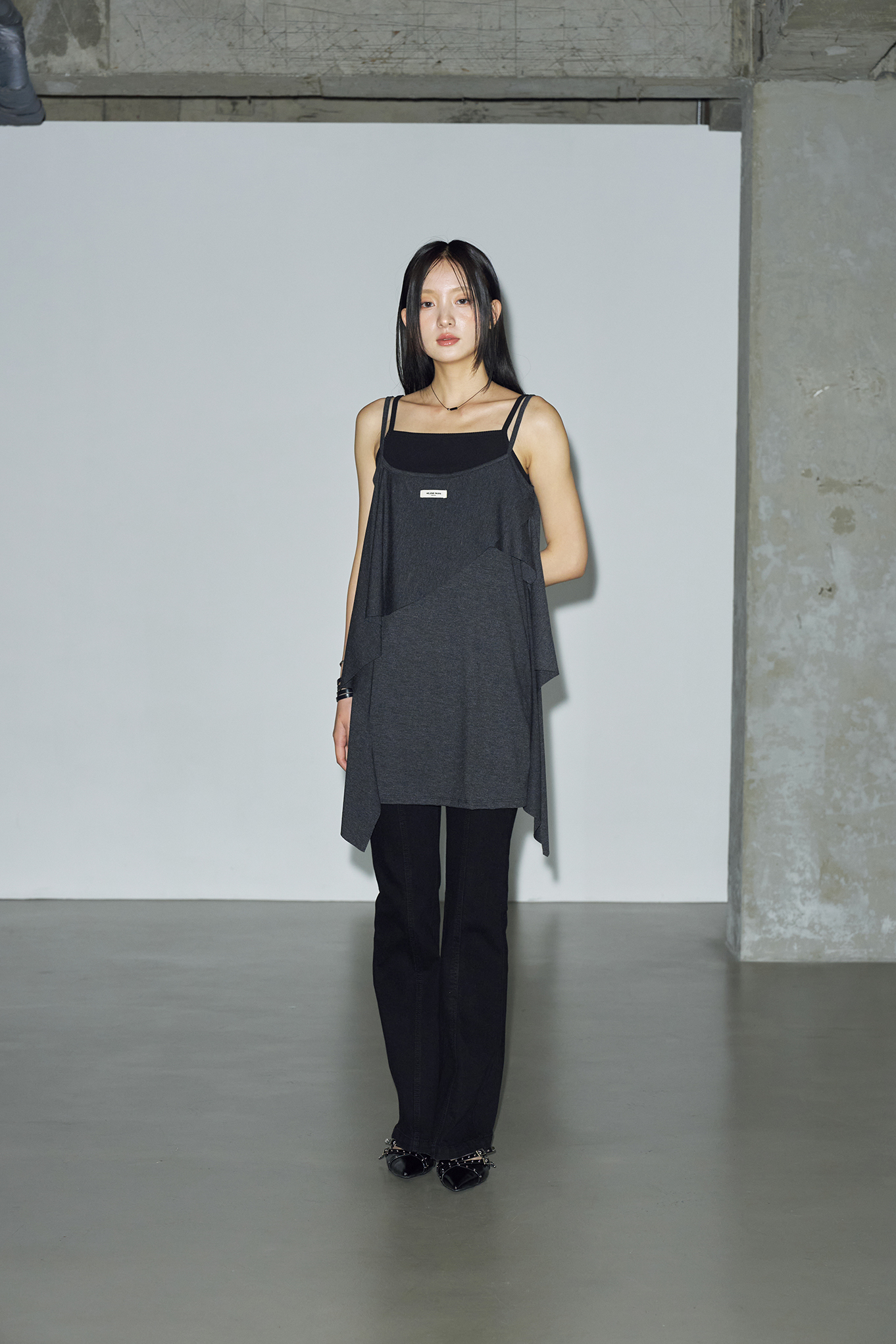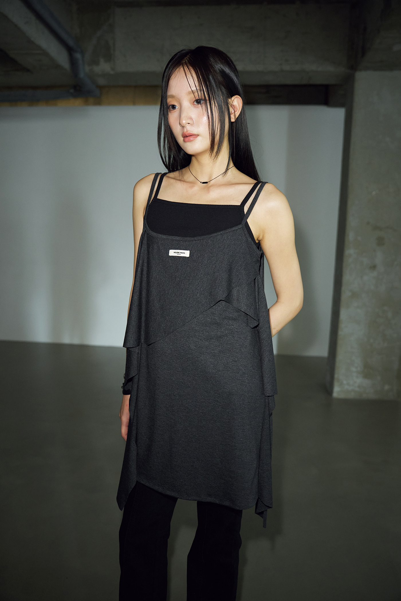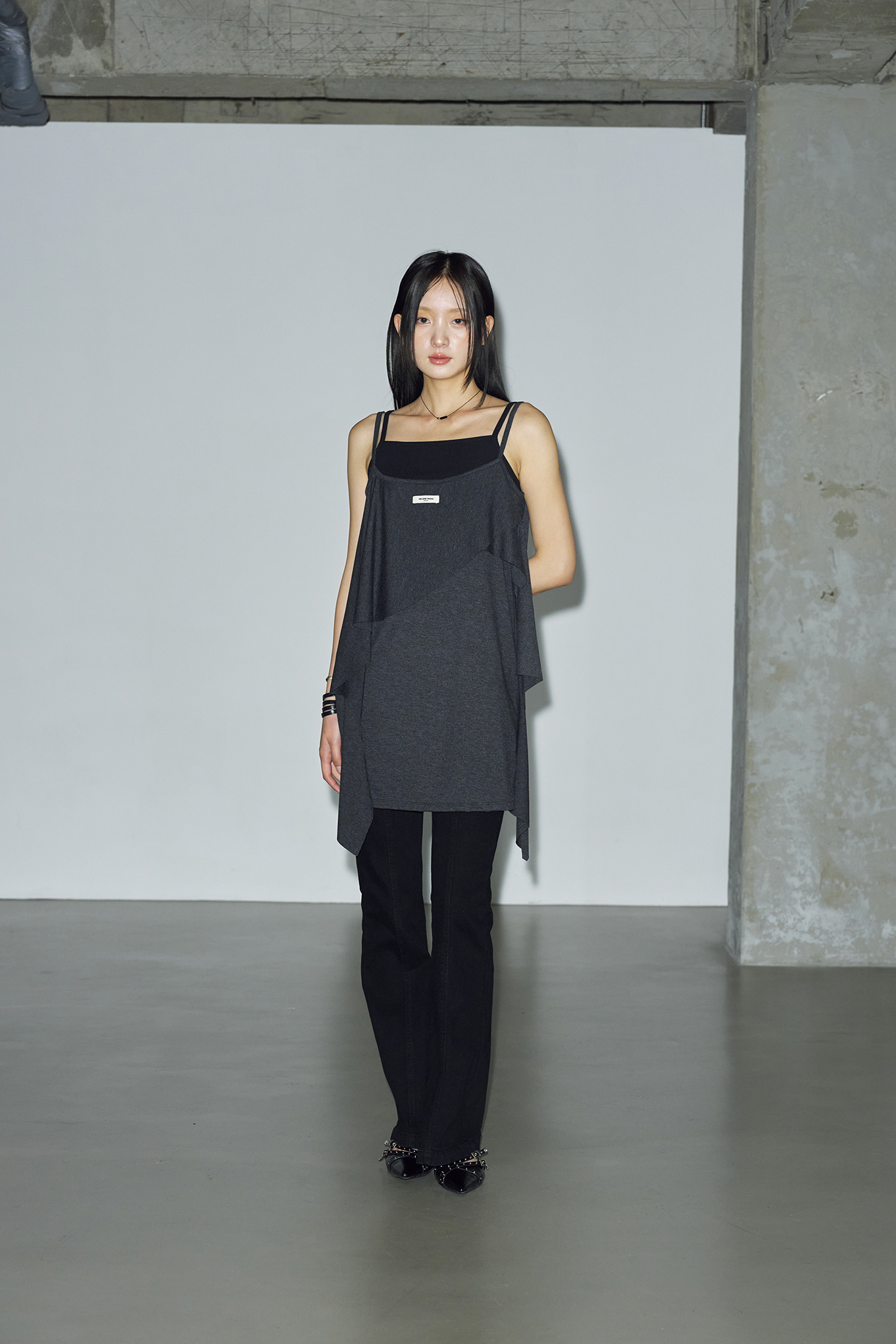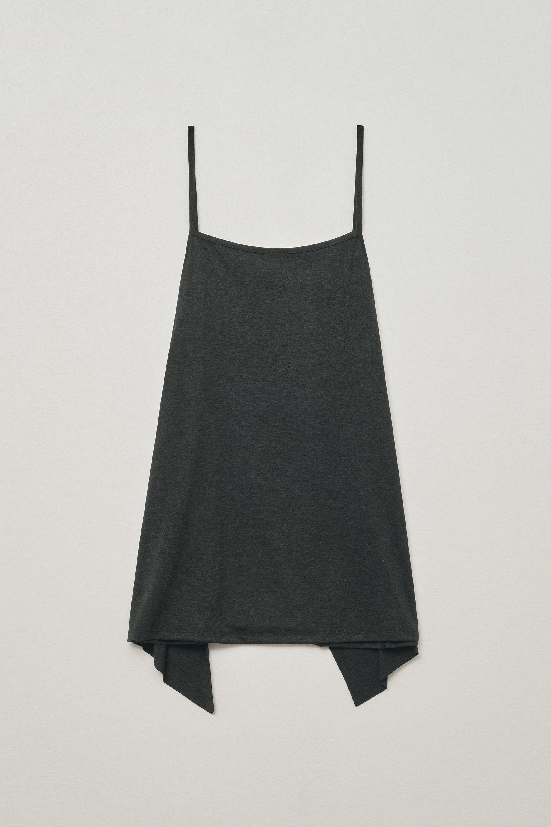 다이애그널 플레어 슬리브리스 원피스 [차콜]