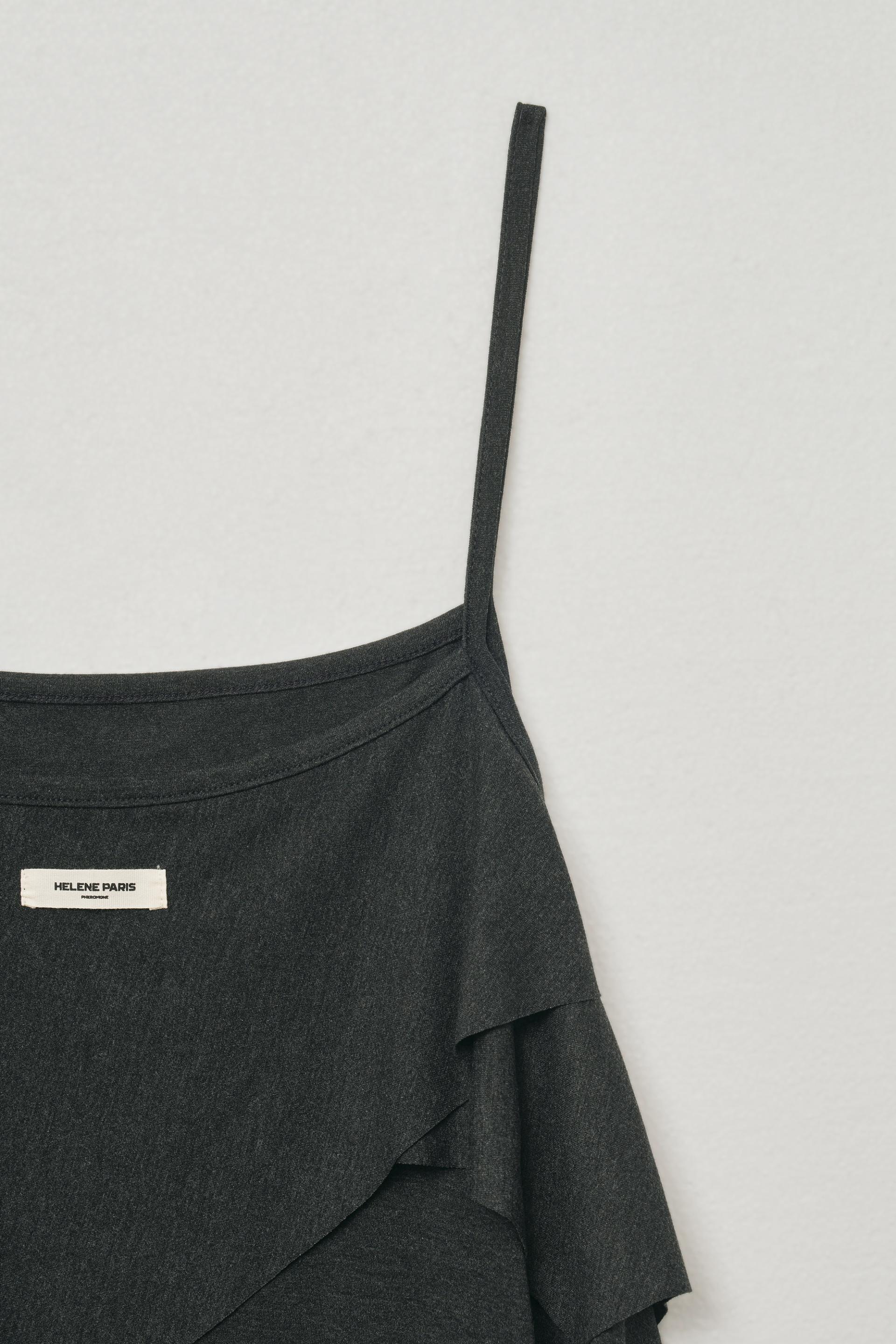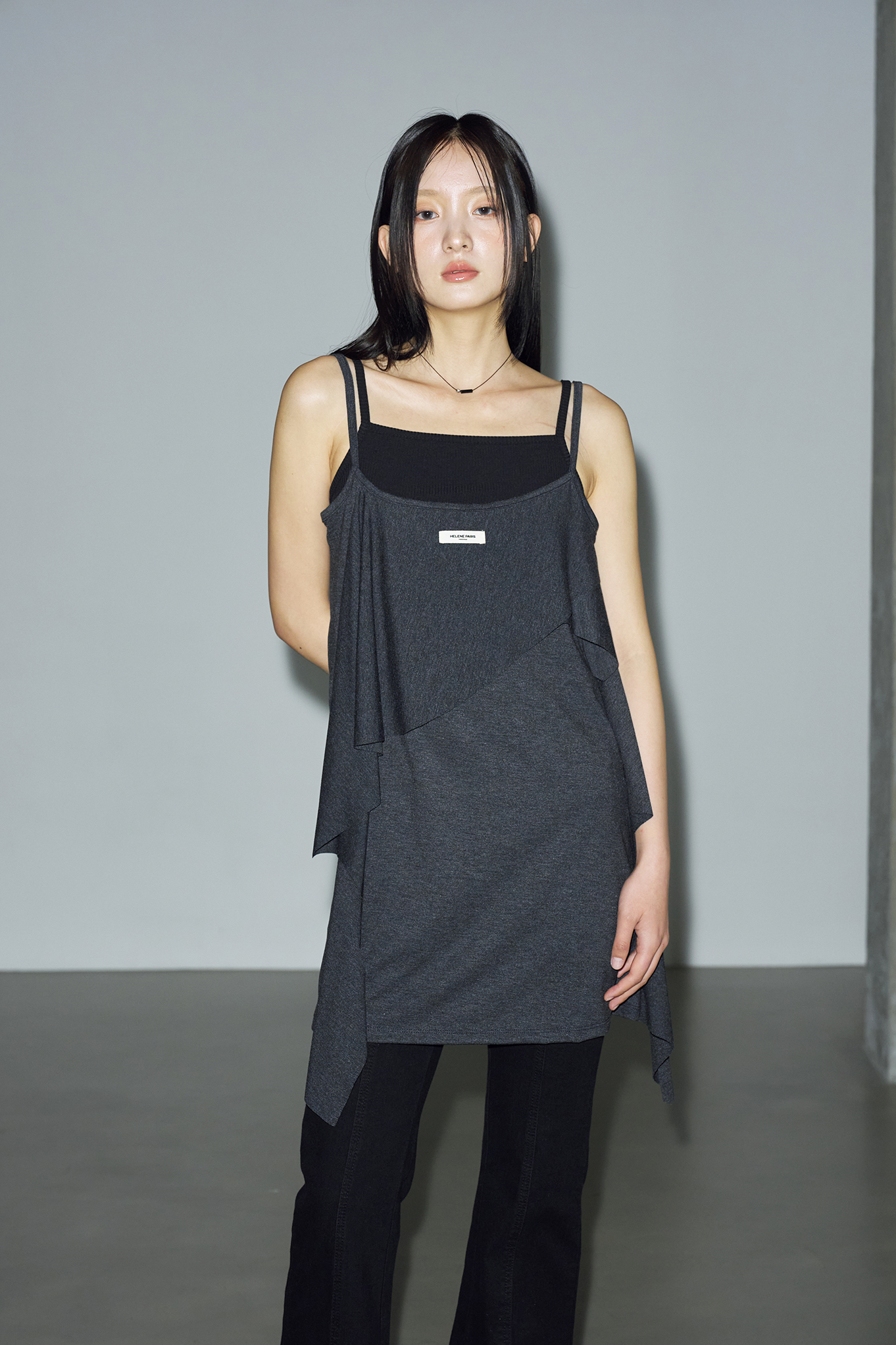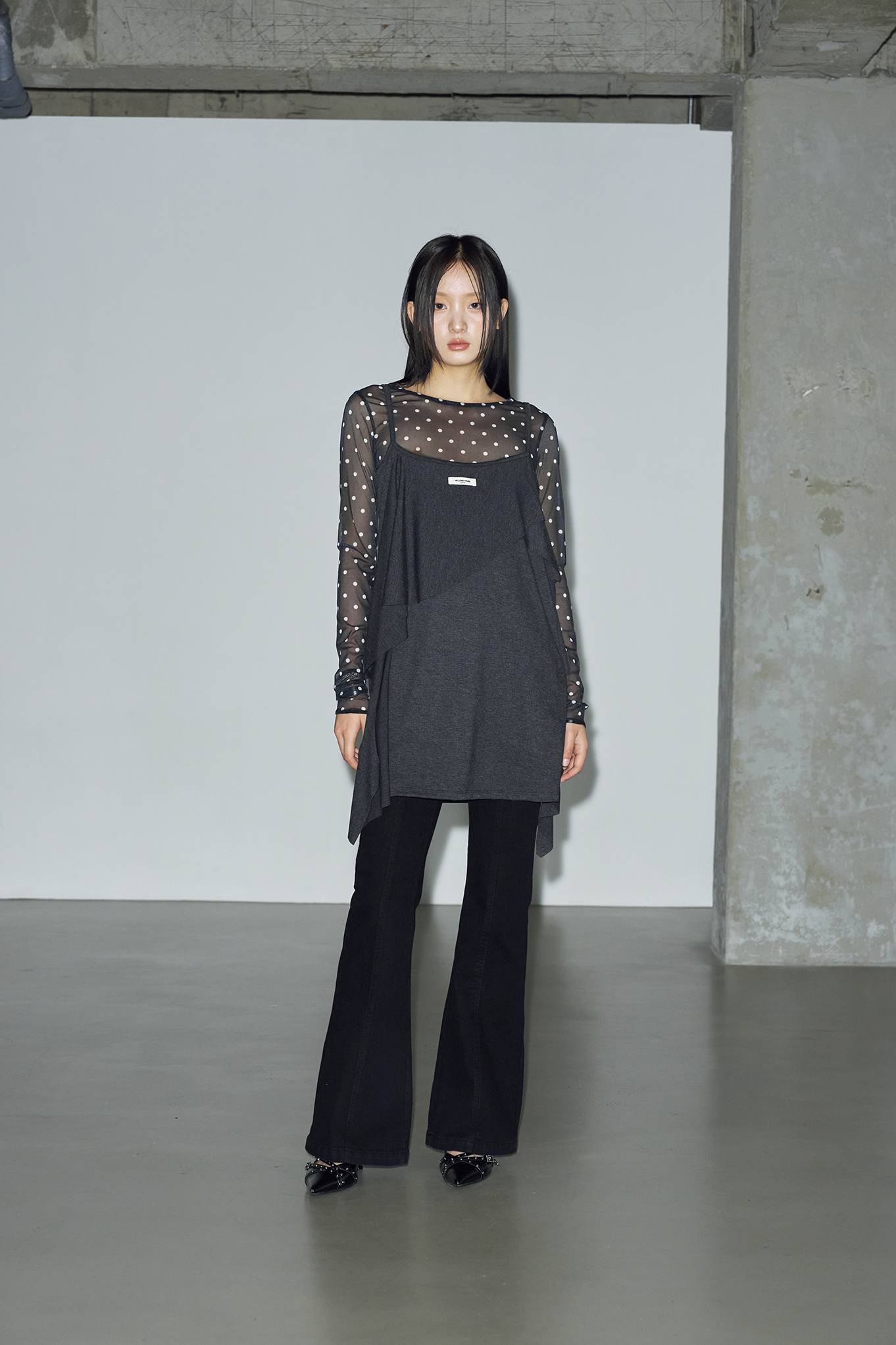 다이애그널 플레어 슬리브리스 원피스 [차콜]