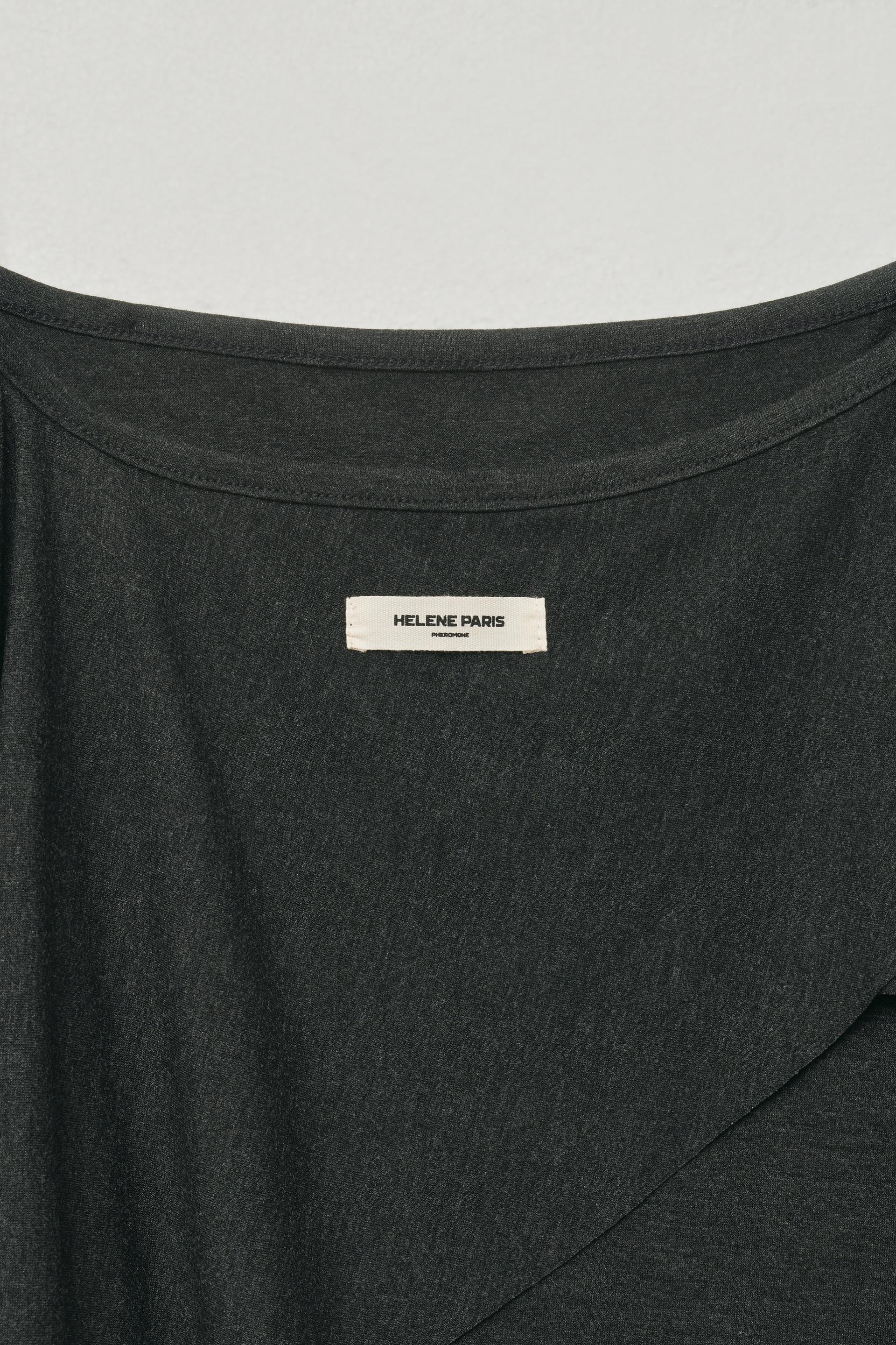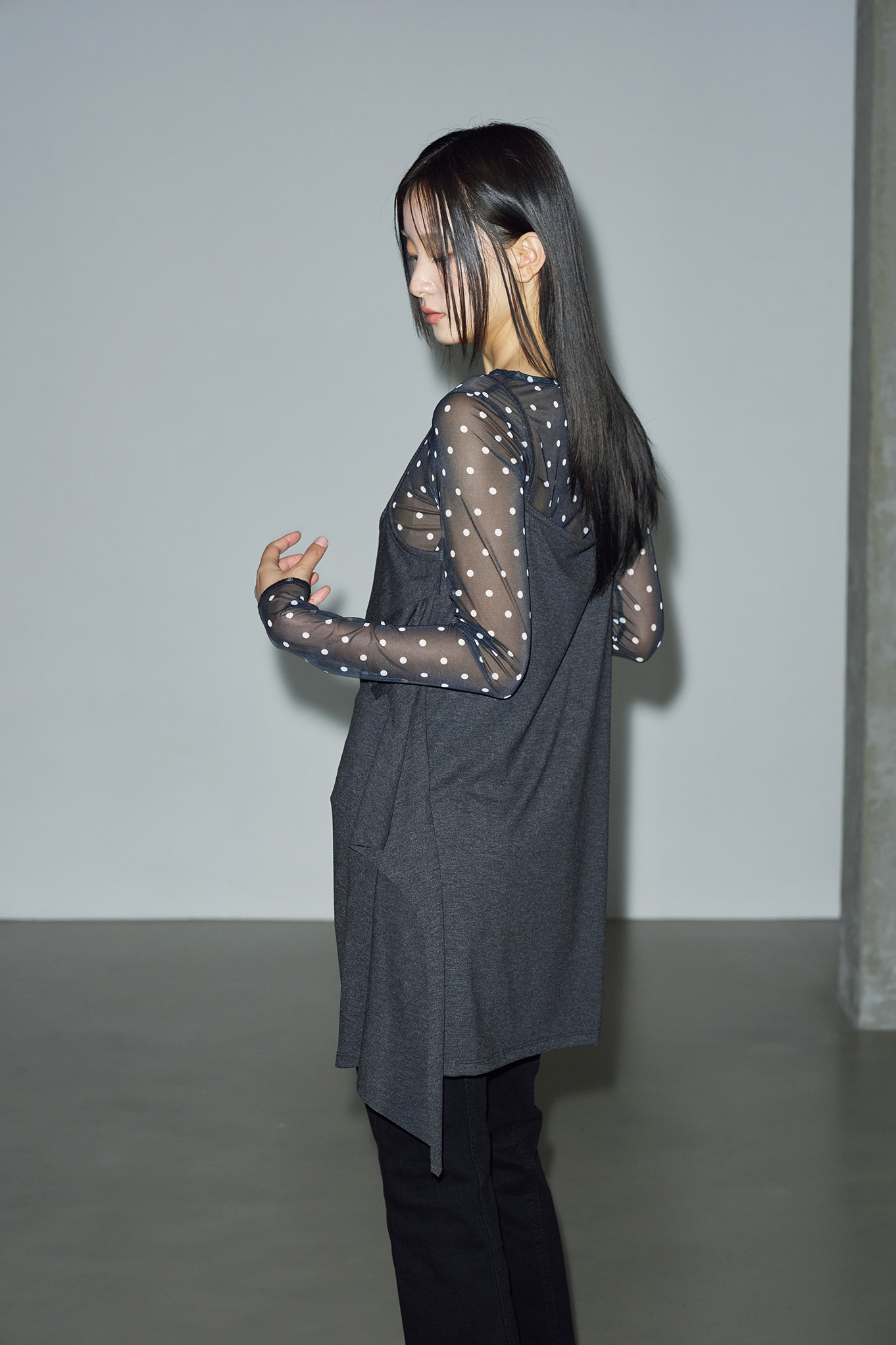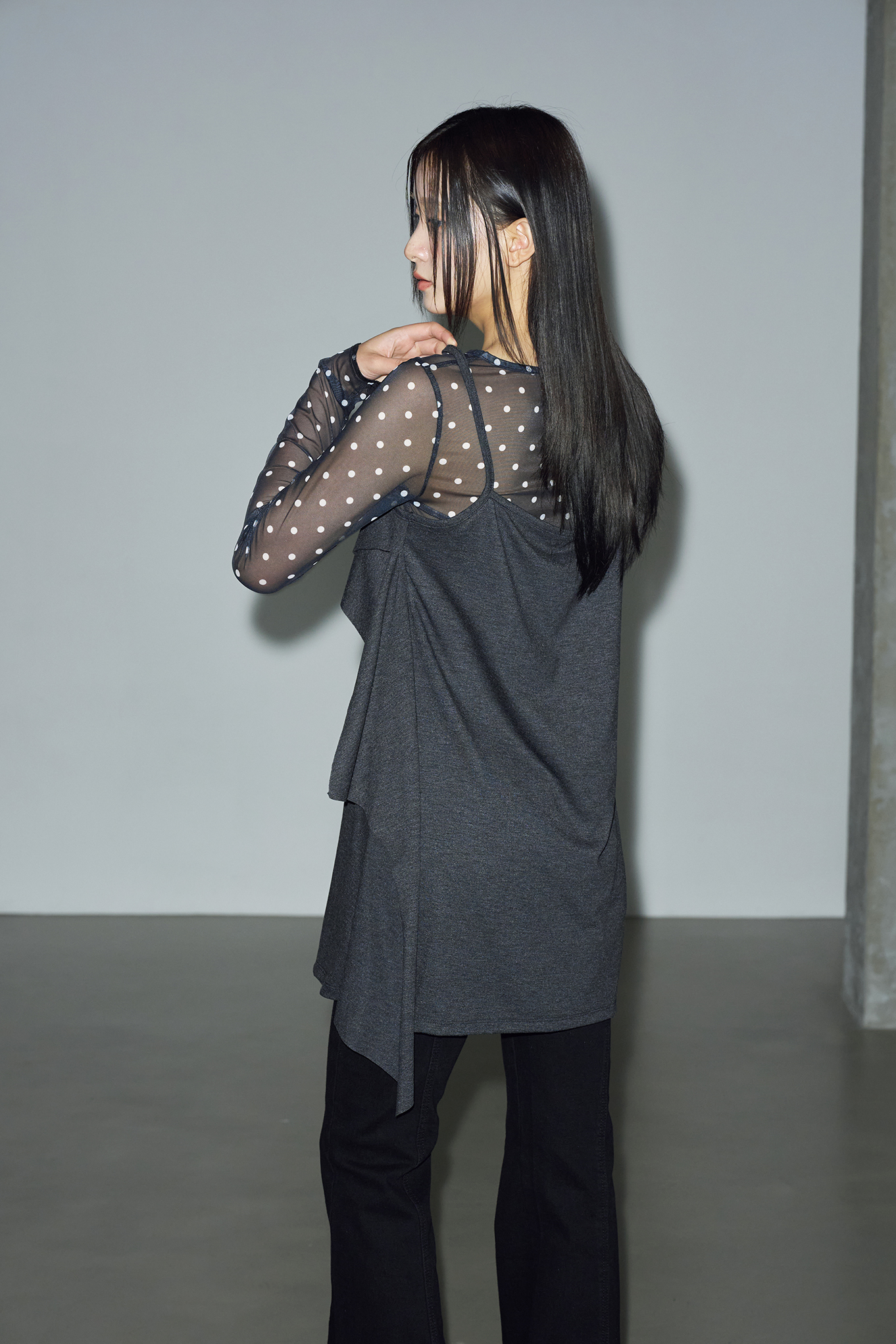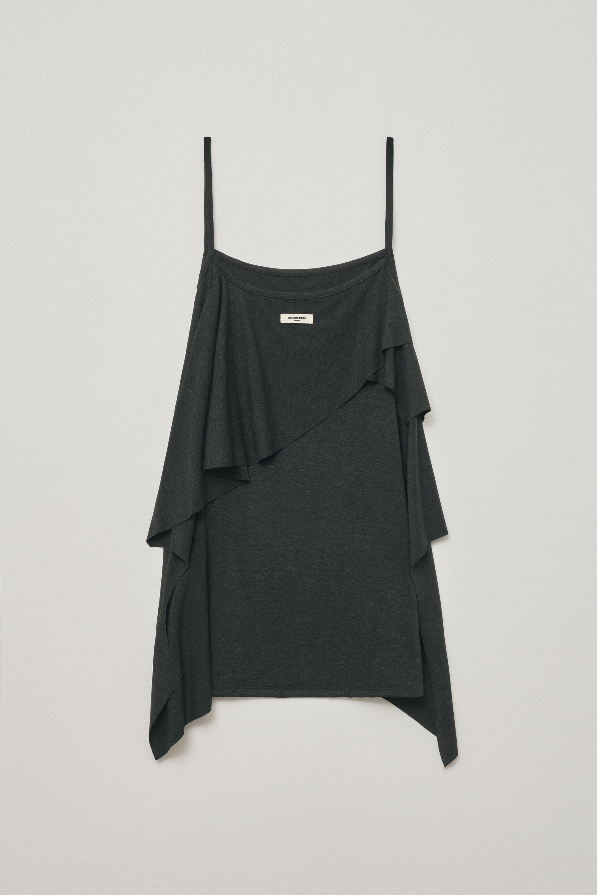 다이애그널 플레어 슬리브리스 원피스 [차콜]