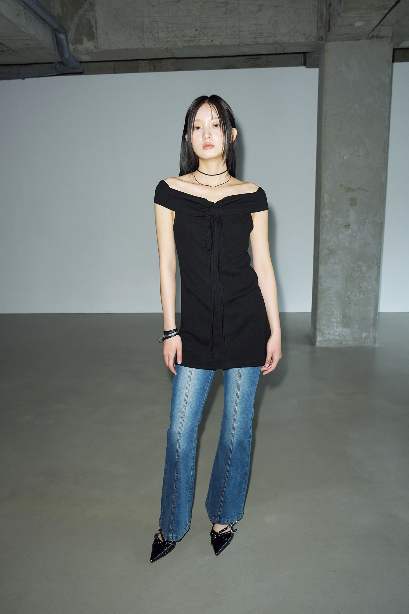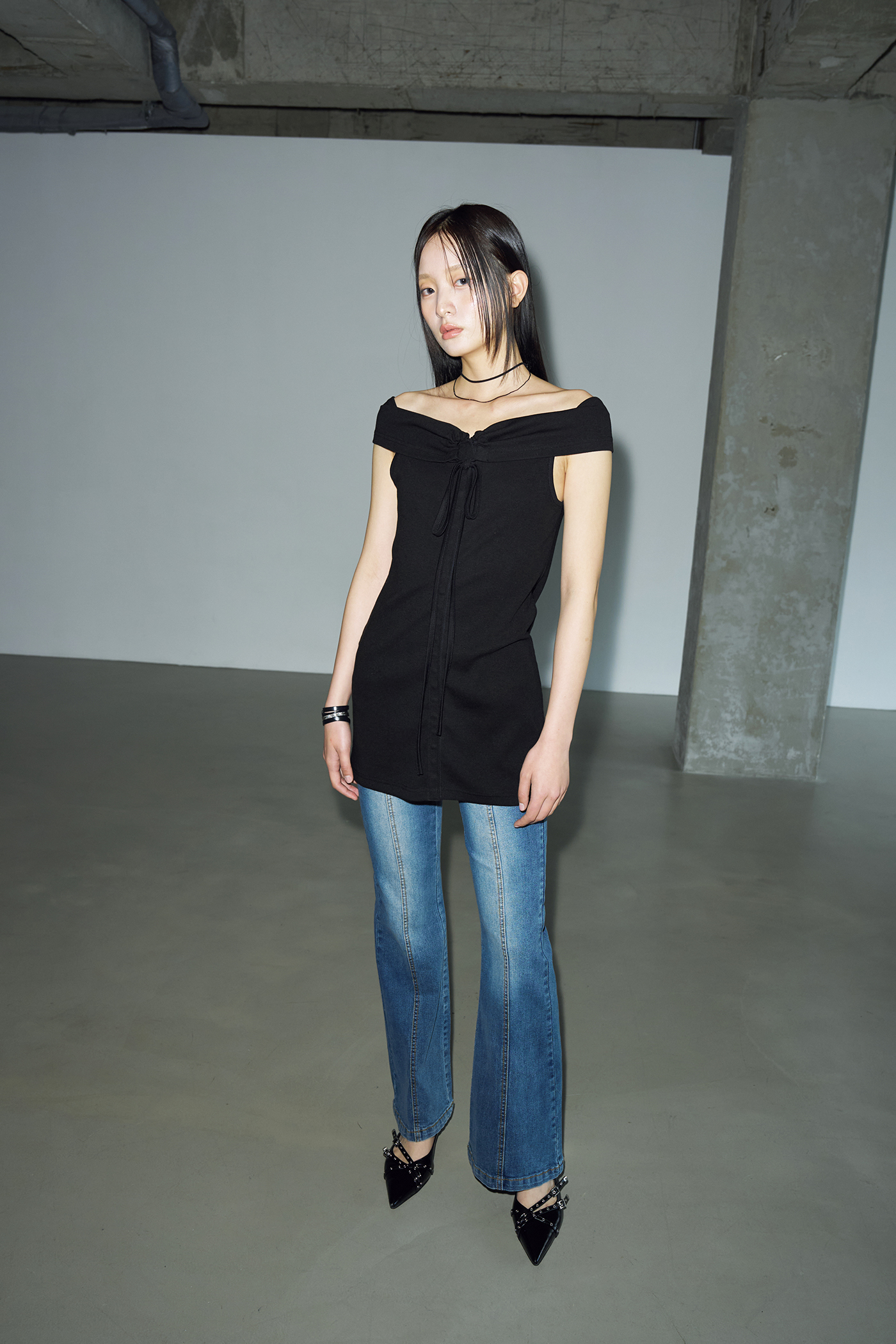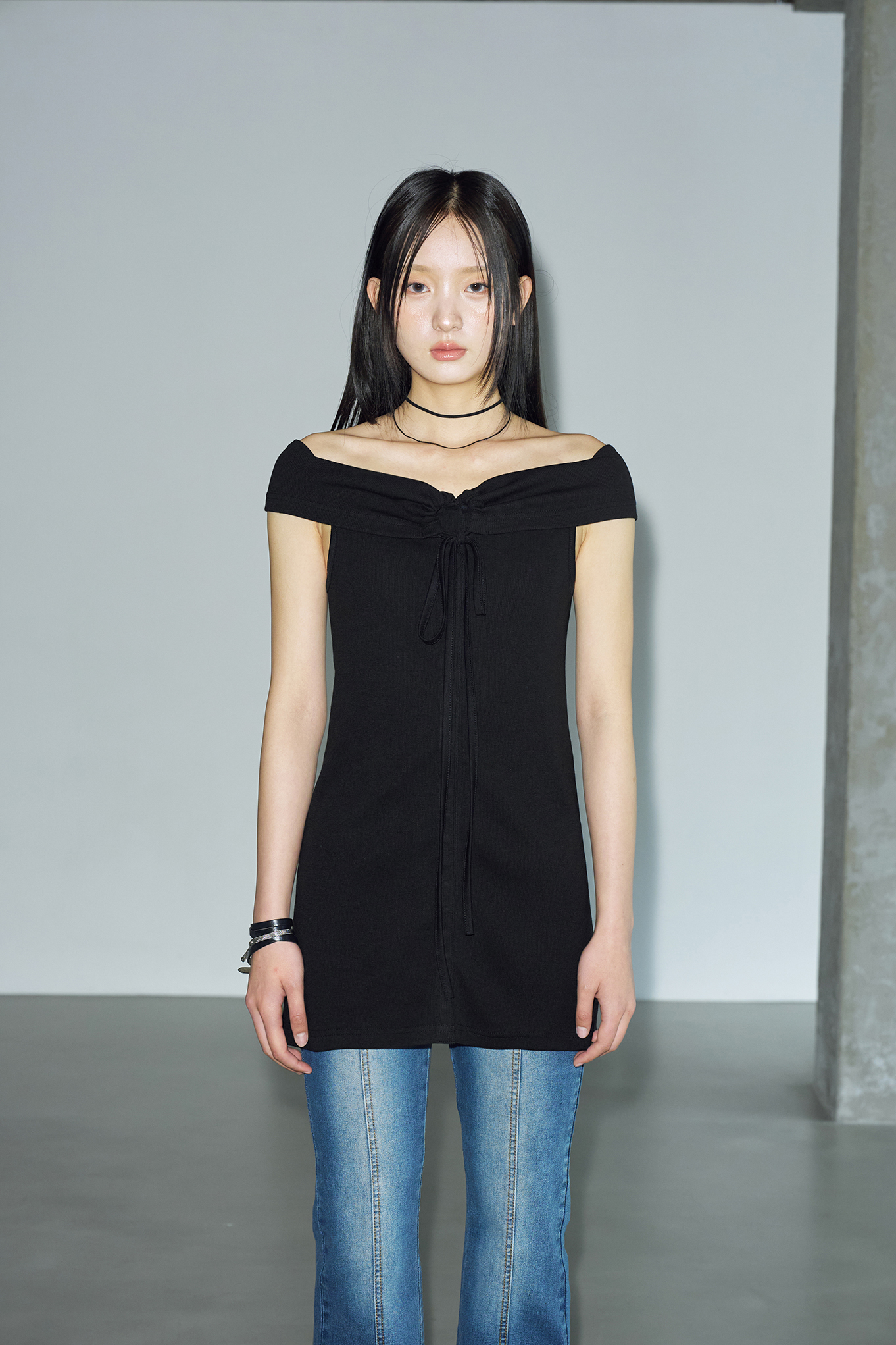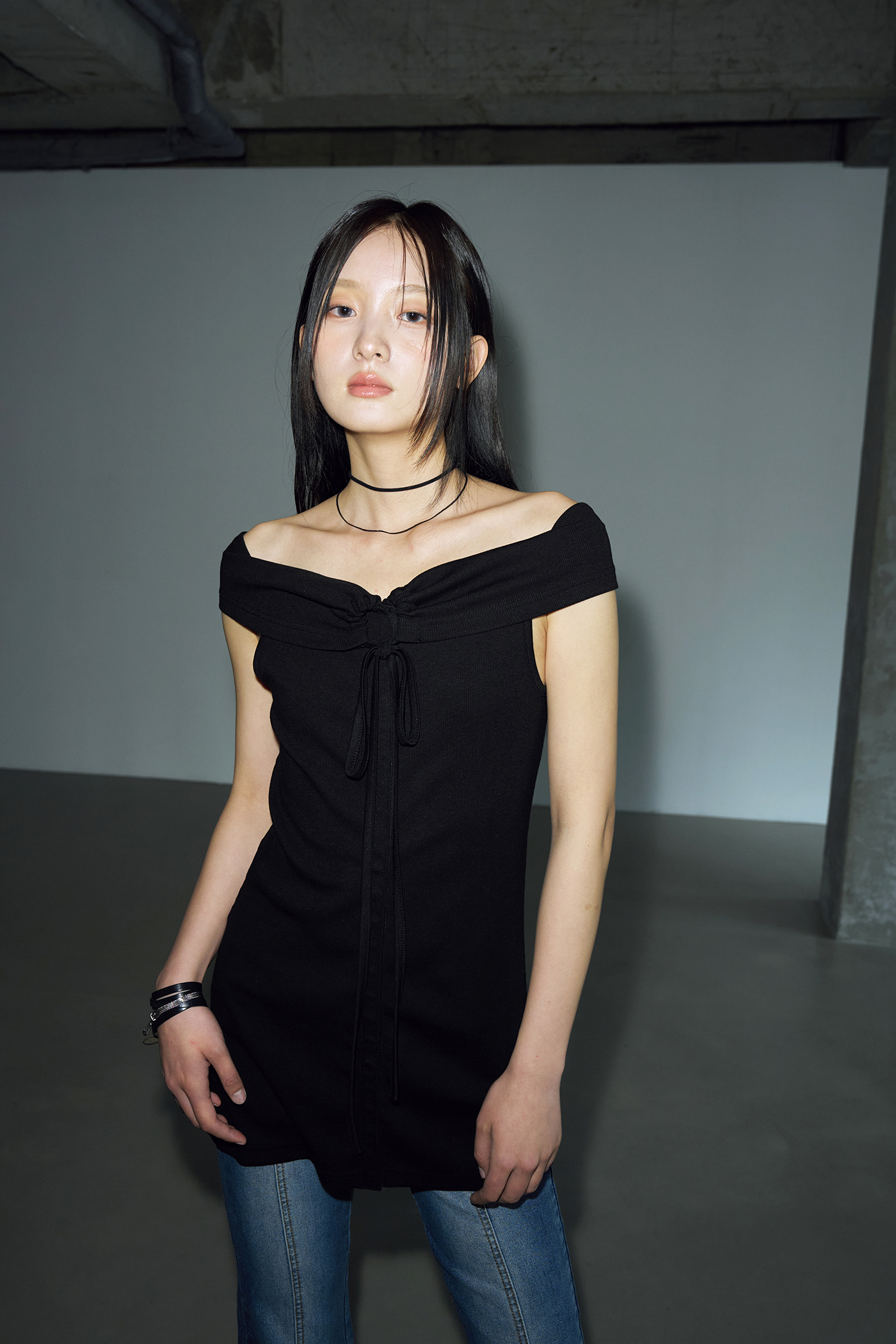 - 지난 여름 많은 사랑을 받은 타이 리브드 오프숄더의 원피스 버전입니다.