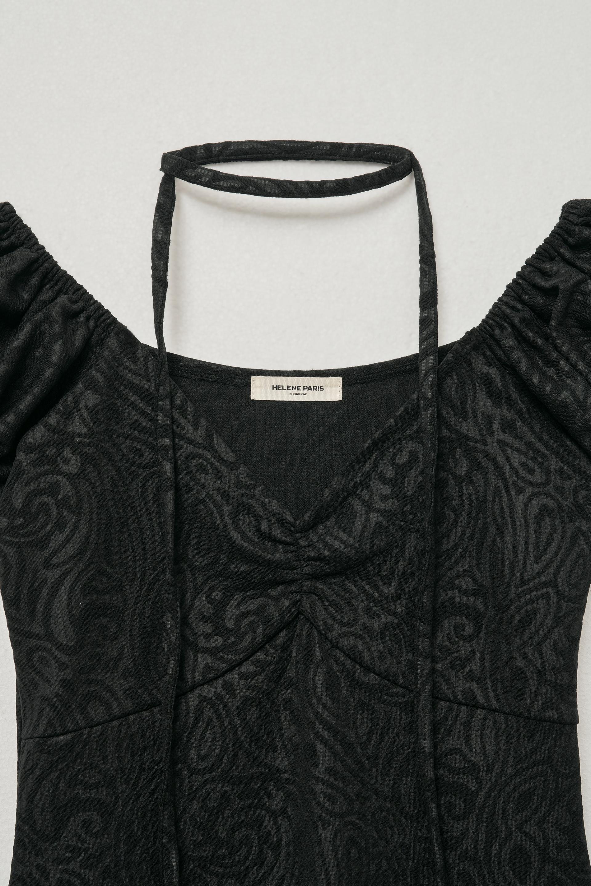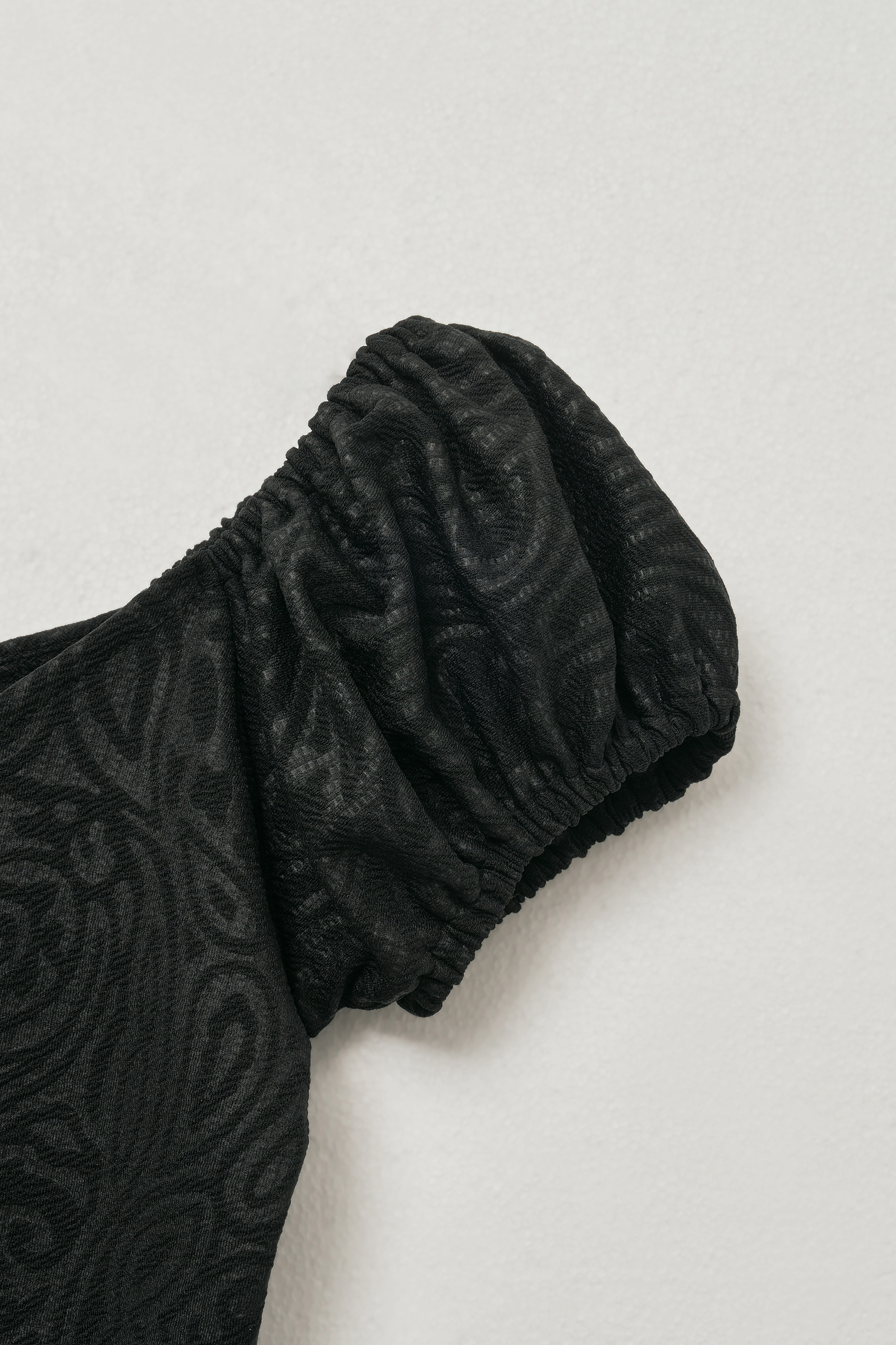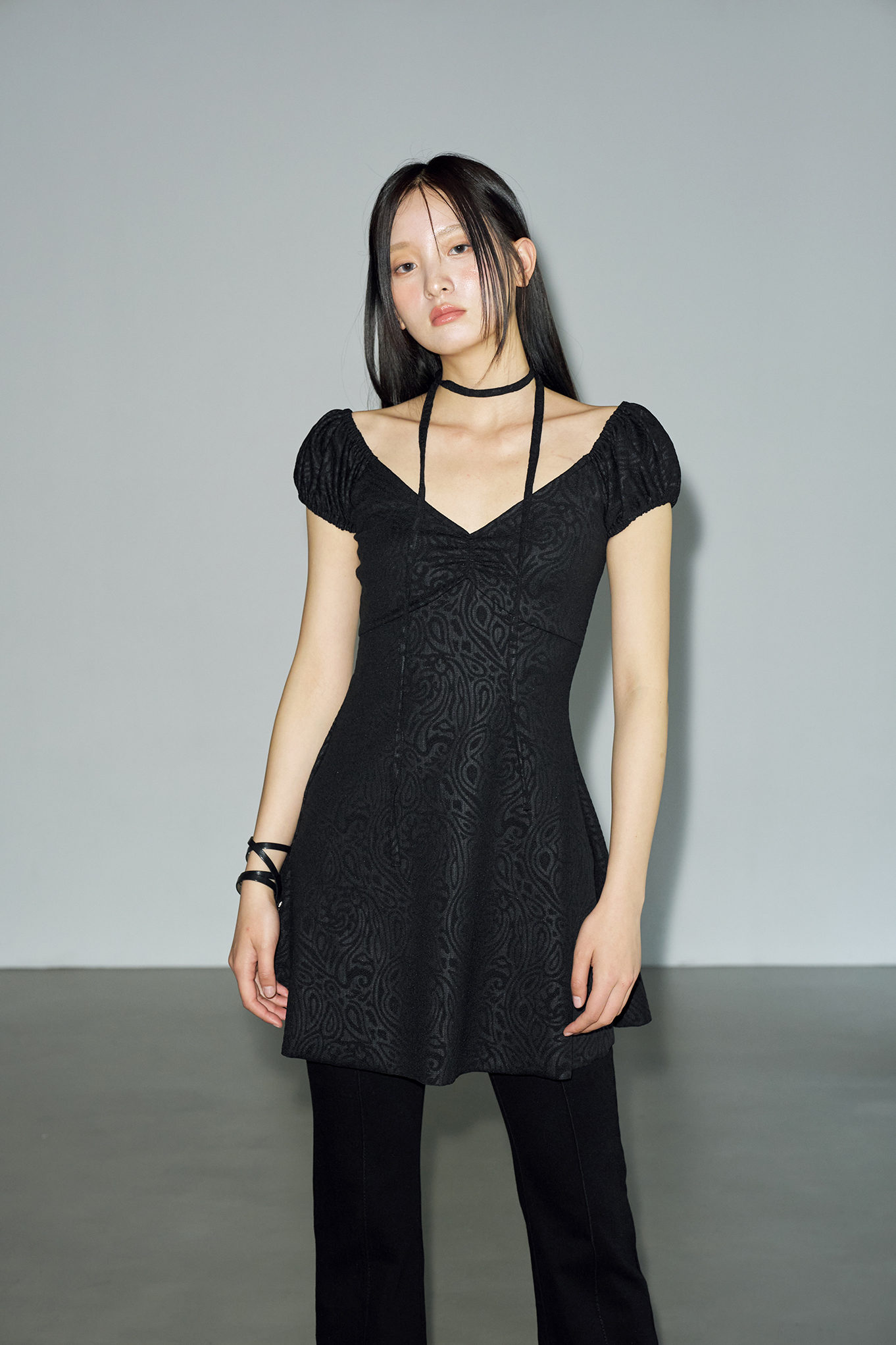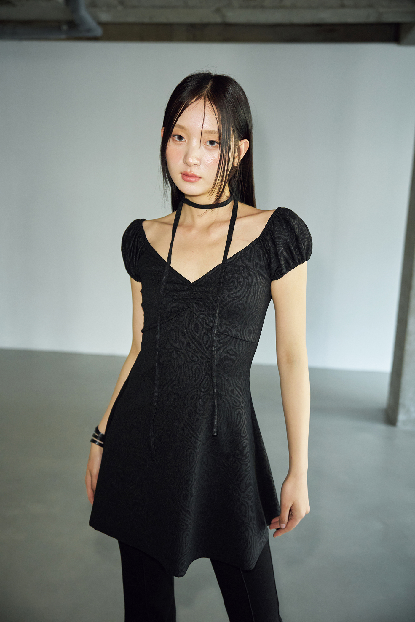 - 풍성하게 잡힌 퍼프 소매와 넥 스트랩으로 로맨틱한 분위기를 강조해 주며, 오프숄더로도 스타일링 할 수 있습니다.