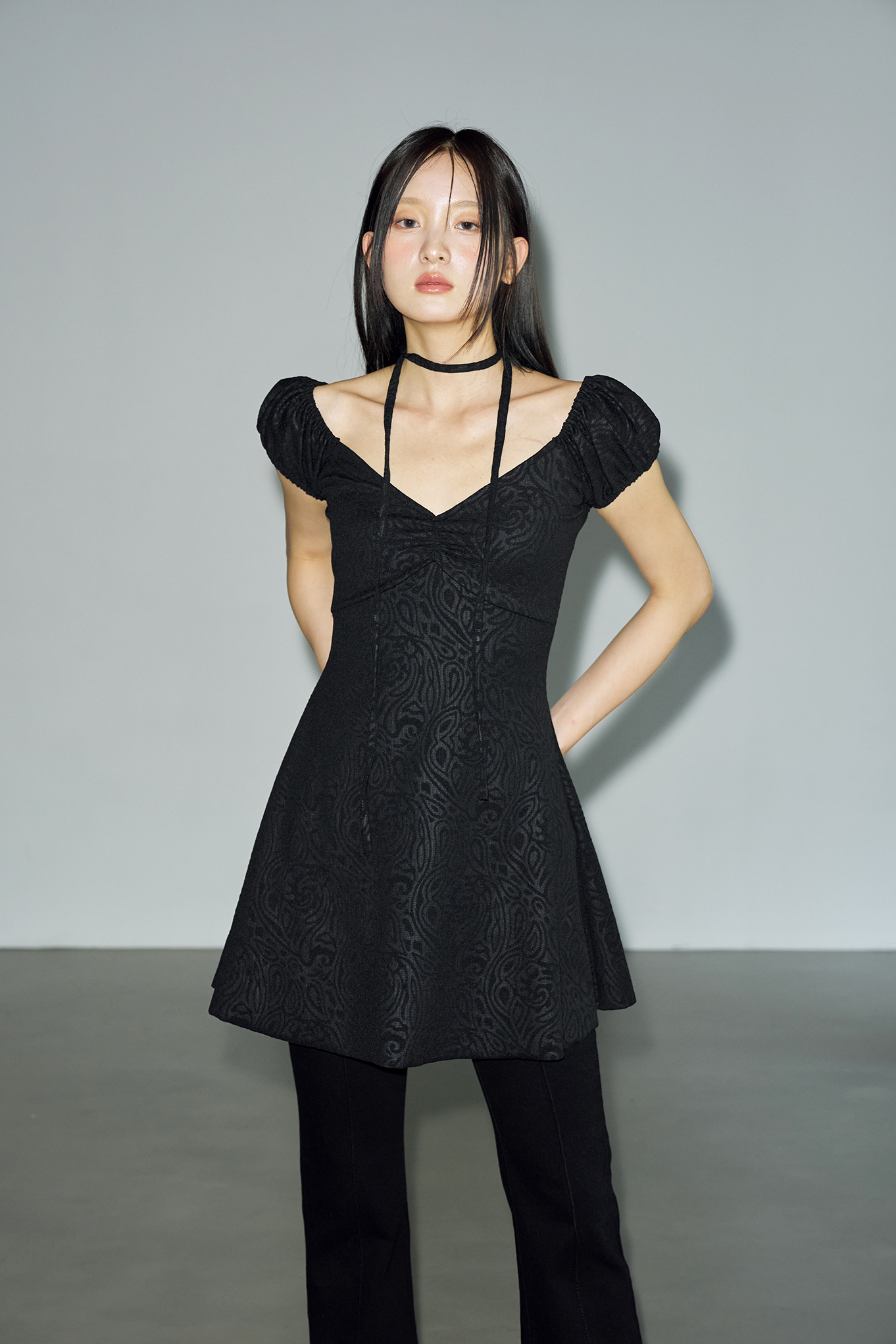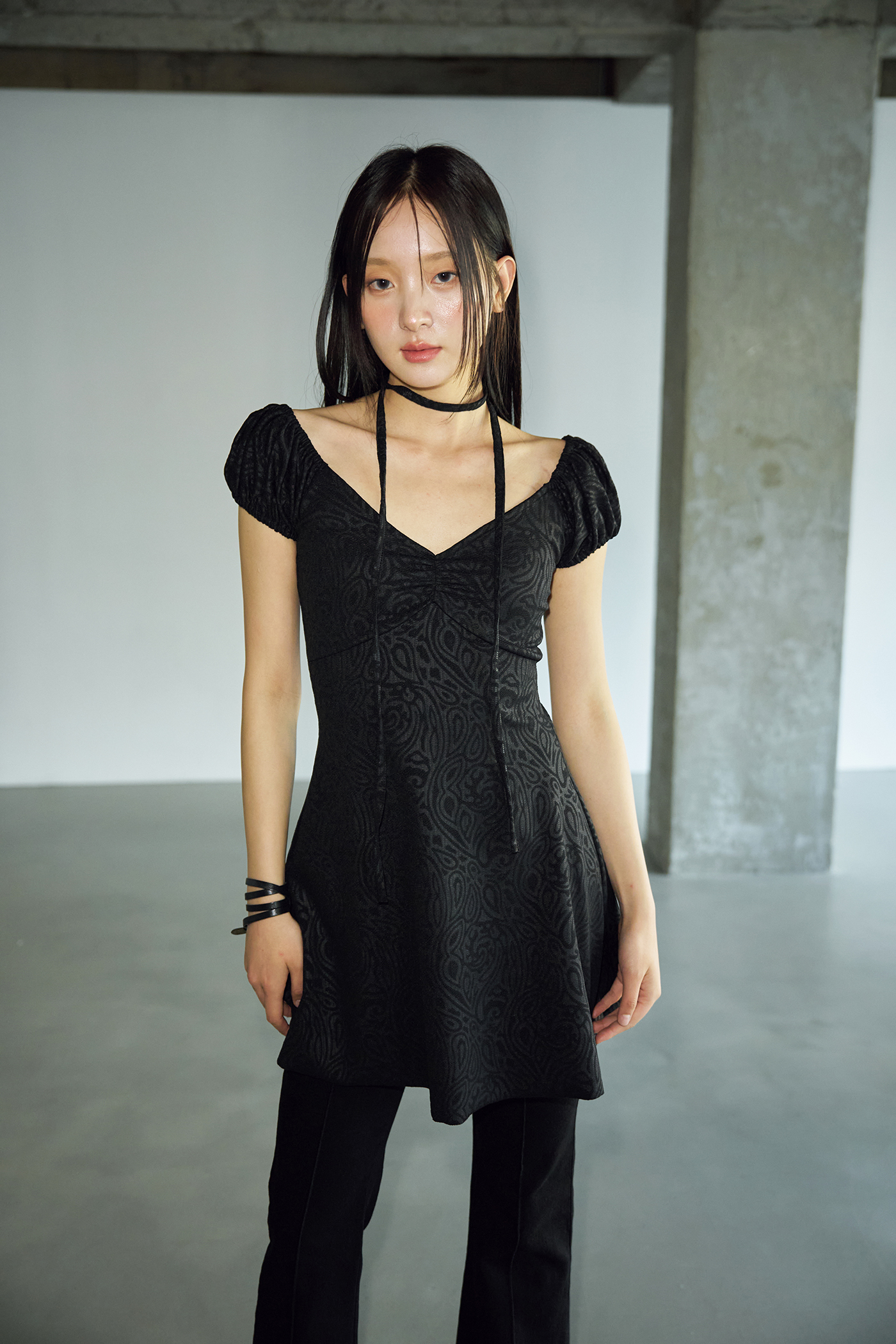 - 플로럴 자카드 패턴이 돋보이는 클래식한 무드의 원피스입니다.