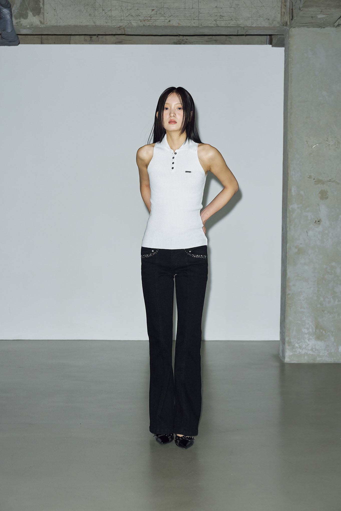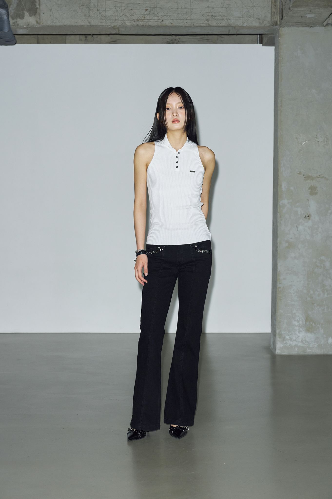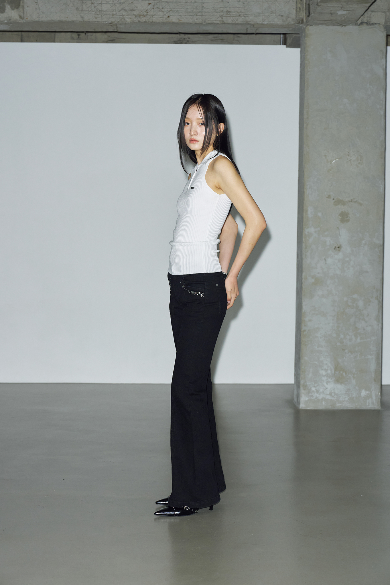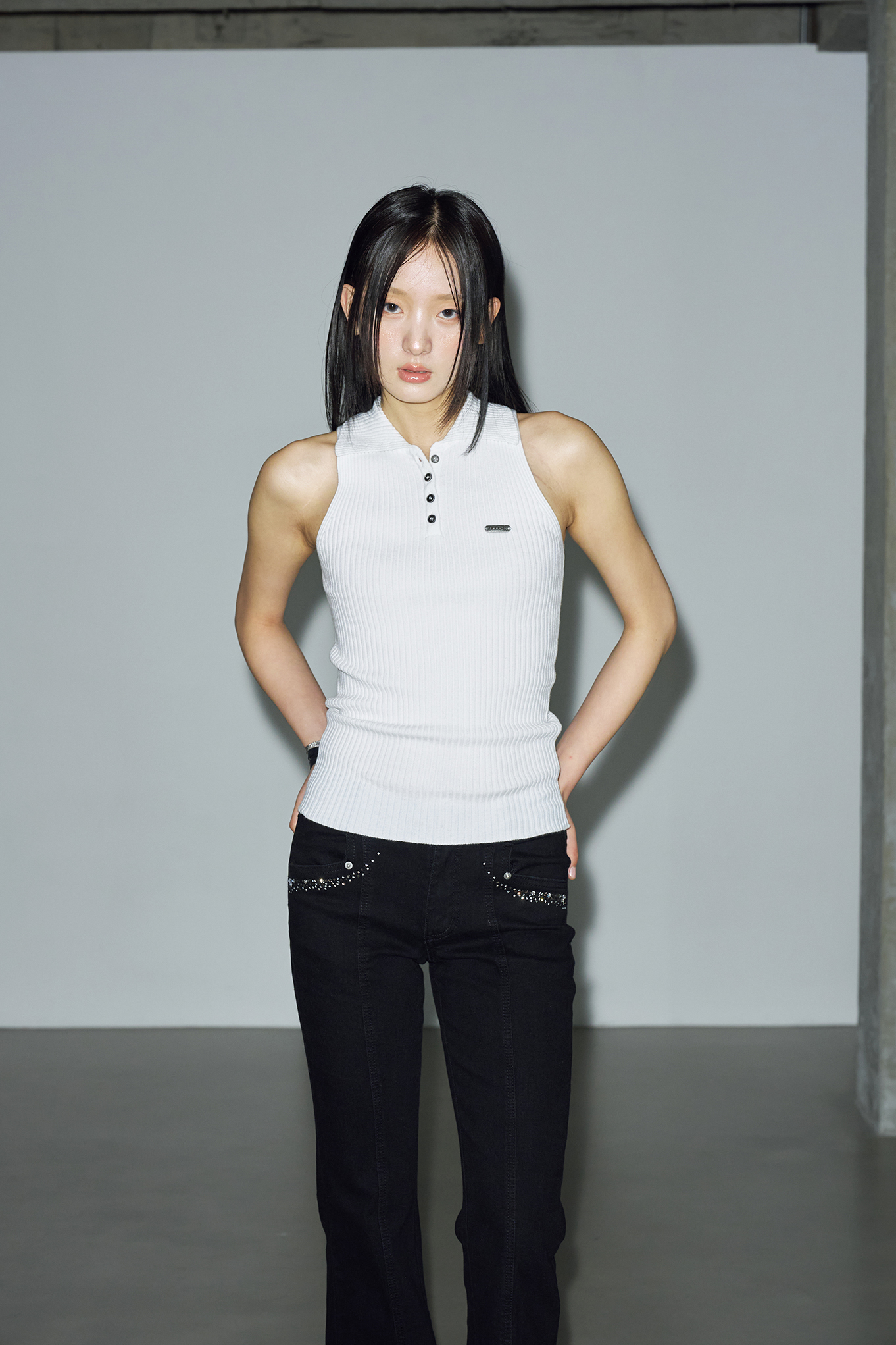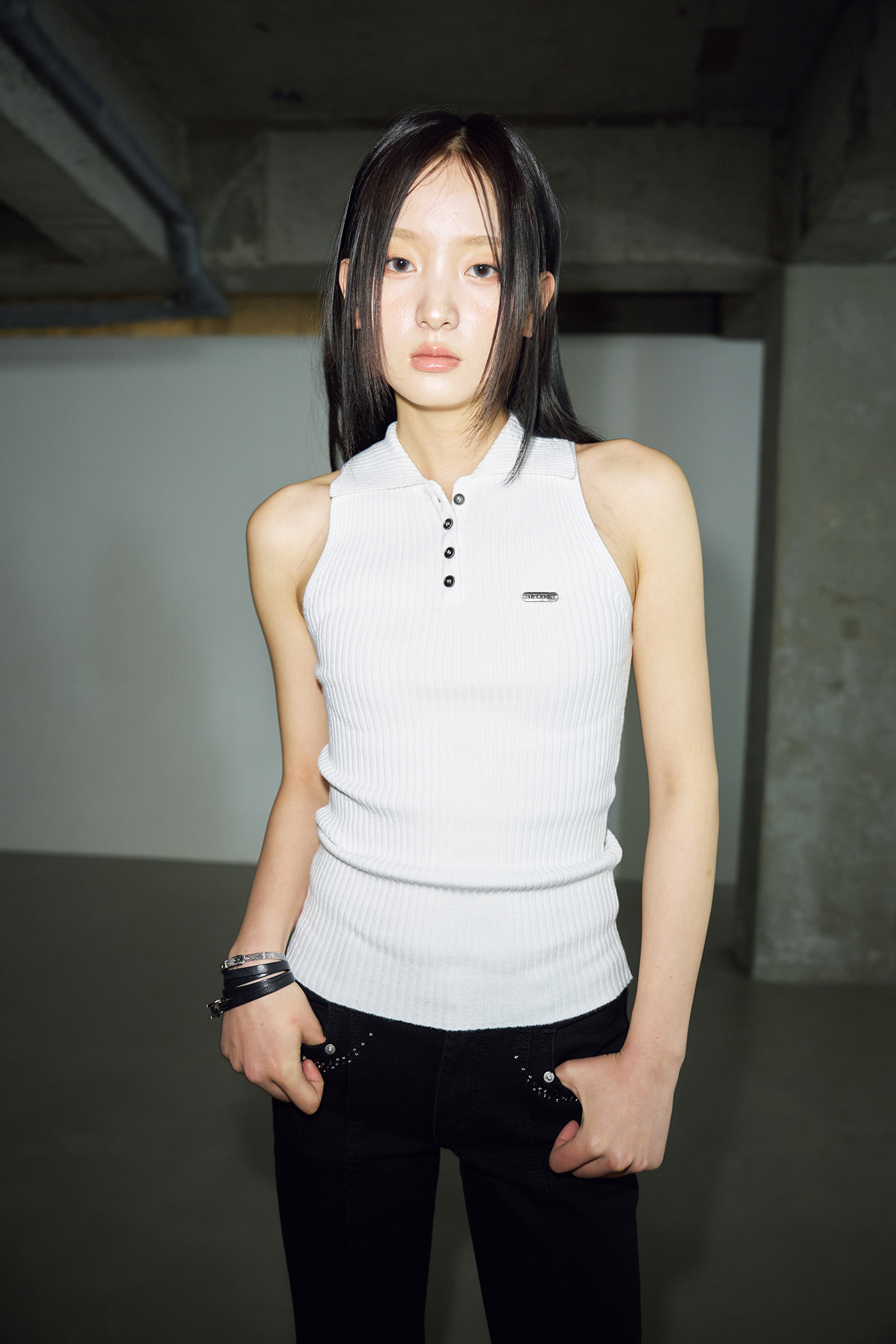 - 세로 골지 패브릭으로 슬림한 핏으로 체형을 강조해주어 더욱 여성스럽고 세련된 느낌을 연출할 수 있습니다.