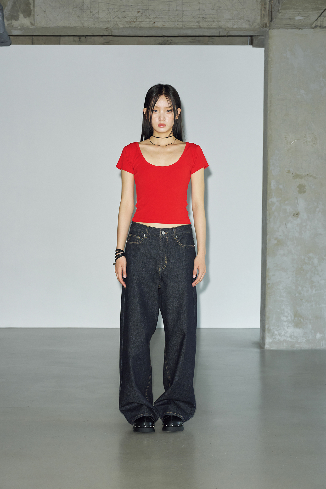 에센셜 라운드 하프 슬리브 [레드]