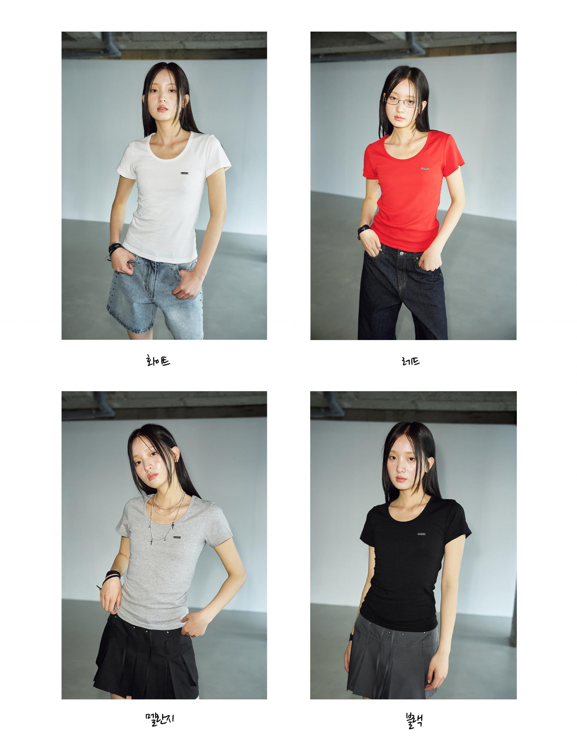 - 목이 편안한 U넥 네크라인이 적용된 심플한 베이직 골지 티셔츠입니다.