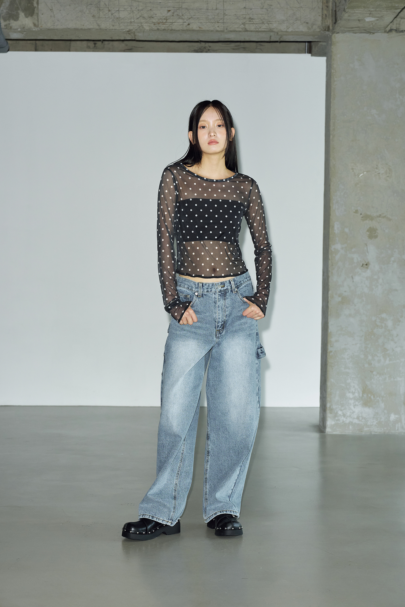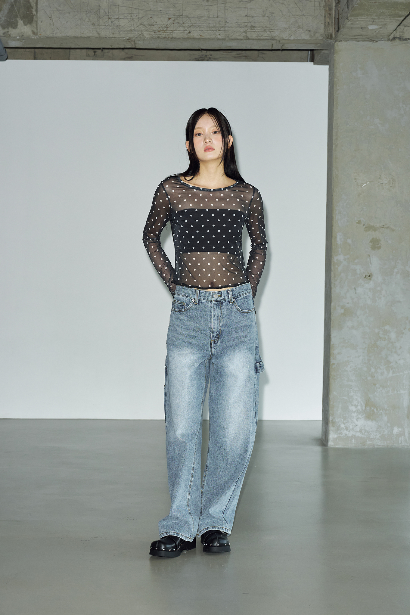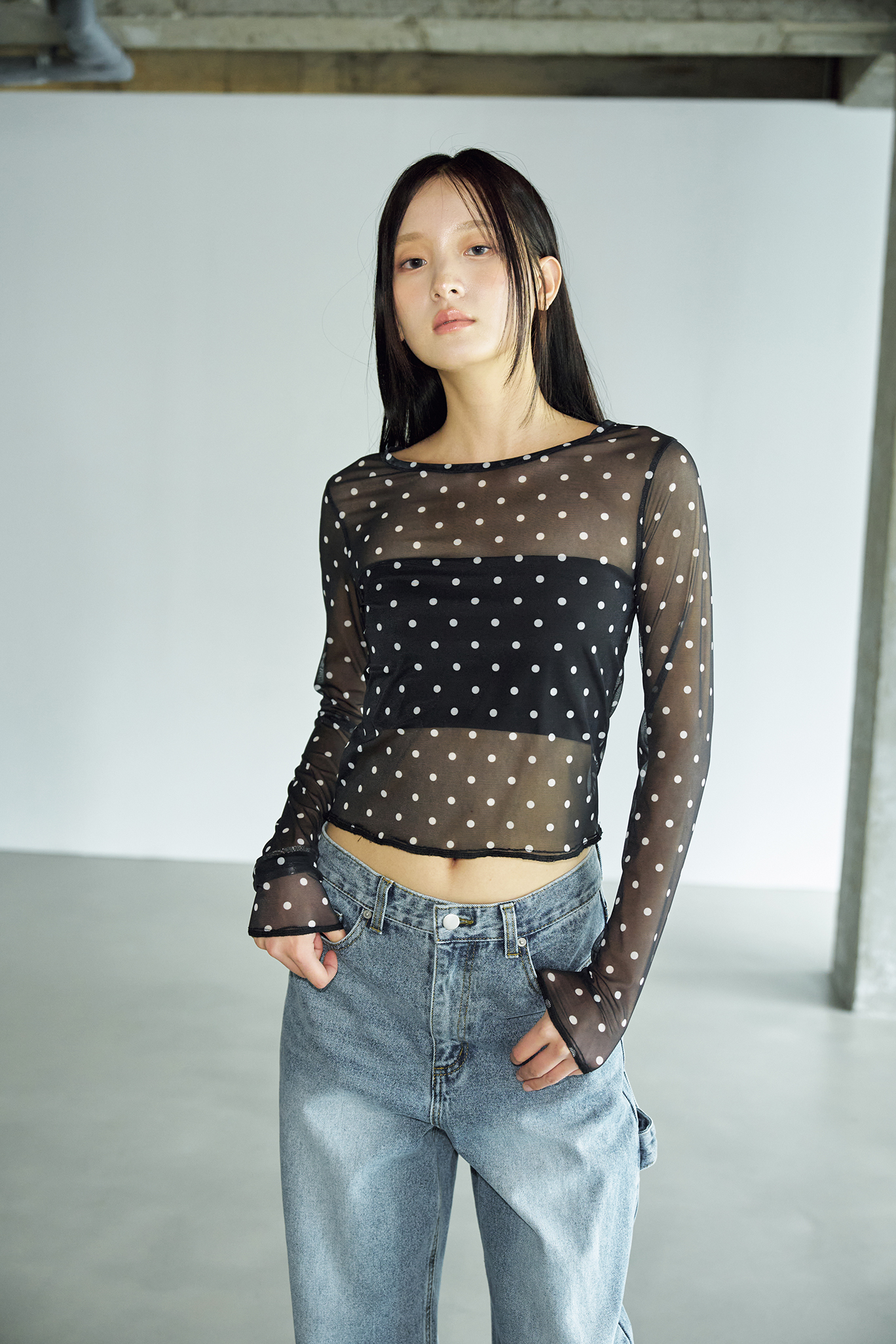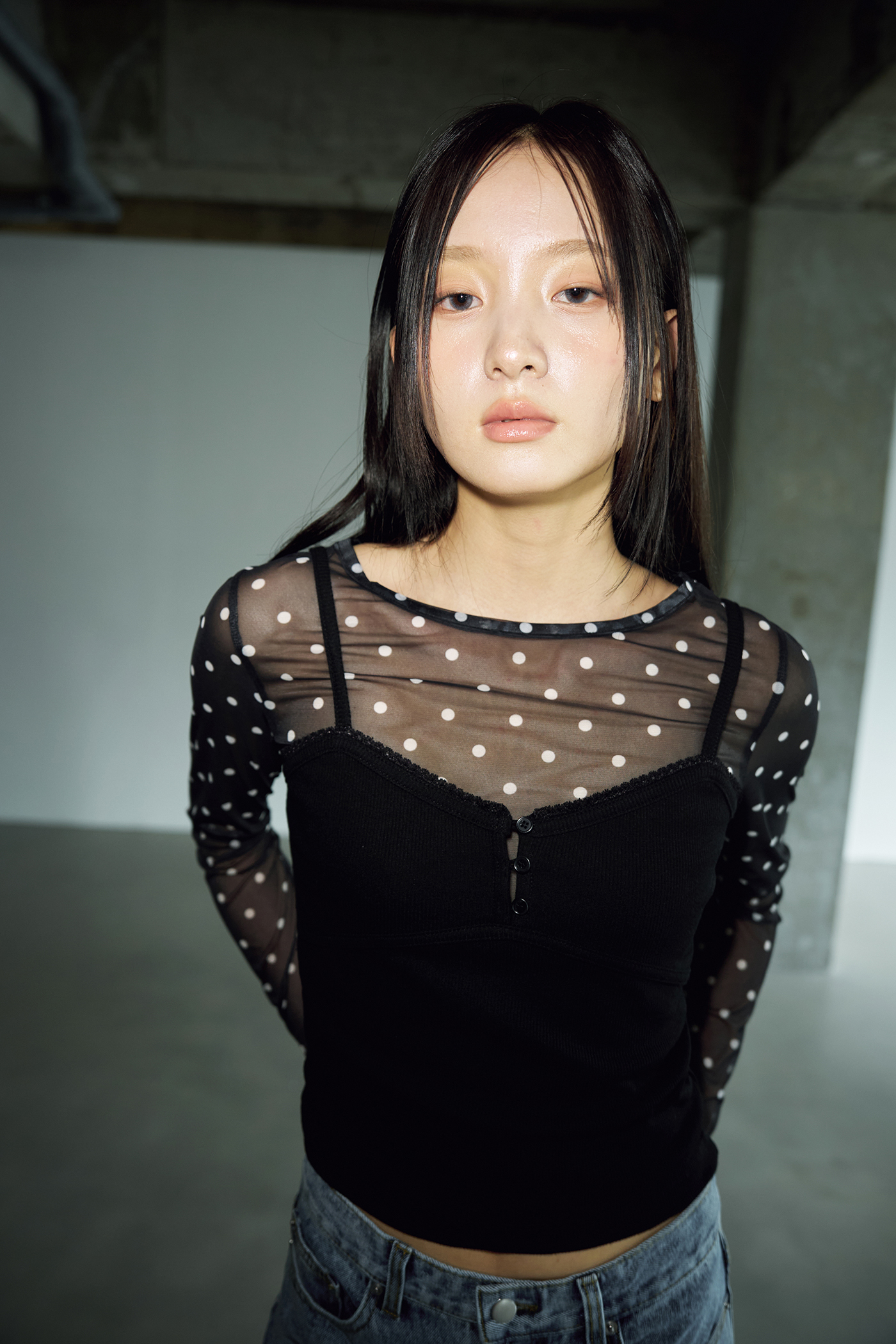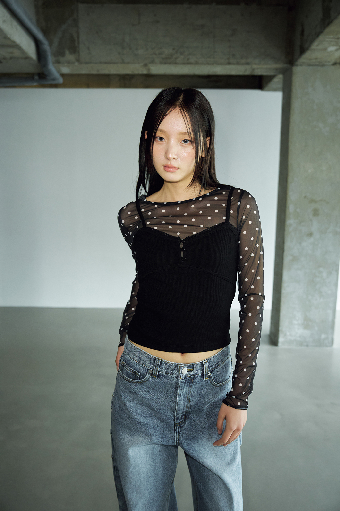 도트 시스루 레이어드 롱 슬리브 [블랙]