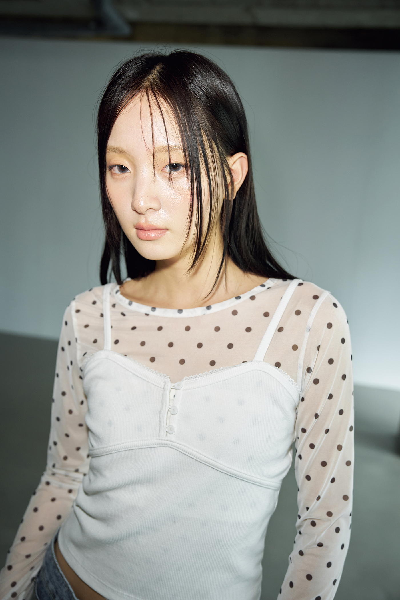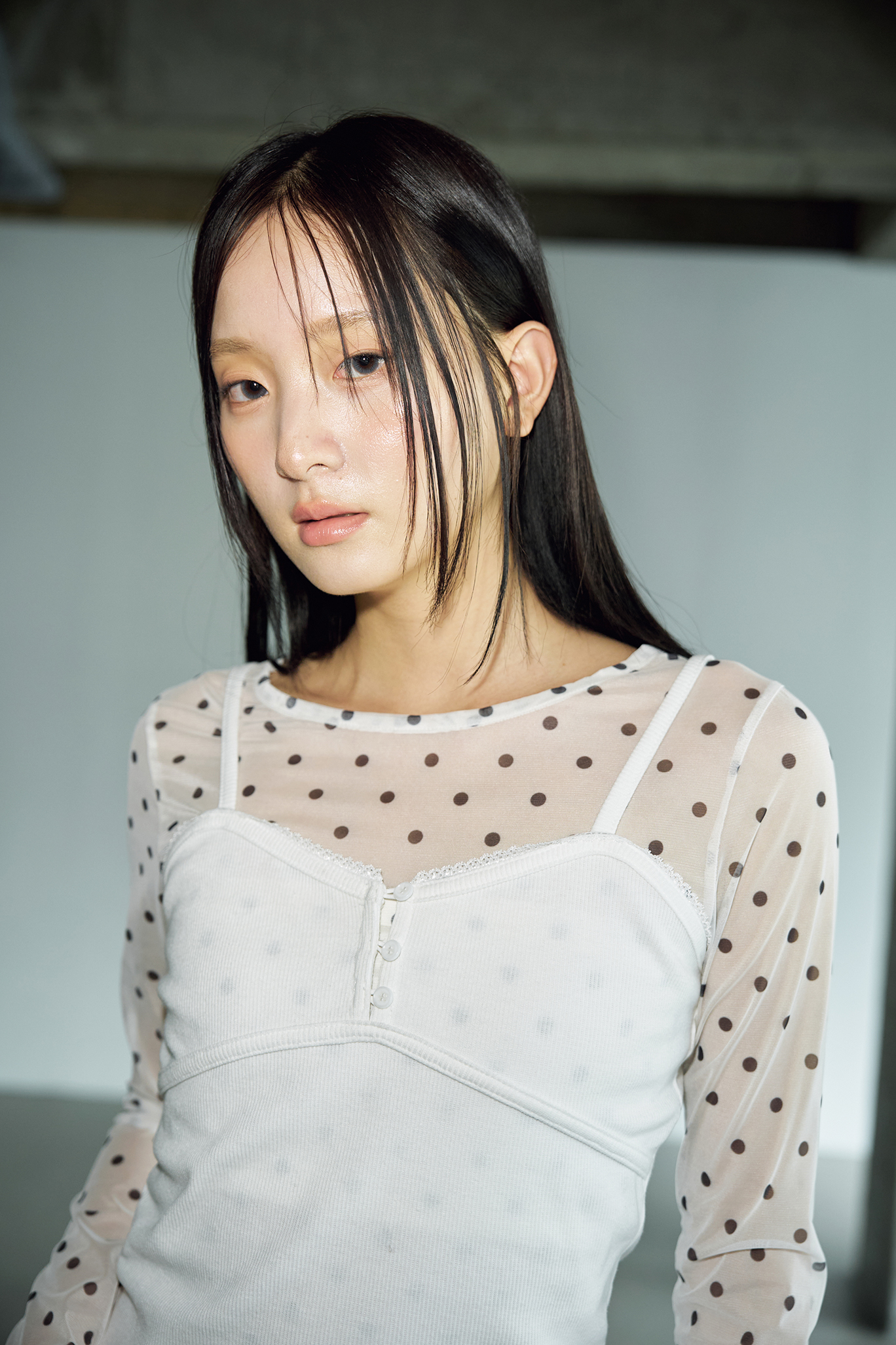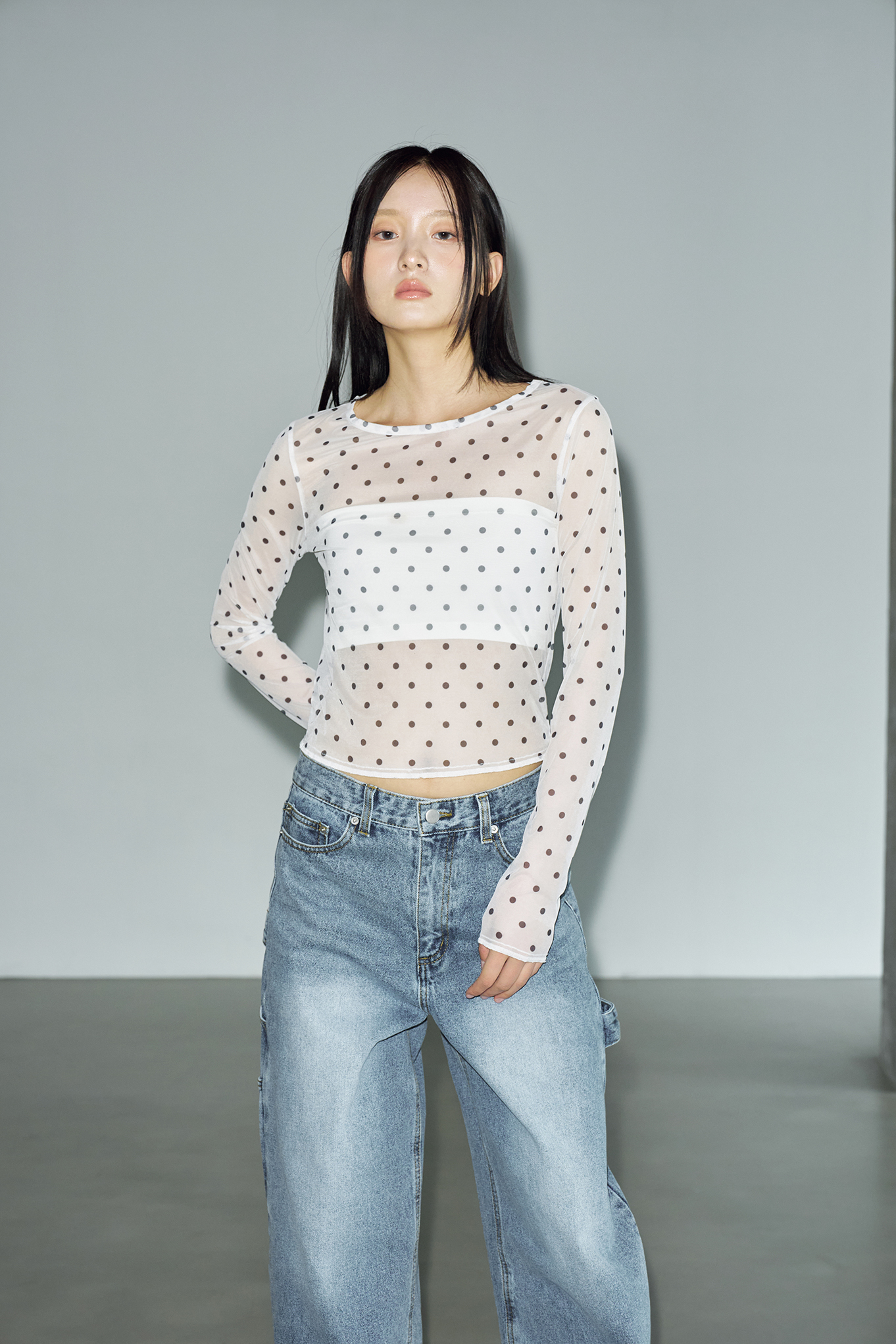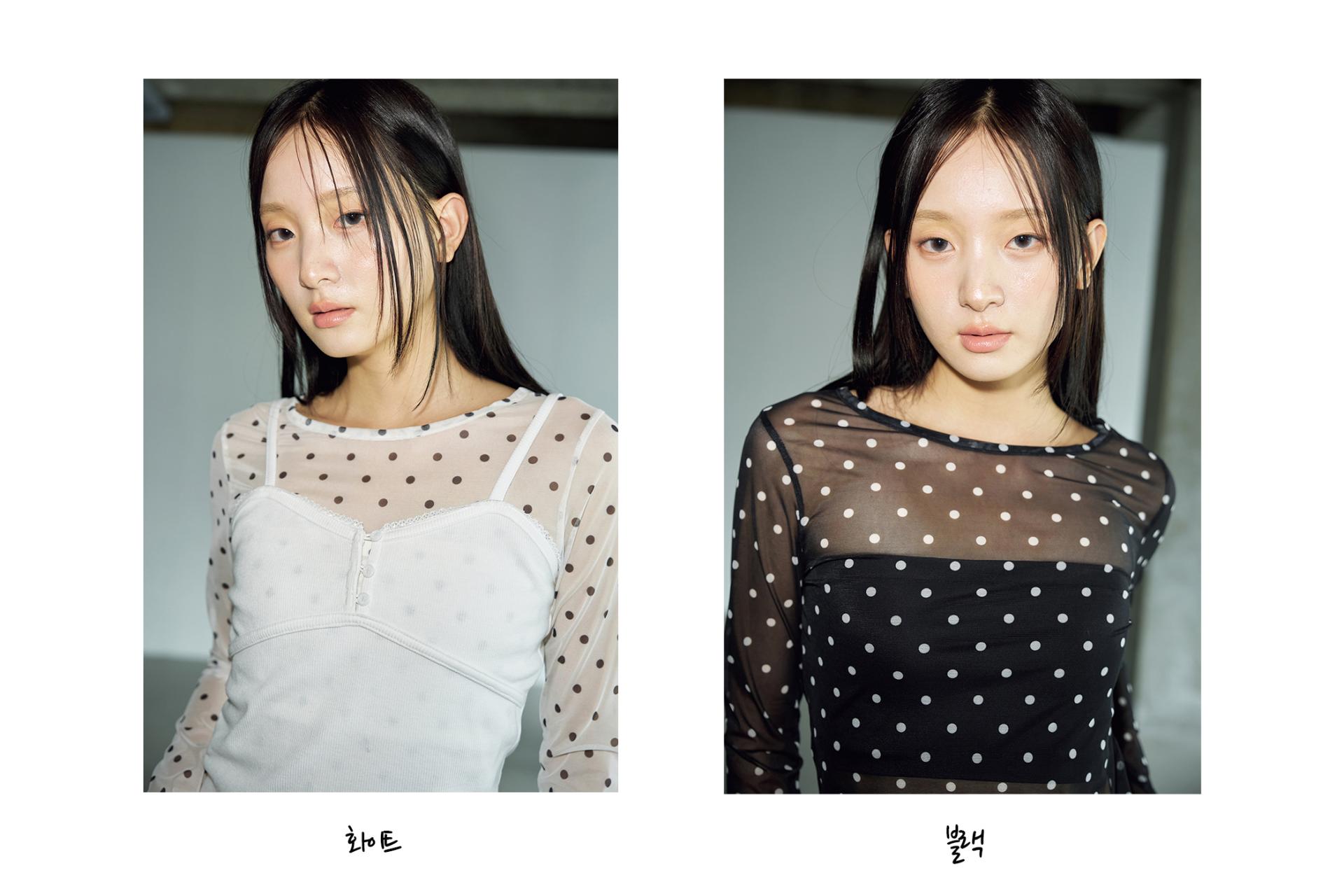 도트 시스루 레이어드 롱 슬리브 [화이트]