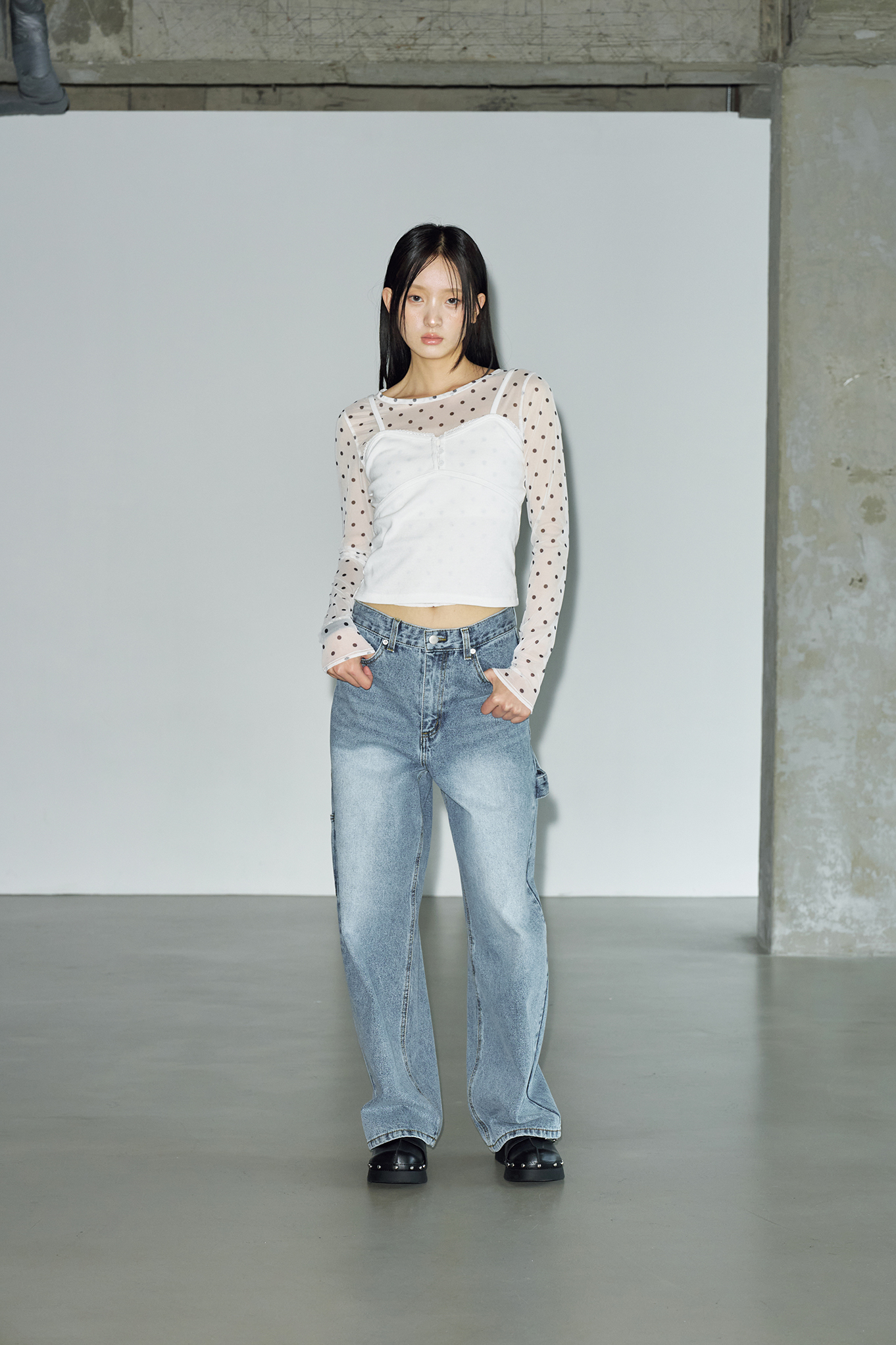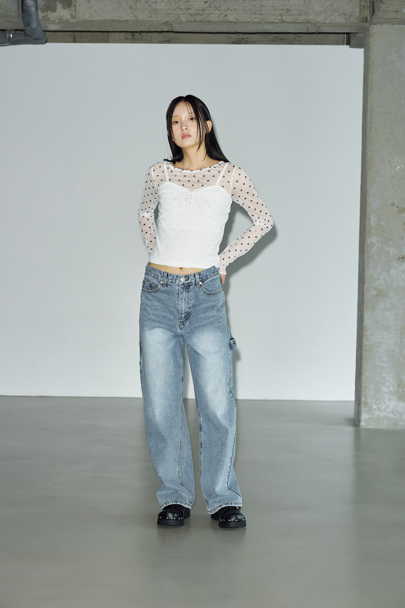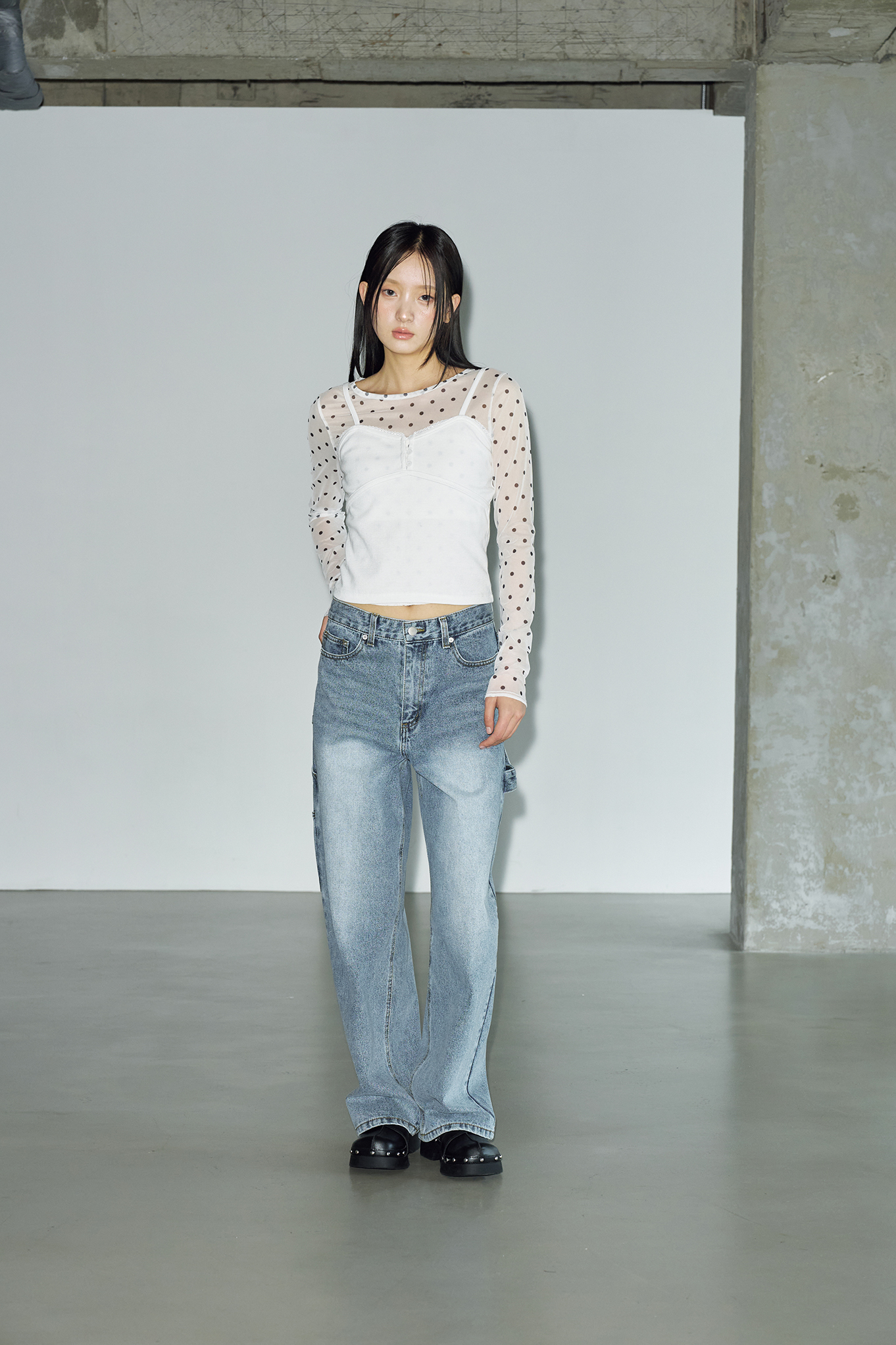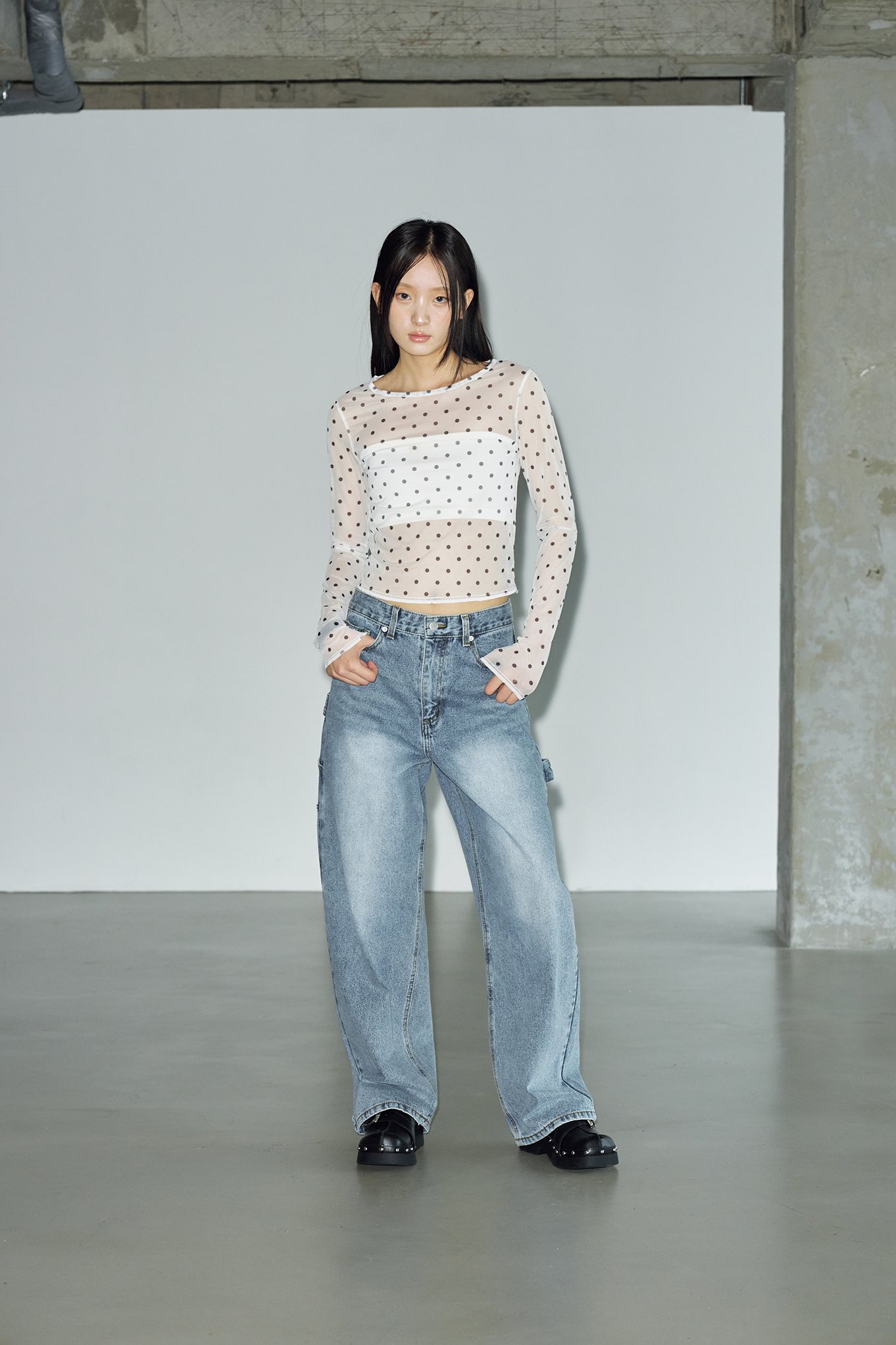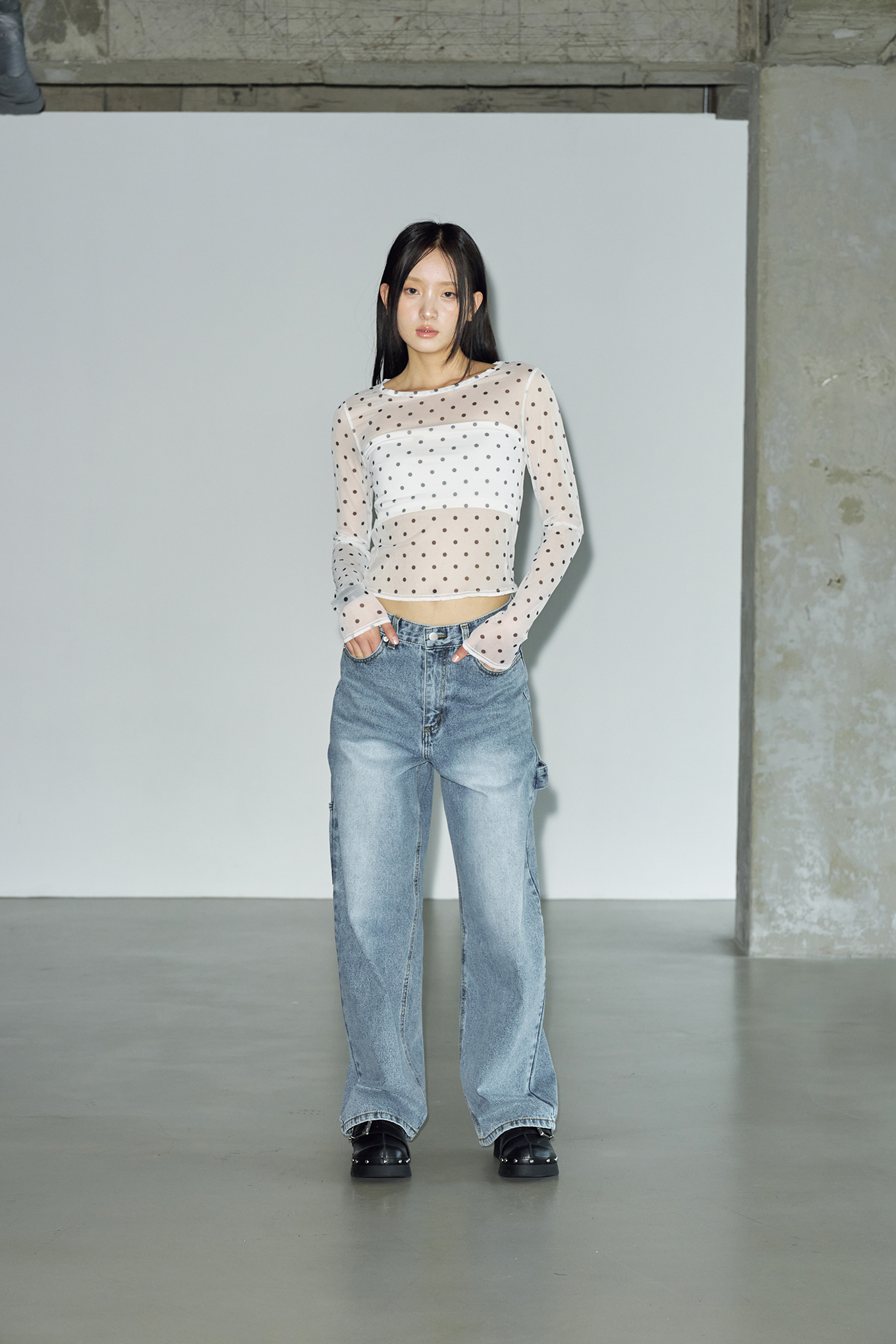 도트 시스루 레이어드 롱 슬리브 [화이트]