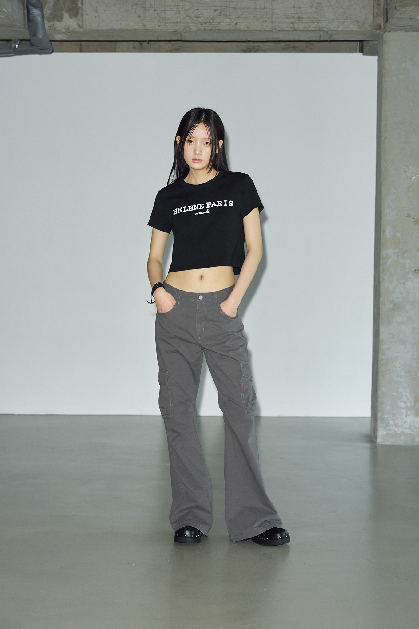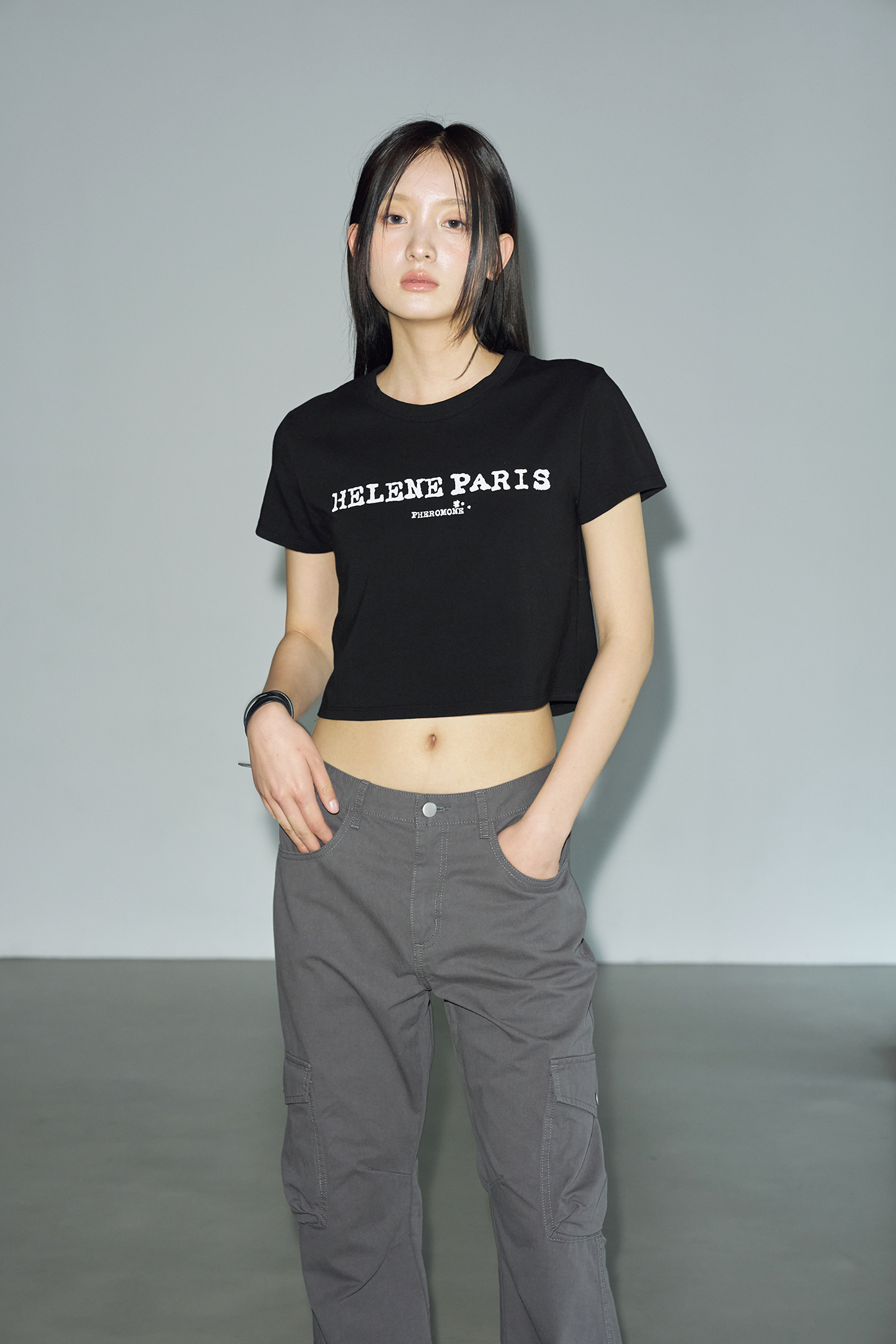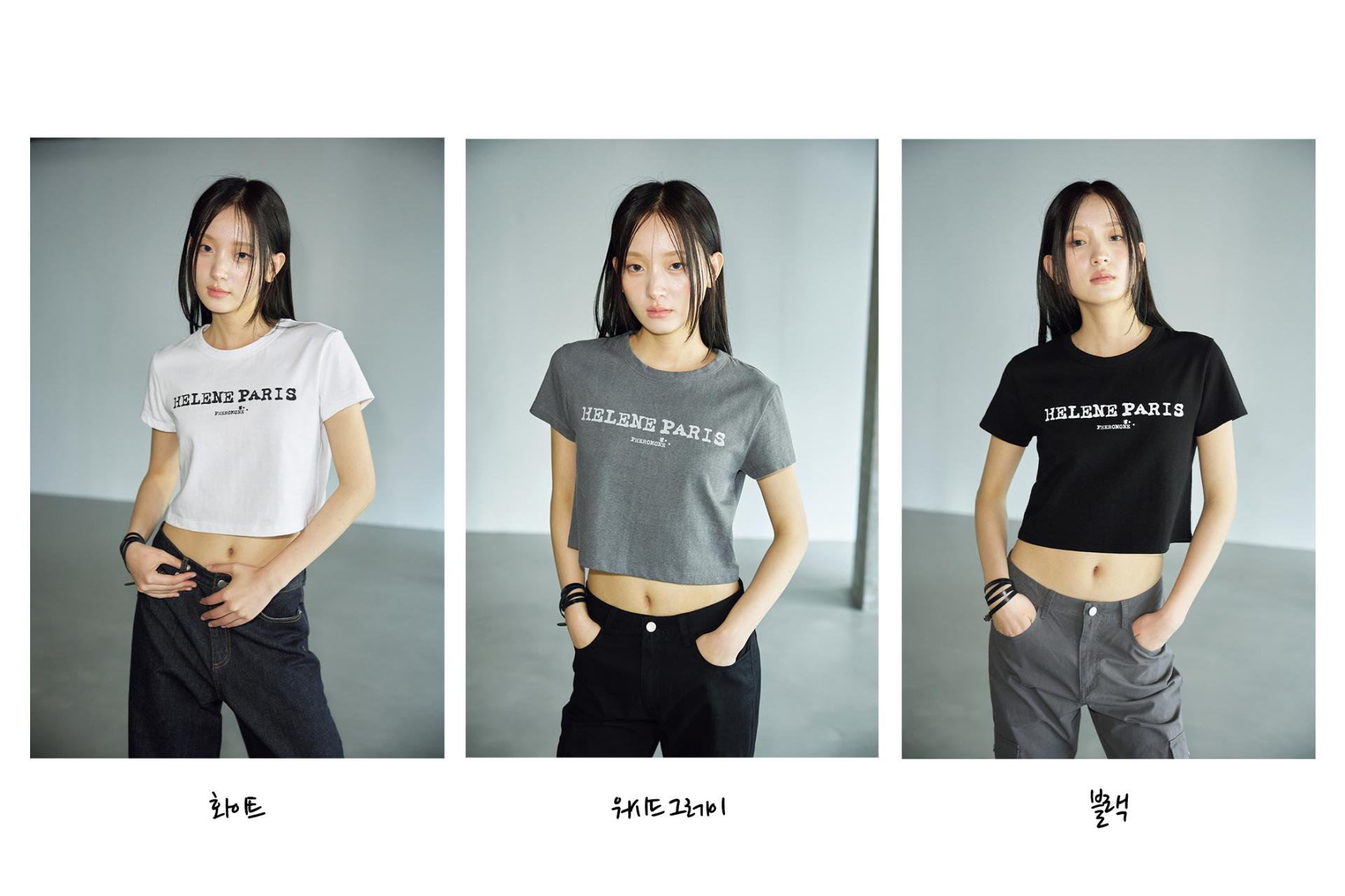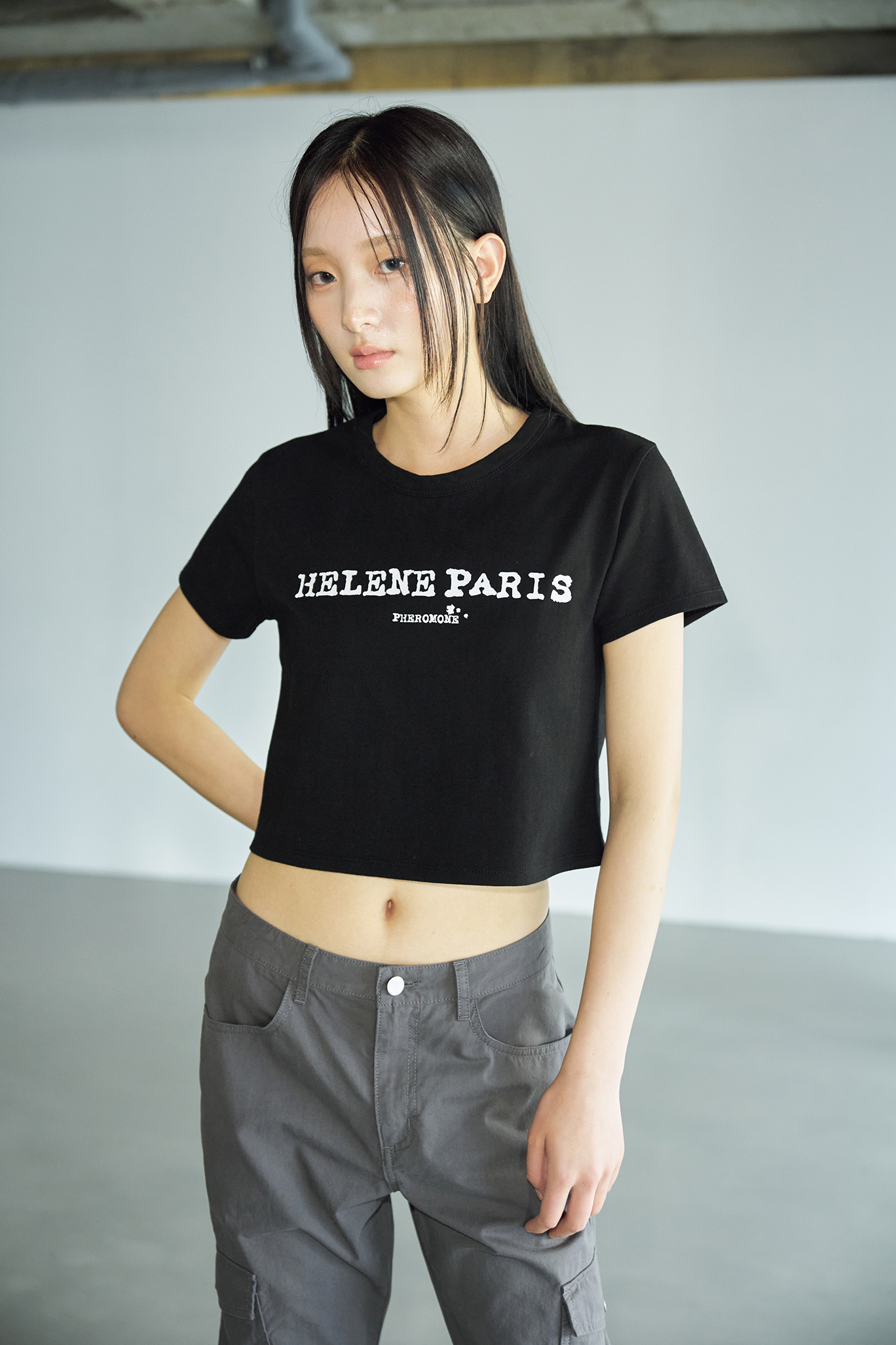 - 클래식한 헬레네 파리스 레밍턴 로고 디자인이 포인트인 세미 크롭 티셔츠입니다.