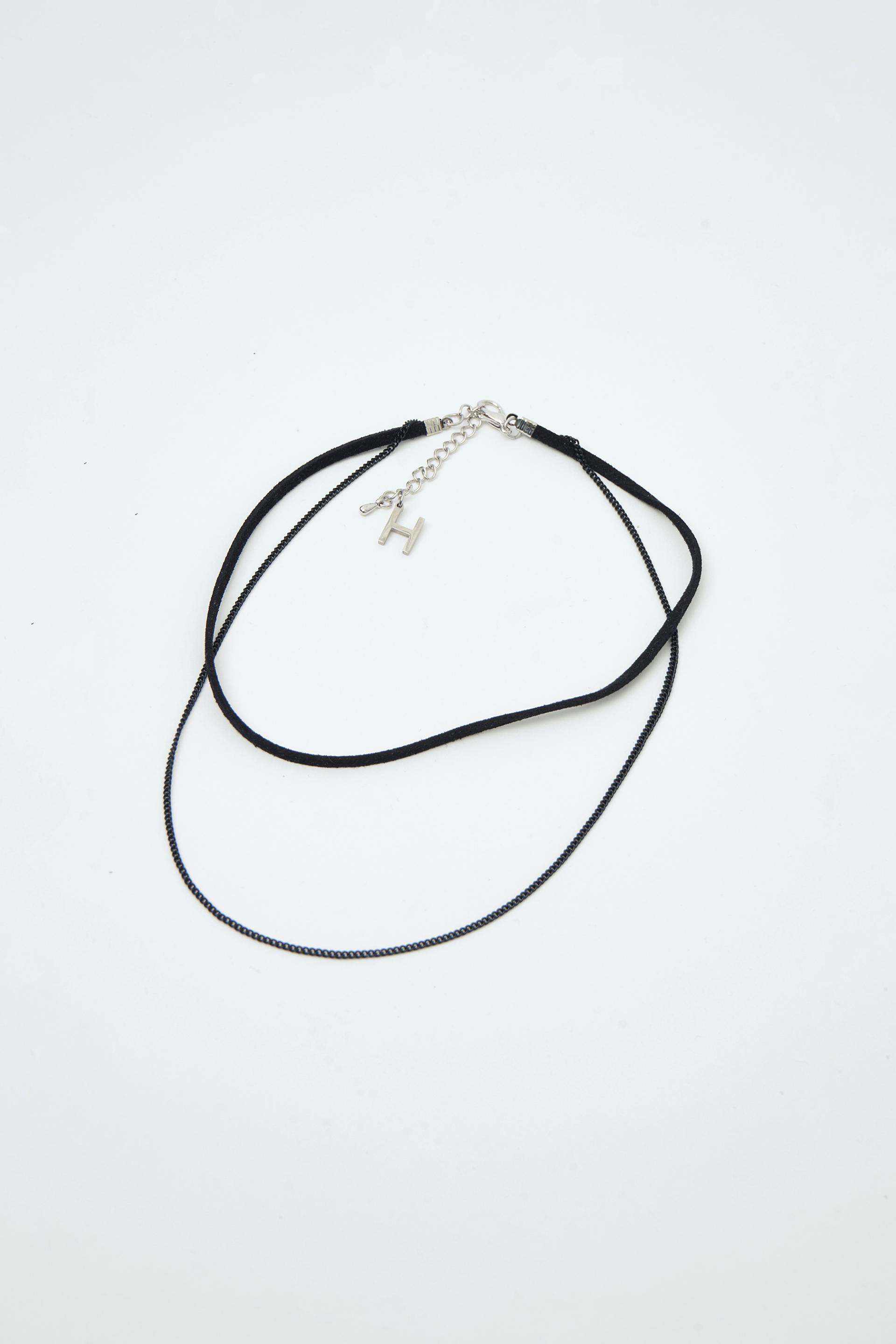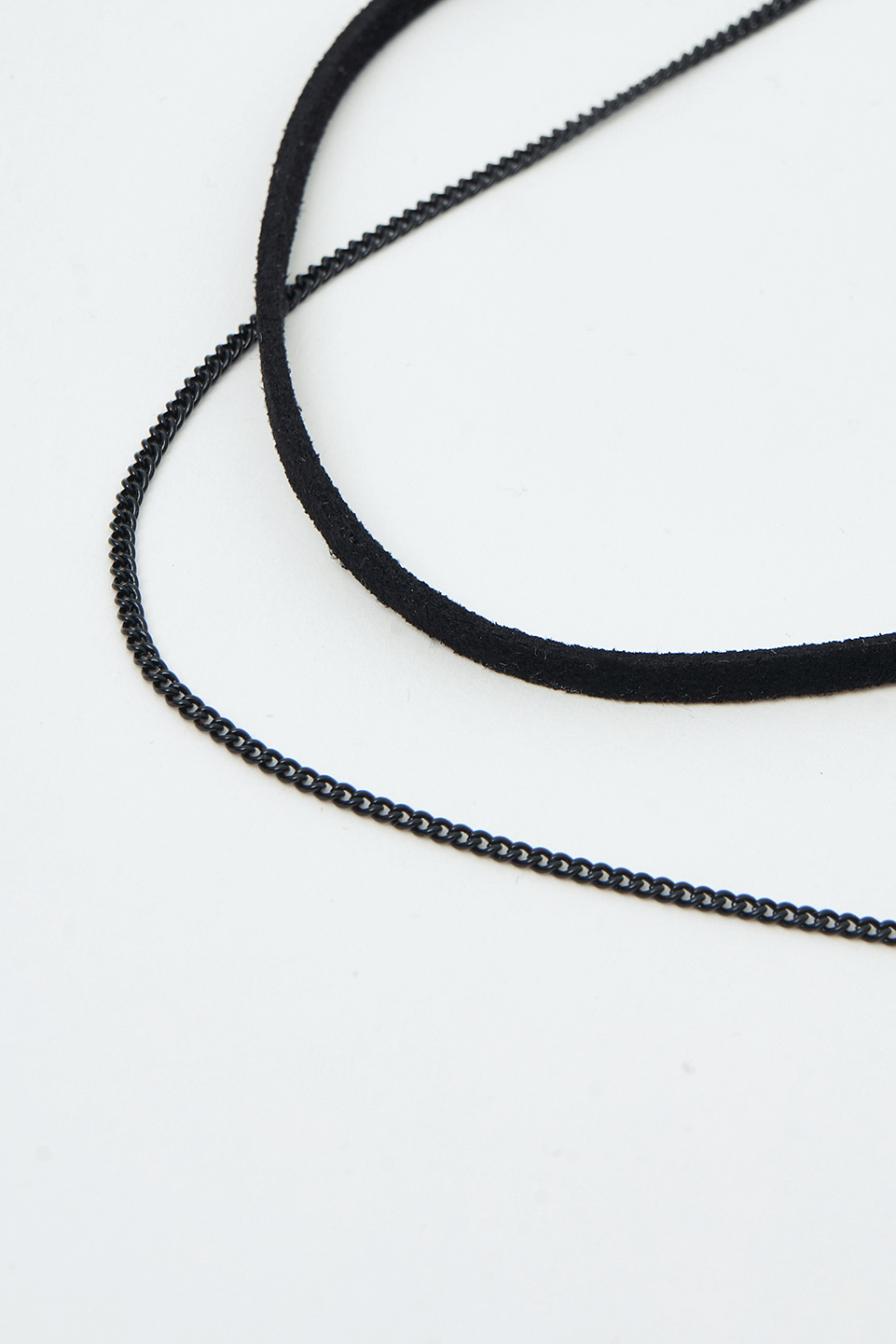 - 슬림한 스트랩과 블랙 체인을 레이어드한 초커로, 세련되면서도 강렬한 인상을 남기는 액세서리입니다.