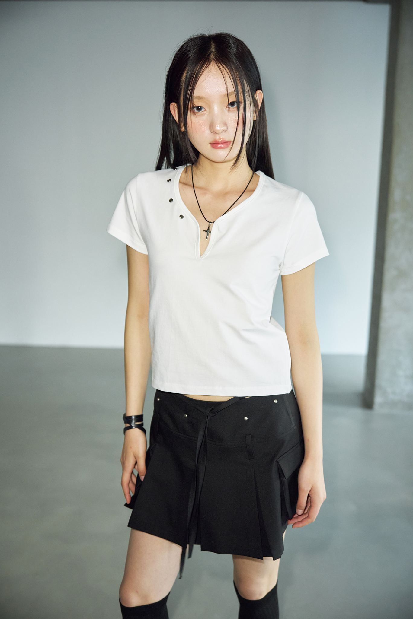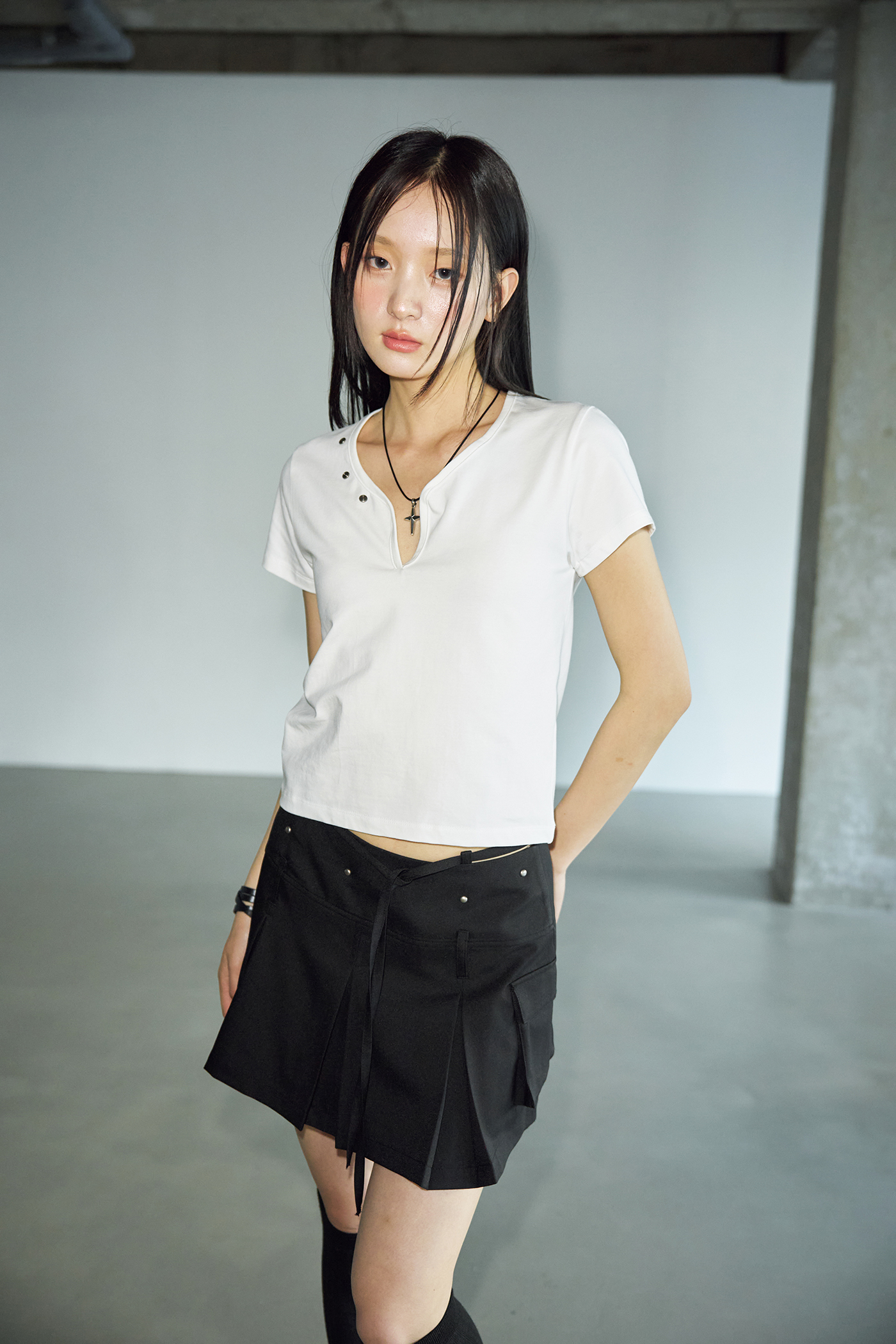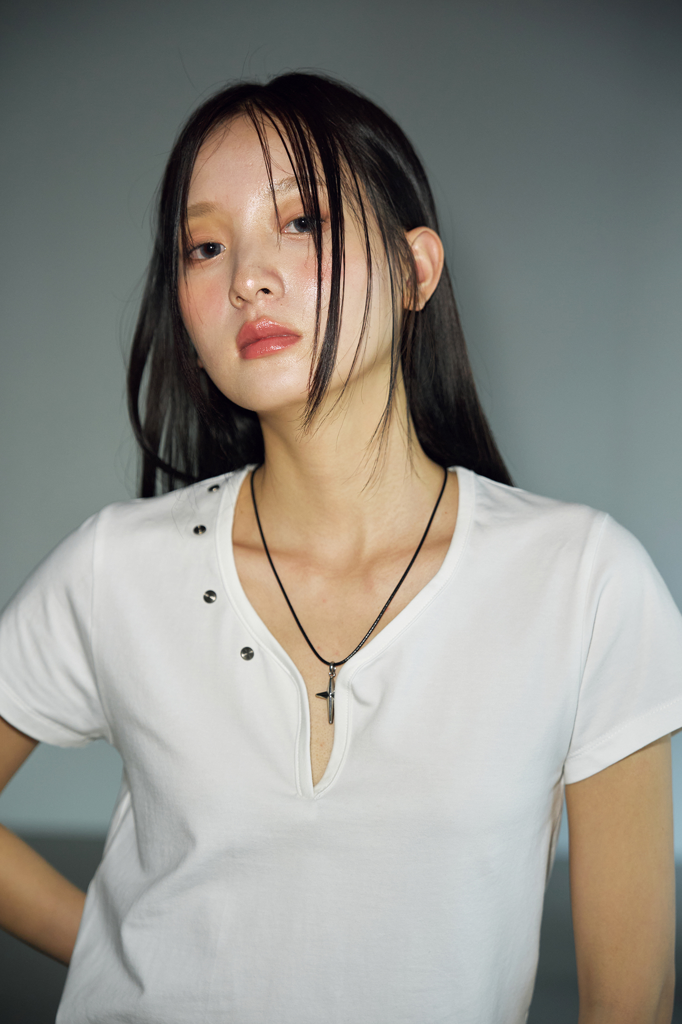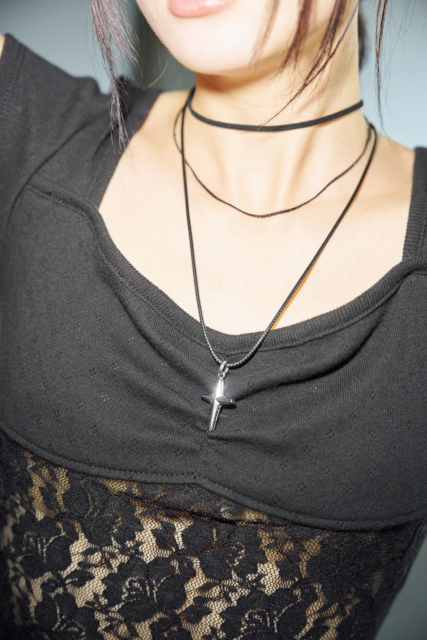 - 부담스럽지 않은 사이즈의 크로스 펜던트가 스타일을 강조하면서도 미니멀하고 깔끔해 세련된 느낌을 줍니다.