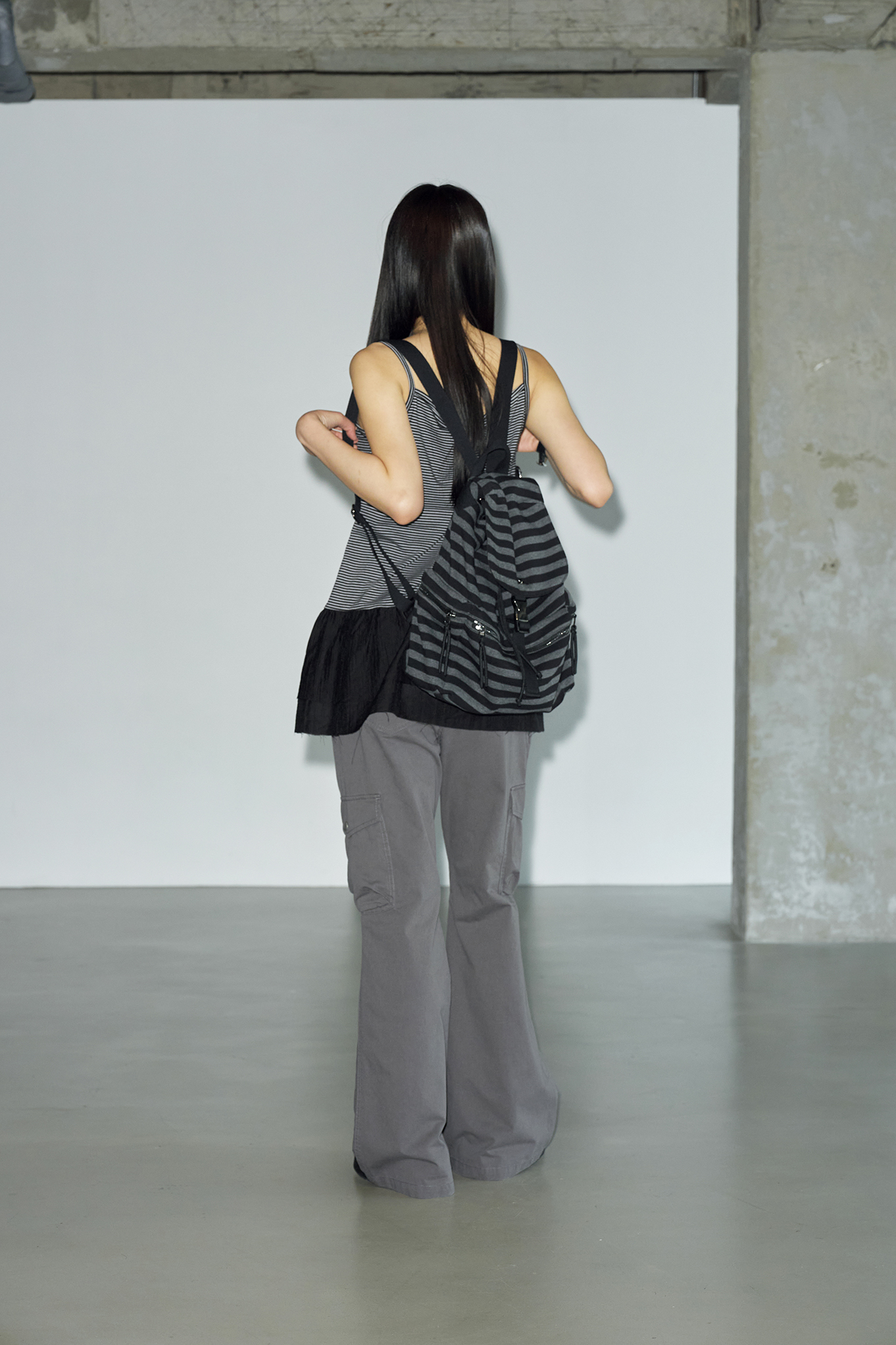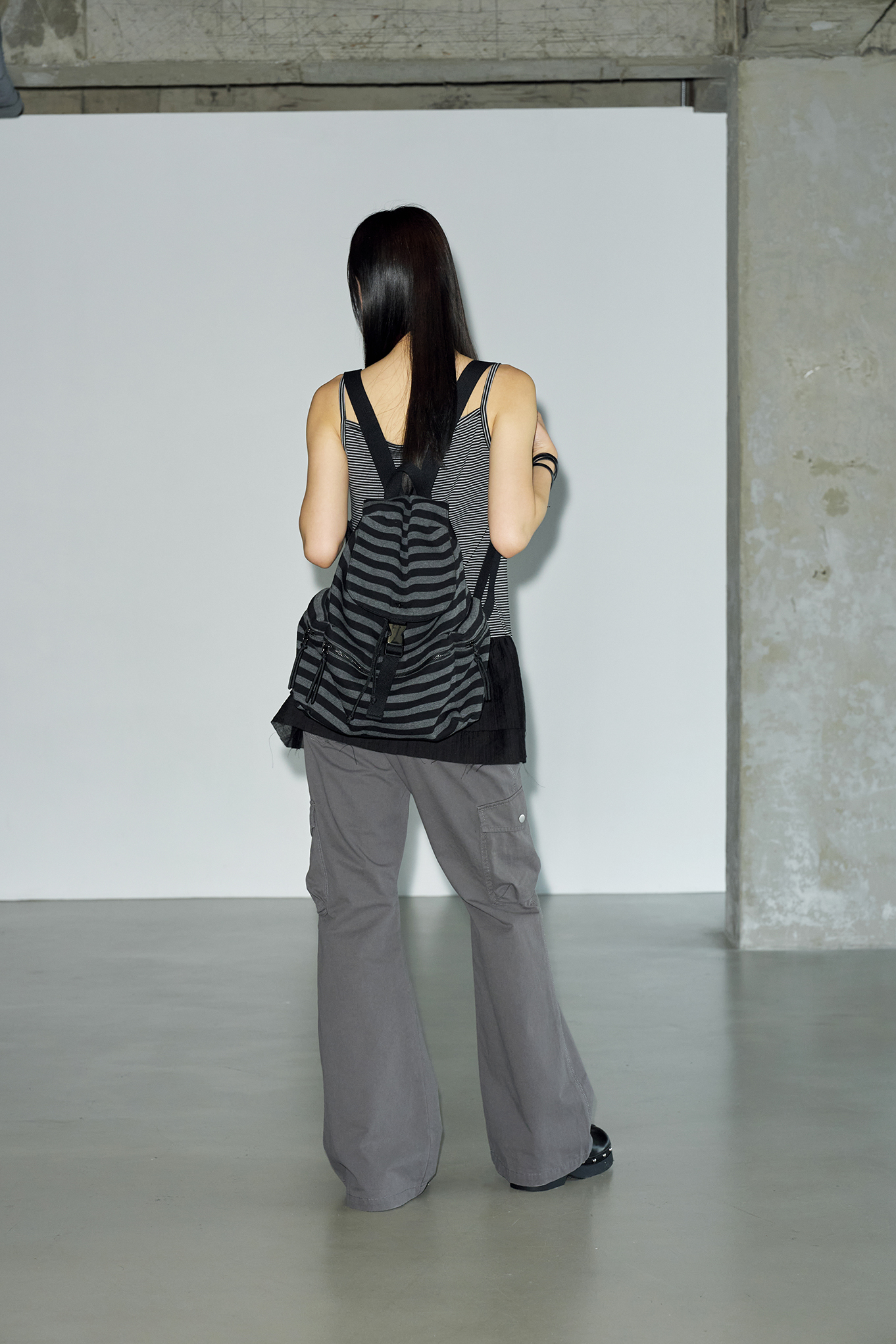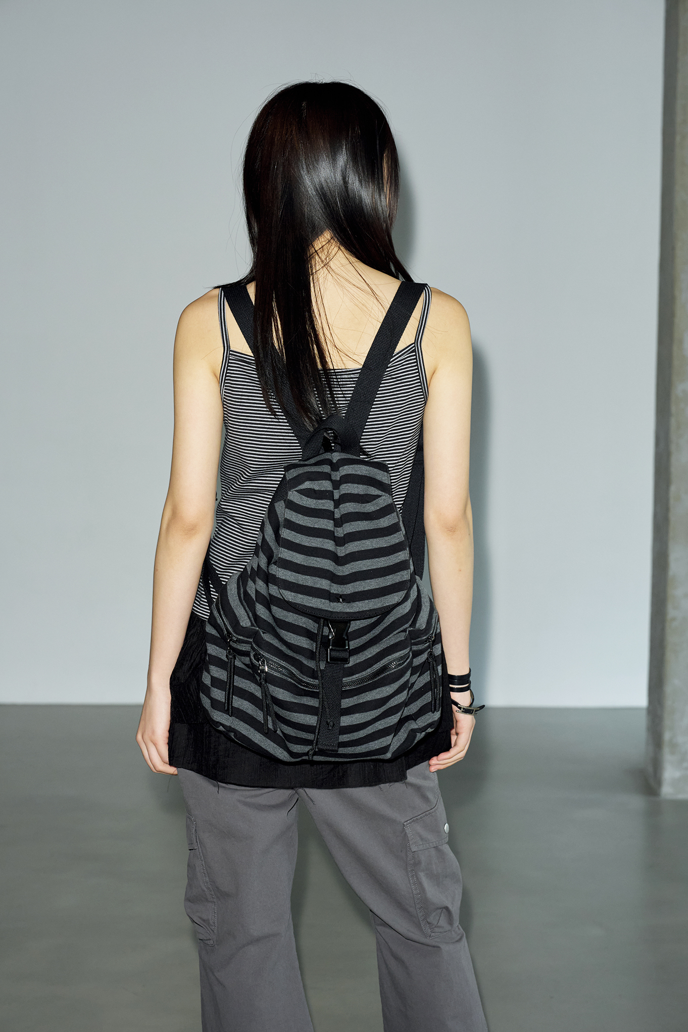- 그레이와 블랙의 스트라이프 조합은 어떤 스타일에도 잘 어울려 다양한 룩에 쉽게 매치할 수 있는 아이템입니다.
