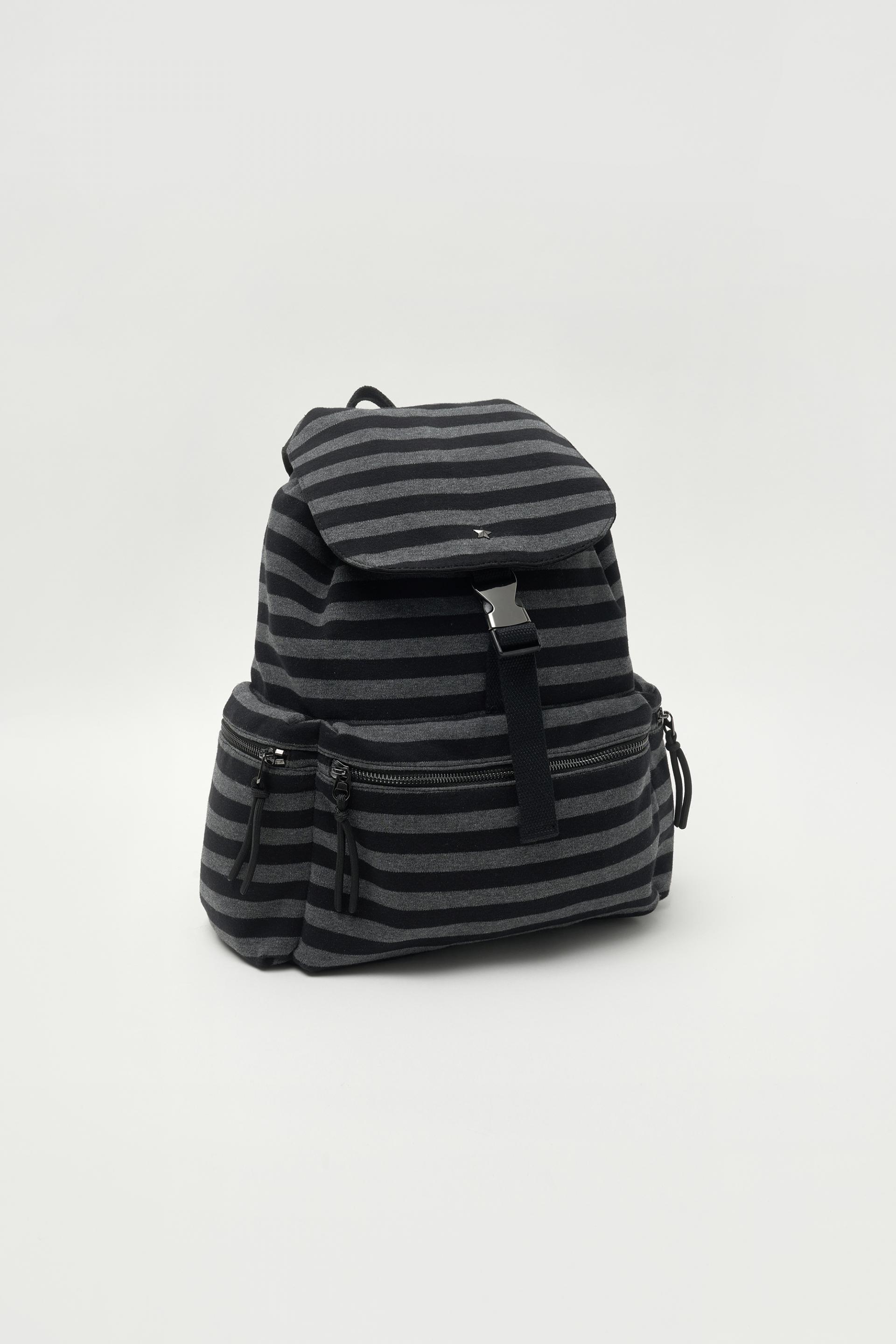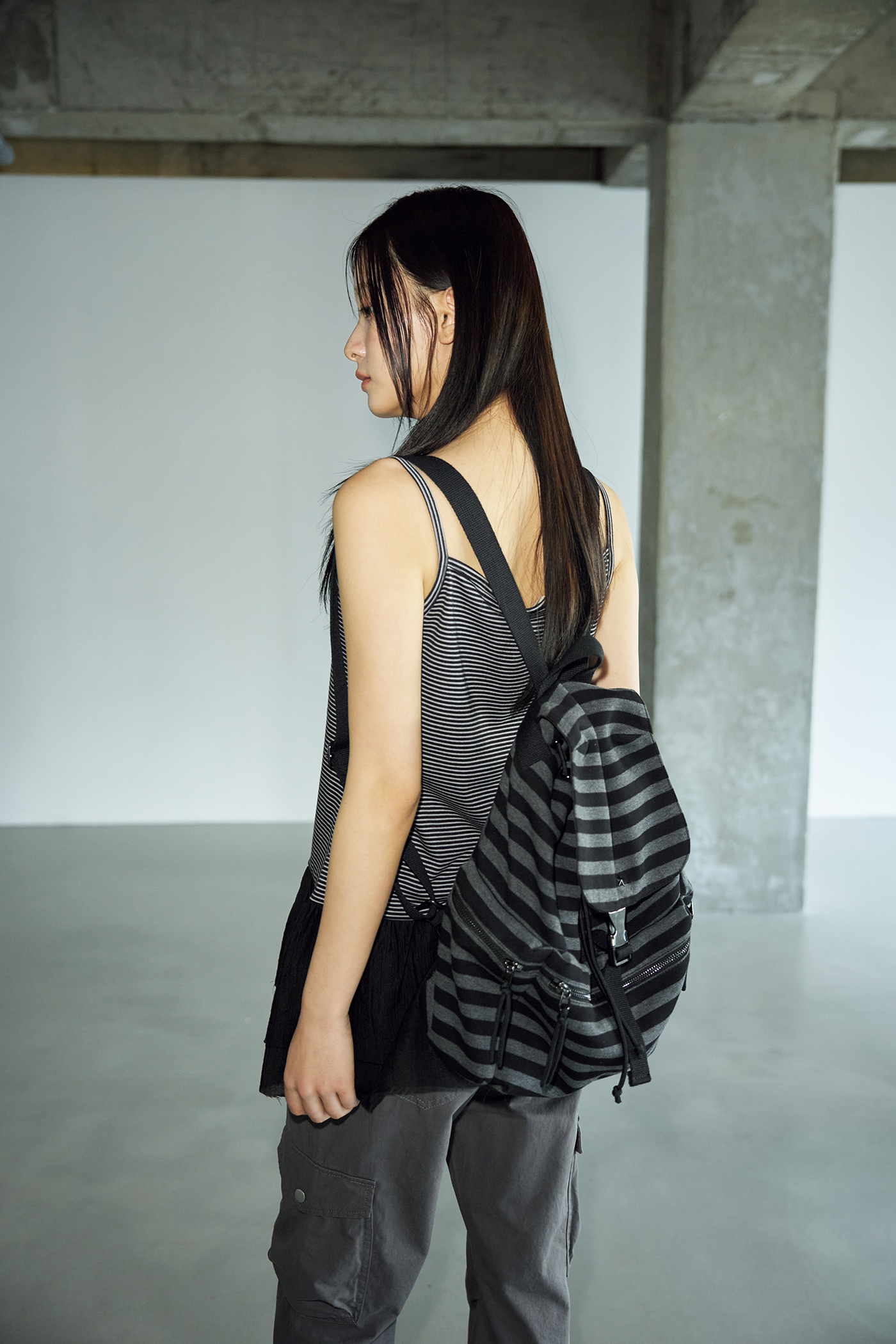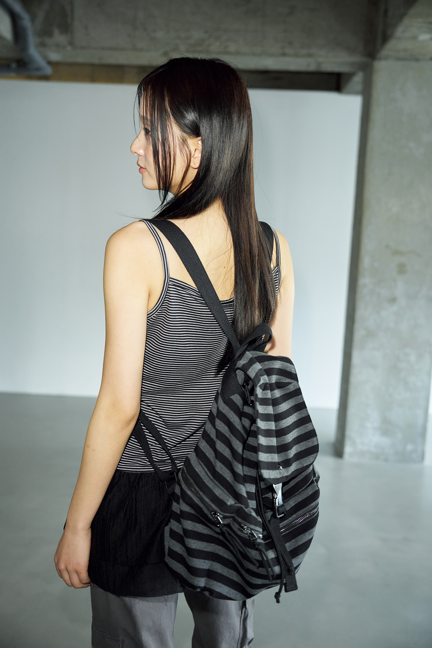 - 그레이와 블랙의 스트라이프 조합은 어떤 스타일에도 잘 어울려 다양한 룩에 쉽게 매치할 수 있는 아이템입니다.