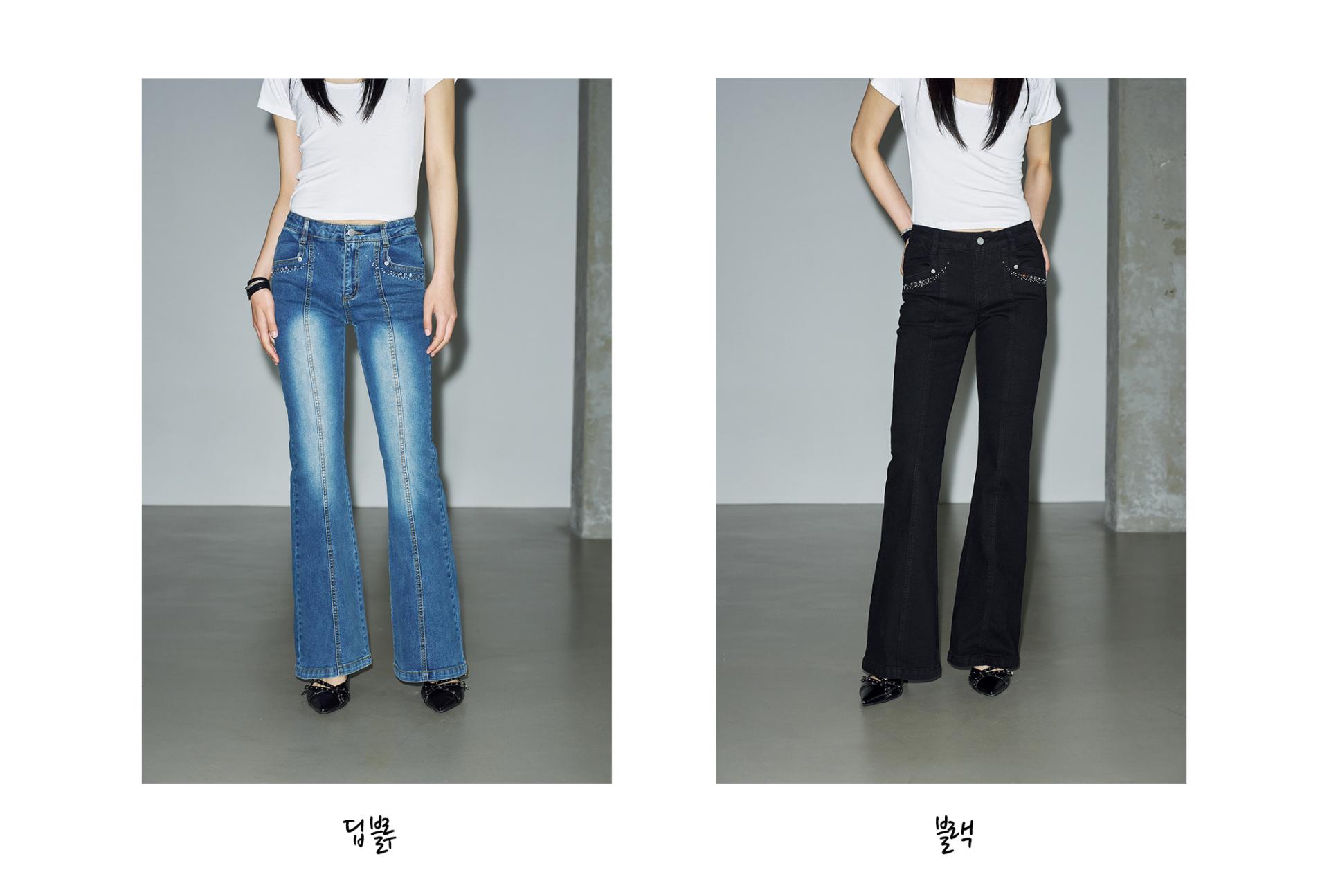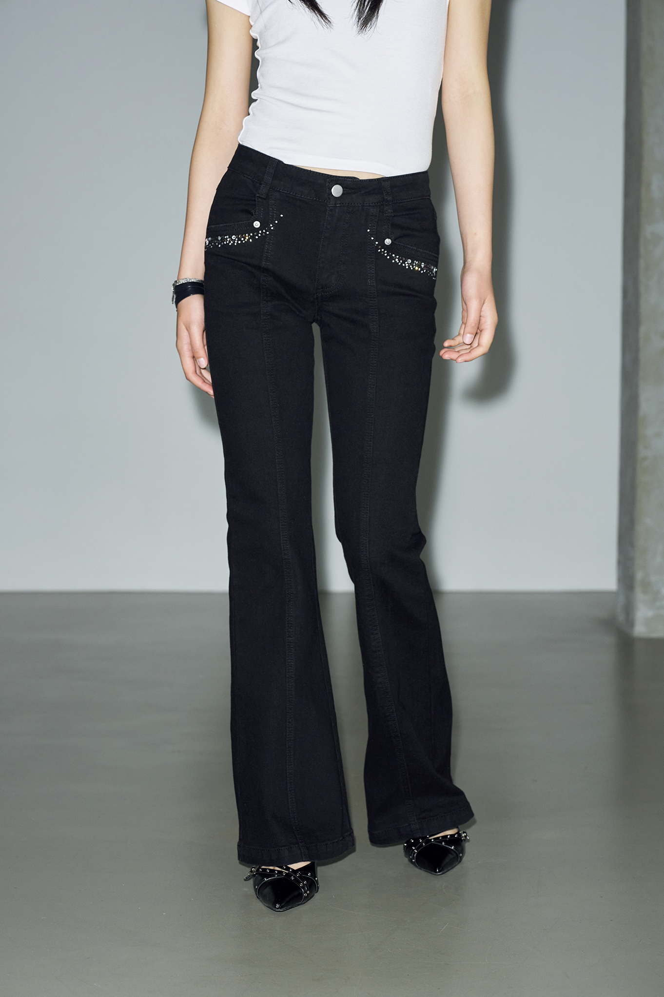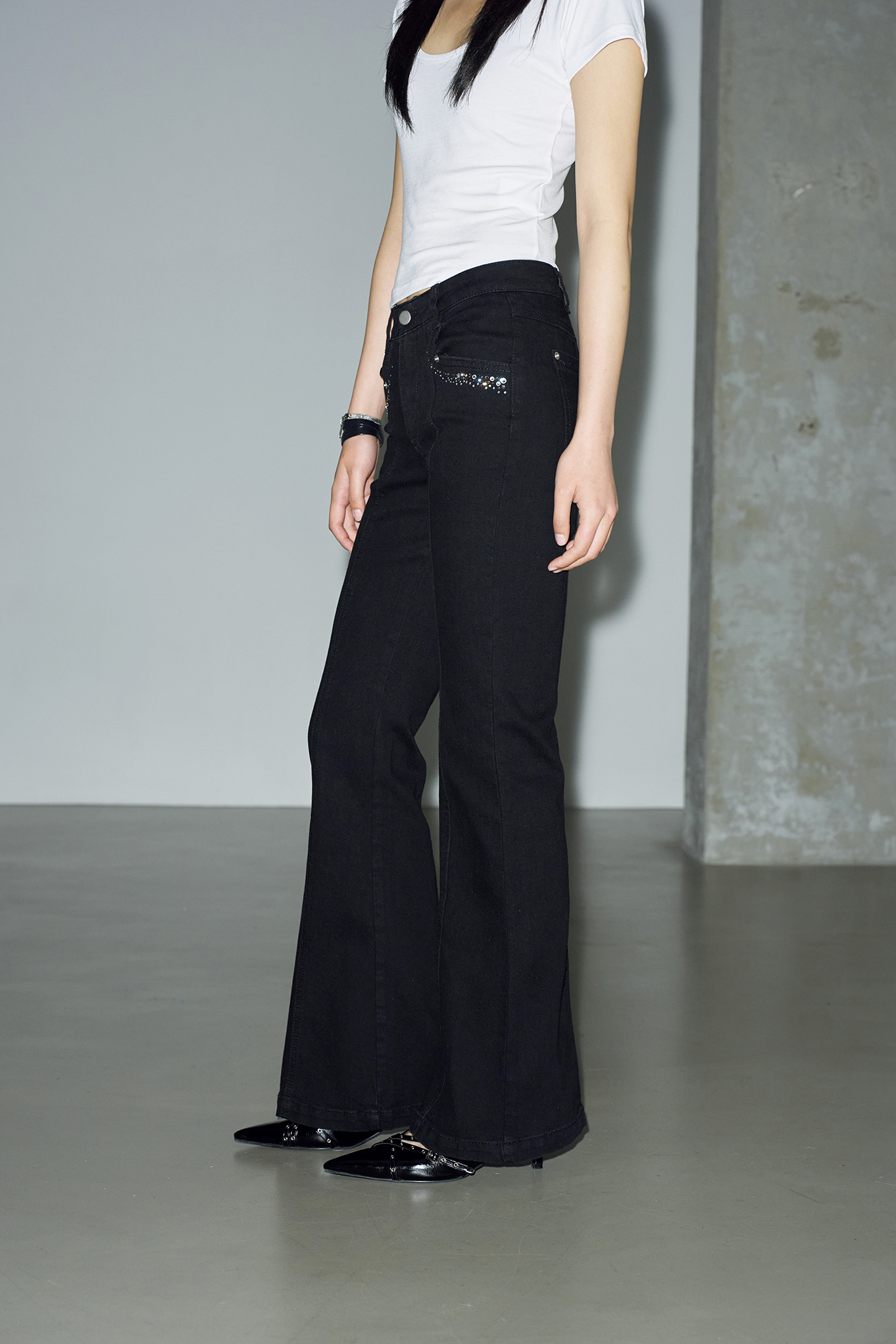 - 기존 블랙 데님 팬츠 프런트 포켓에 큐빅 디자인을 추가했습니다.