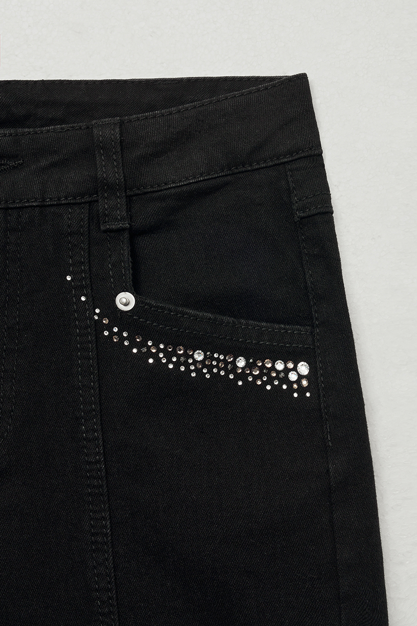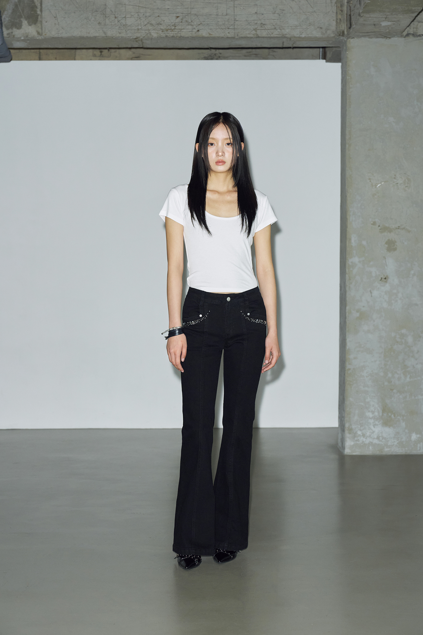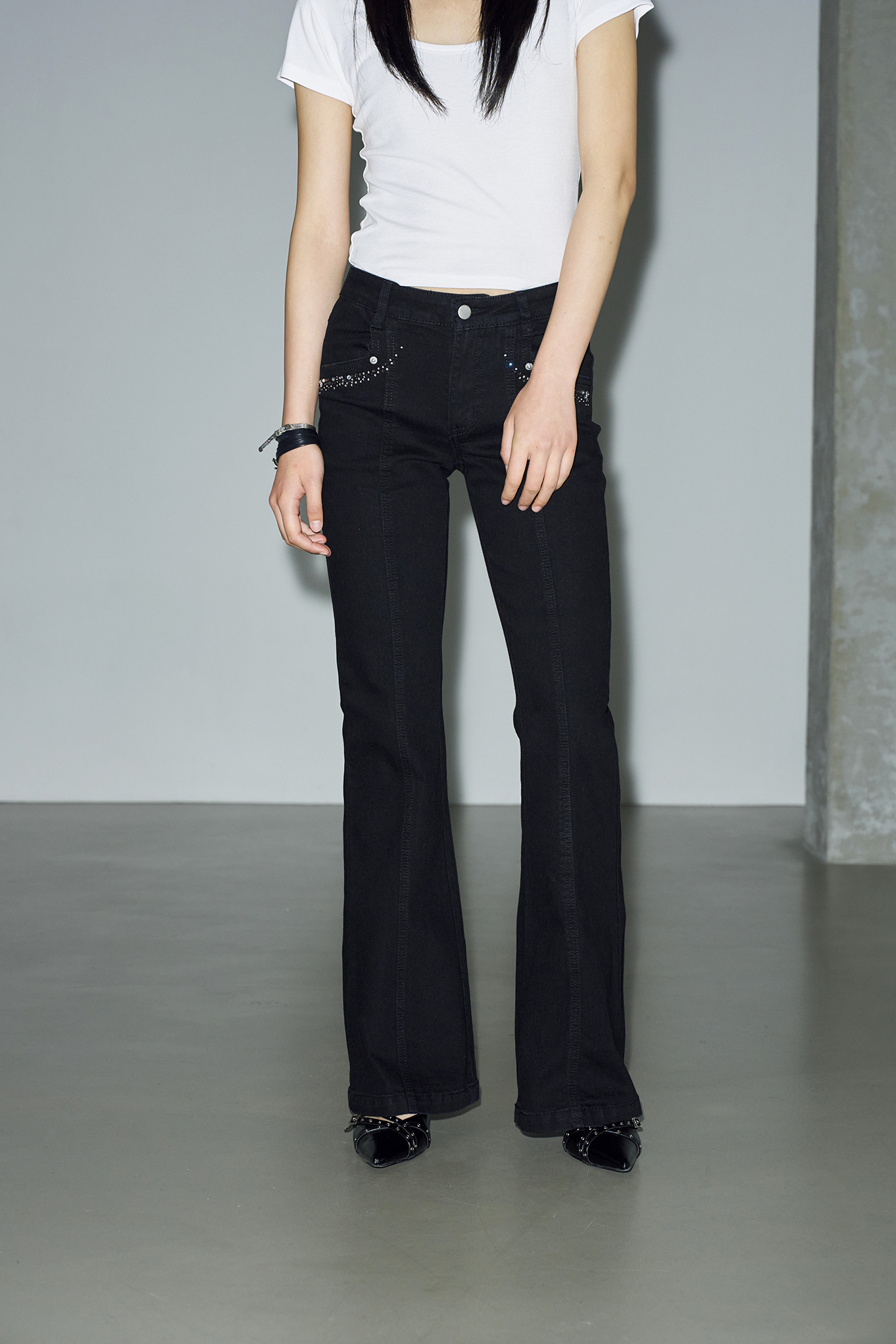 - 기존 블랙 데님 팬츠 프런트 포켓에 큐빅 디자인을 추가했습니다.