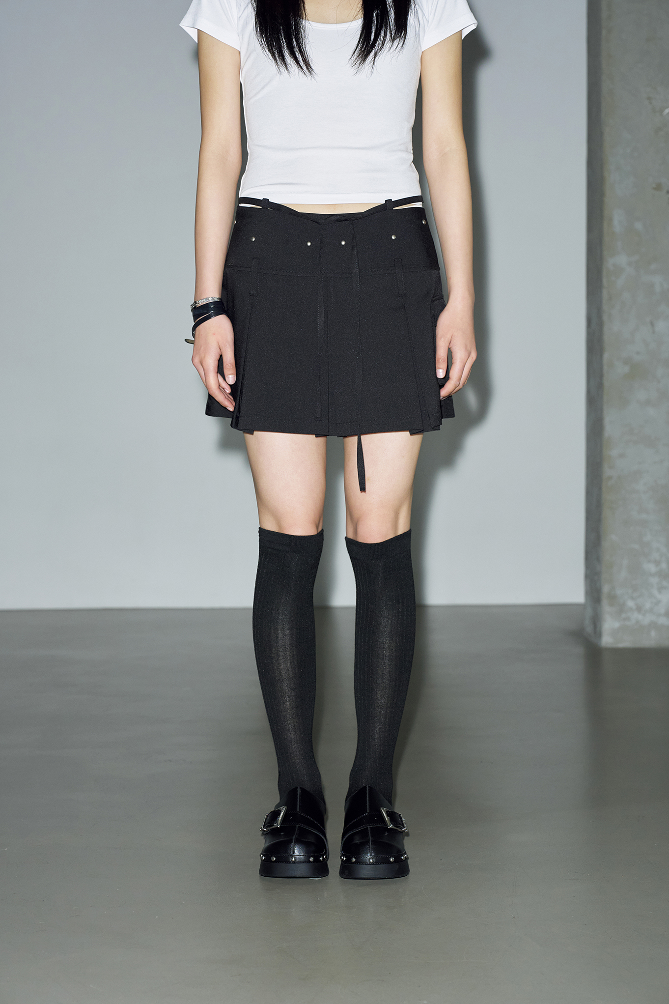 스터드 웨이스트 플리츠 스커트 [블랙]