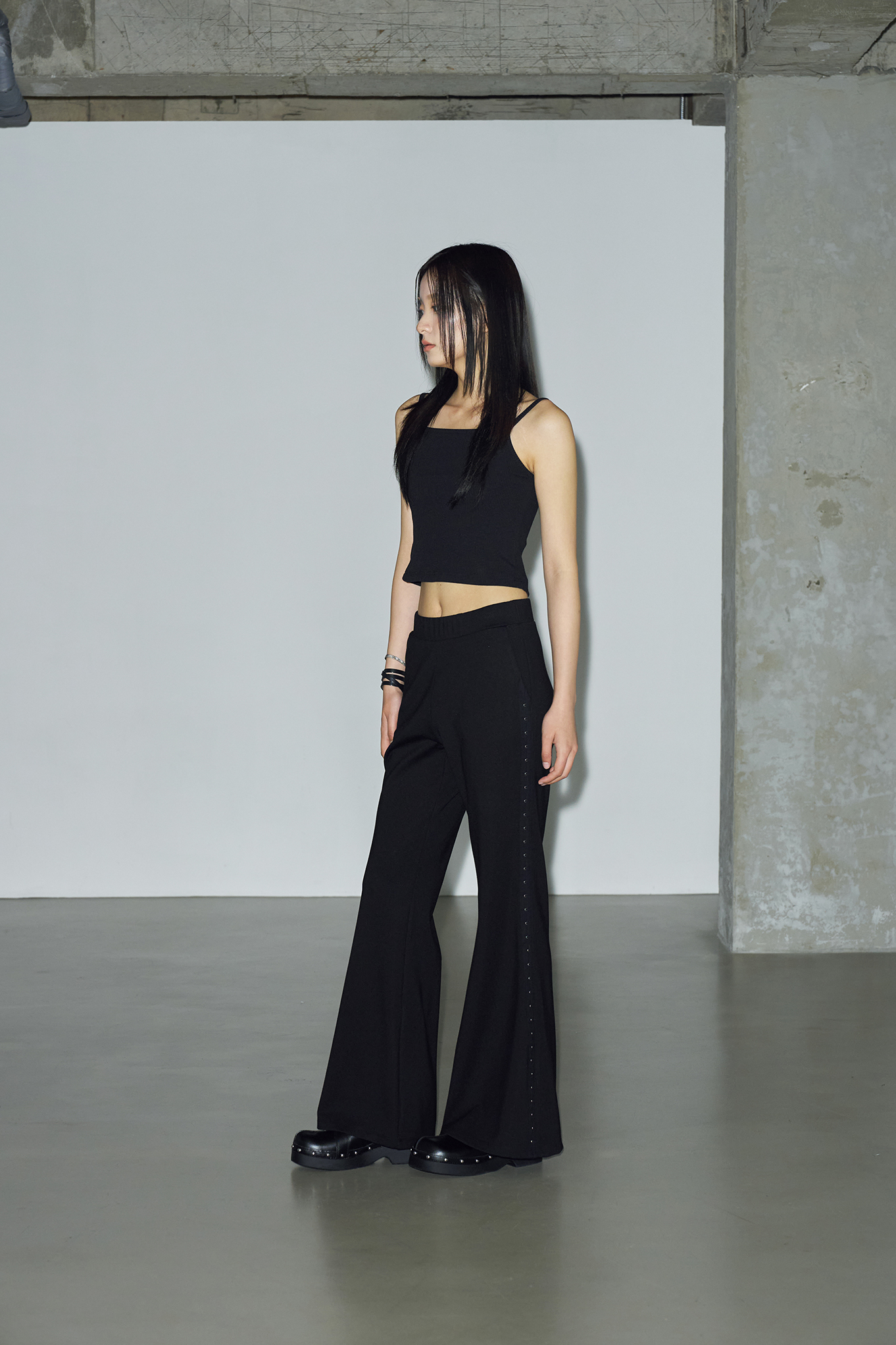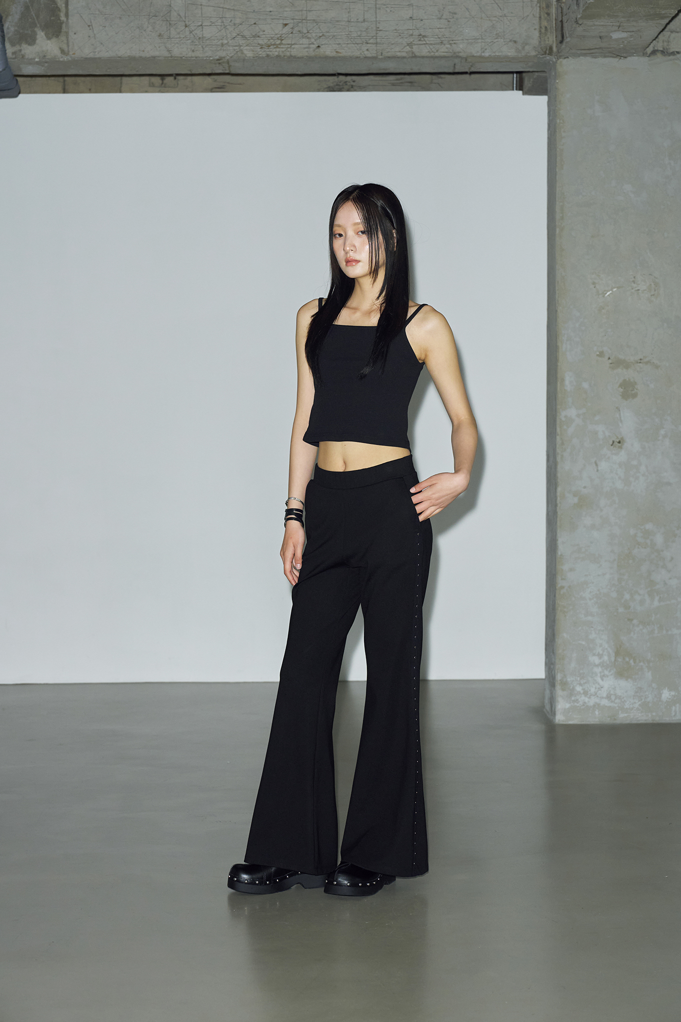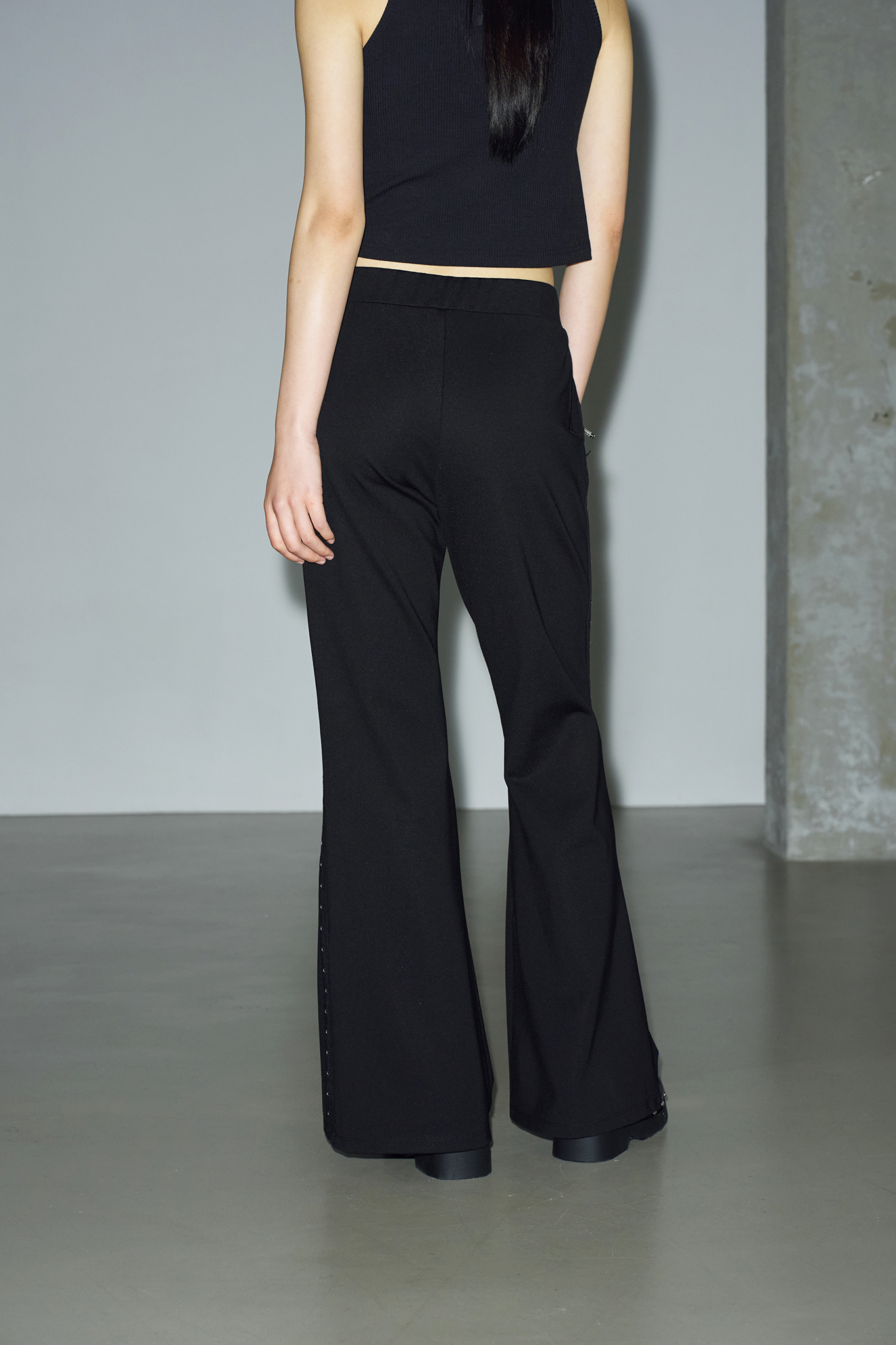 훅 앤 아이 사이드 부츠컷 스판 팬츠 [블랙]