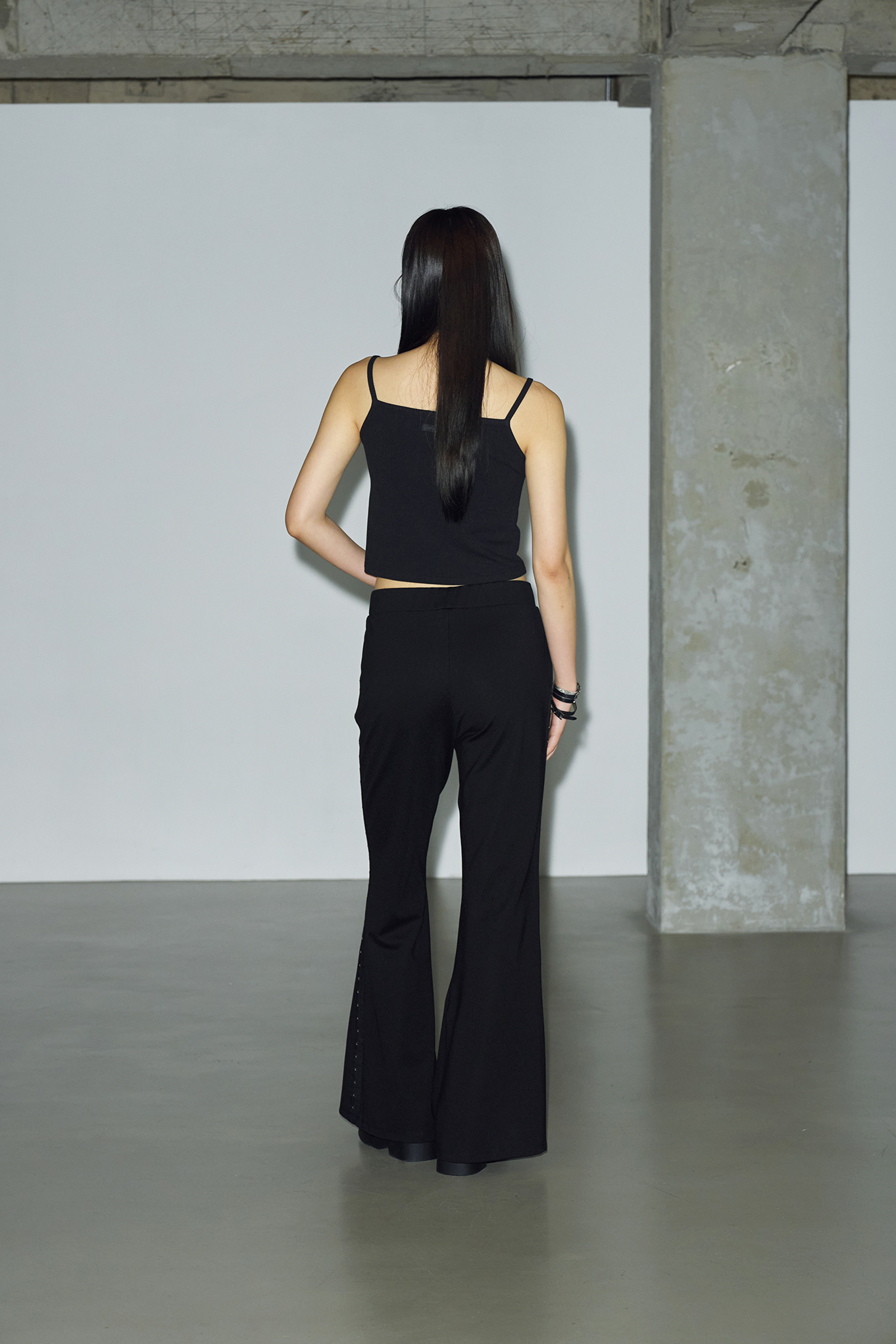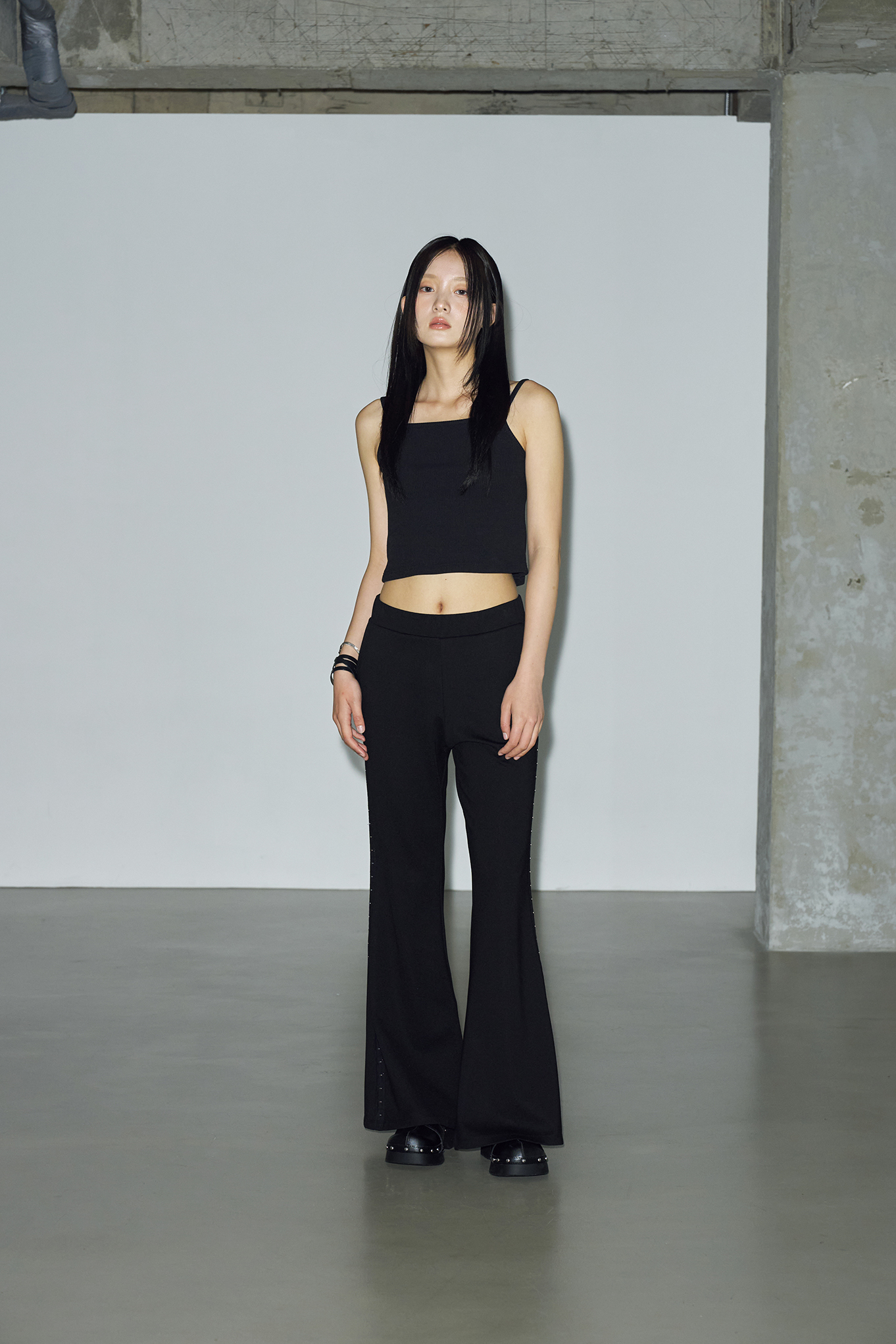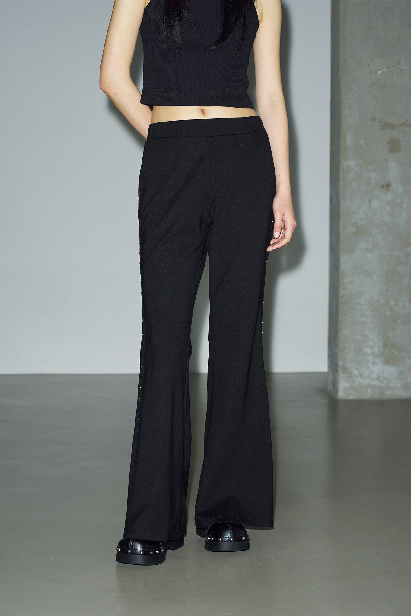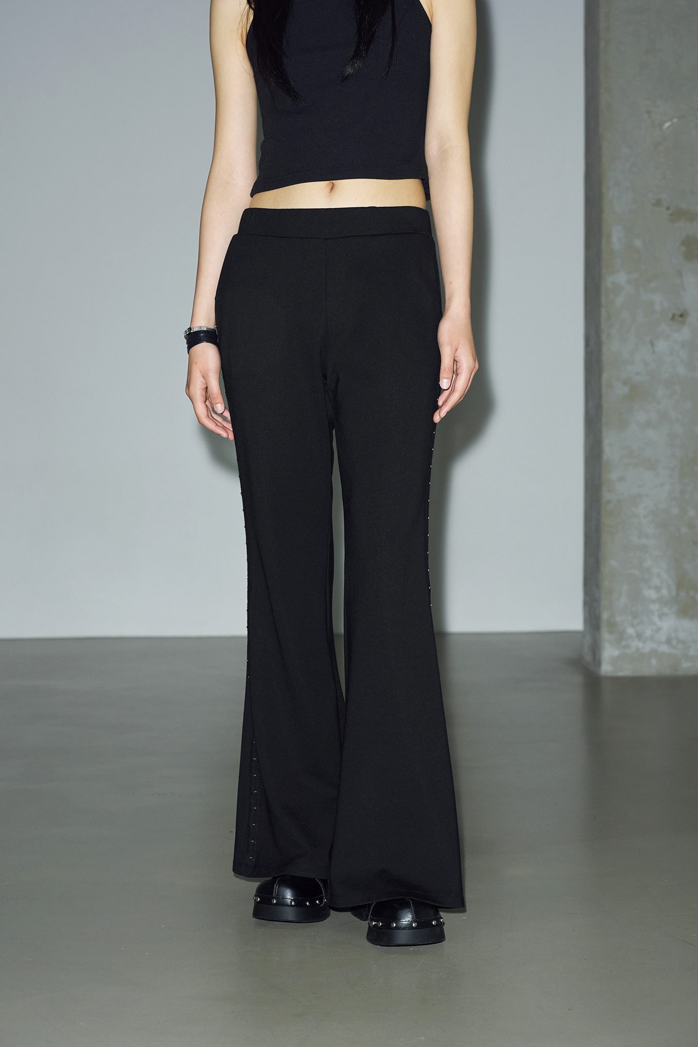 훅 앤 아이 사이드 부츠컷 스판 팬츠 [블랙]