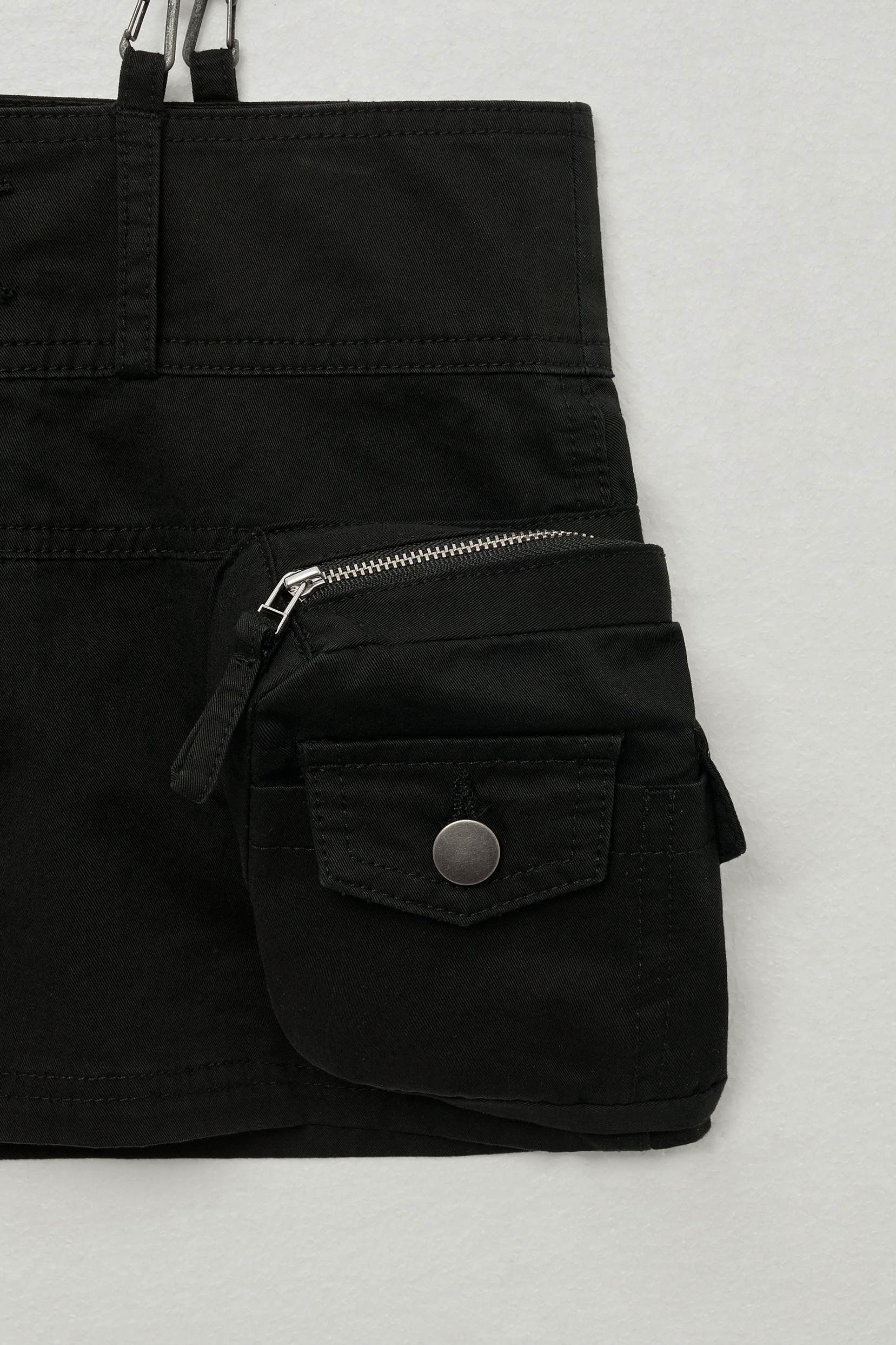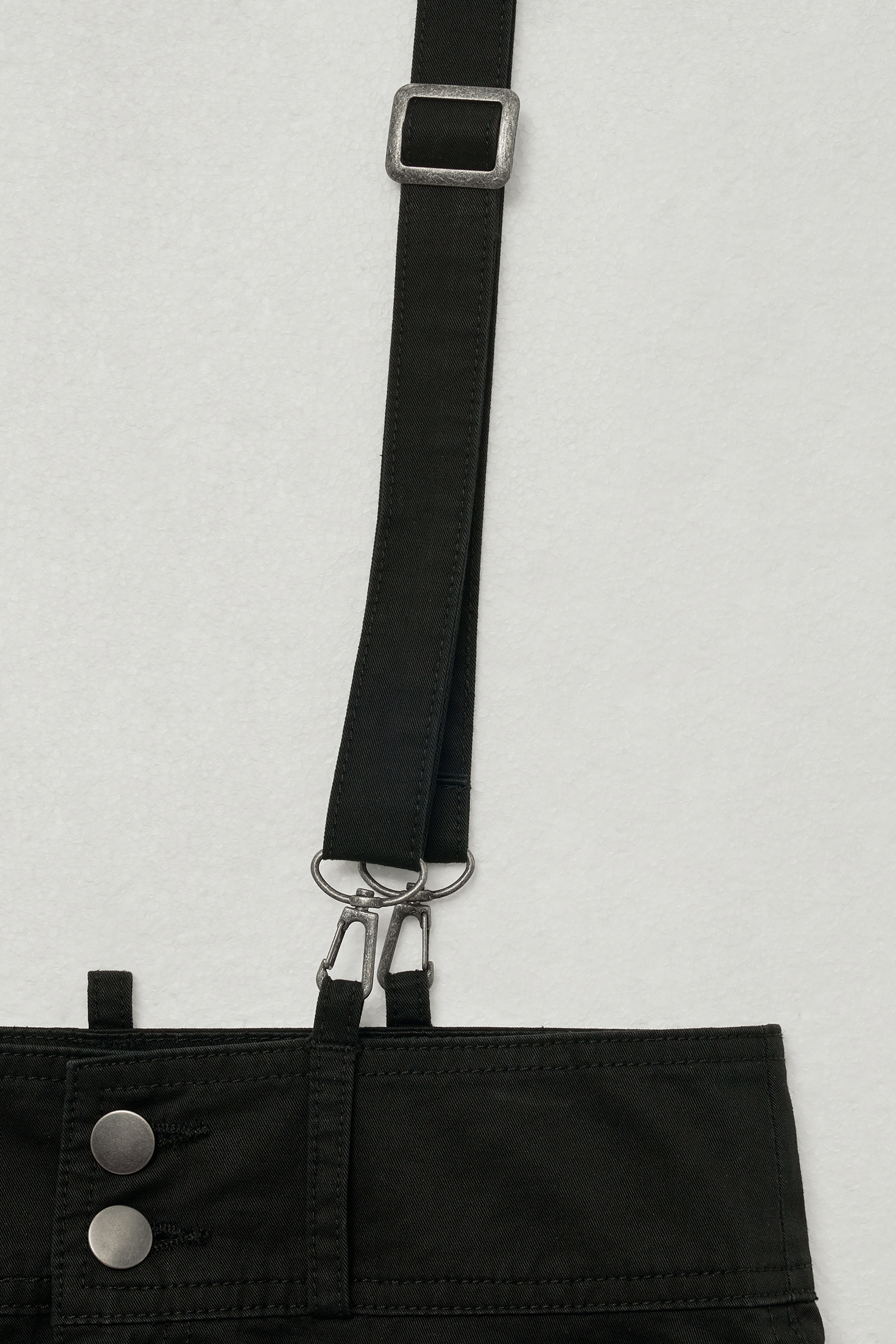 - 숏한 마이크로 기장과 탈부착 가능한 서스펜더가 포인트인 유니크한 스커트입니다.