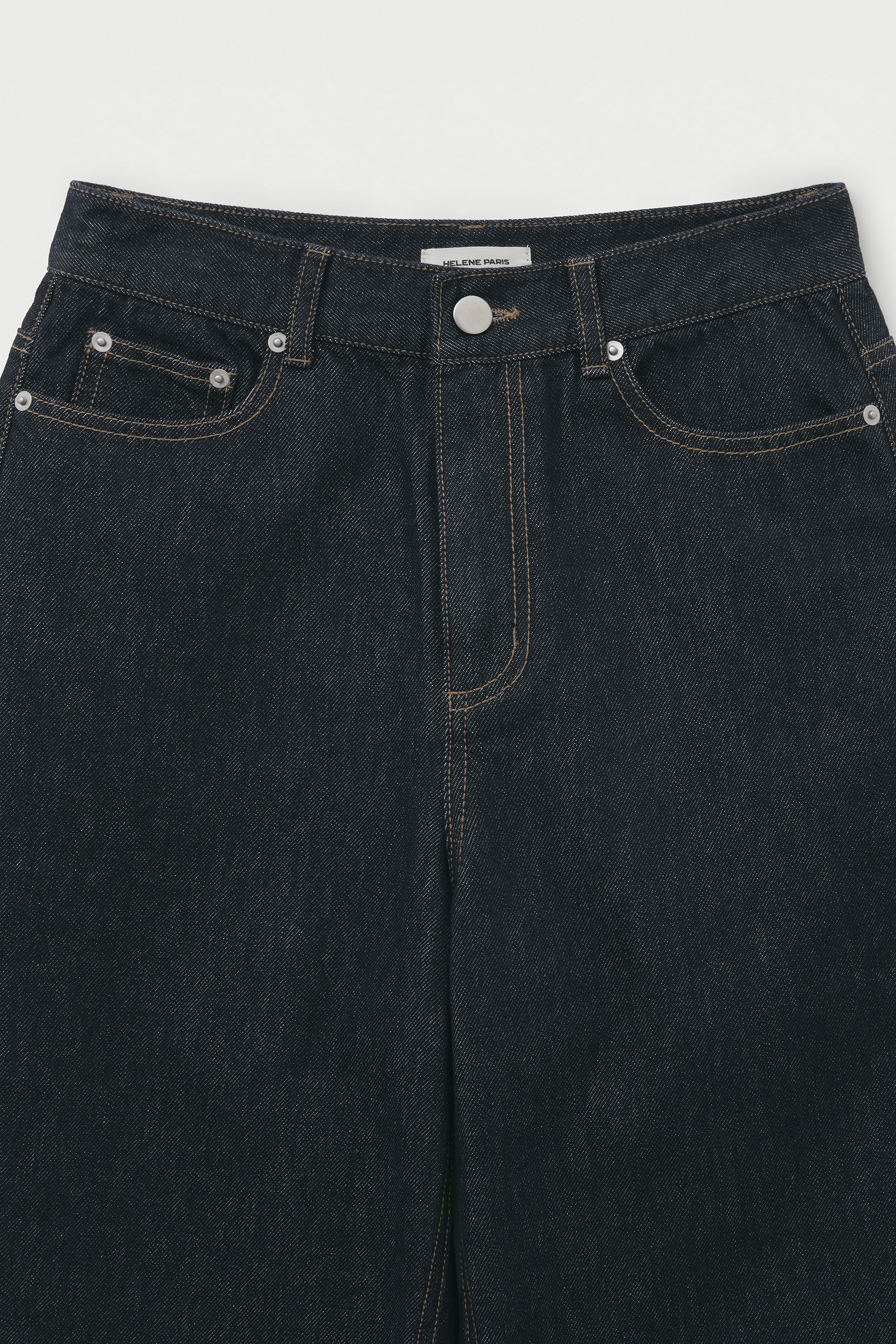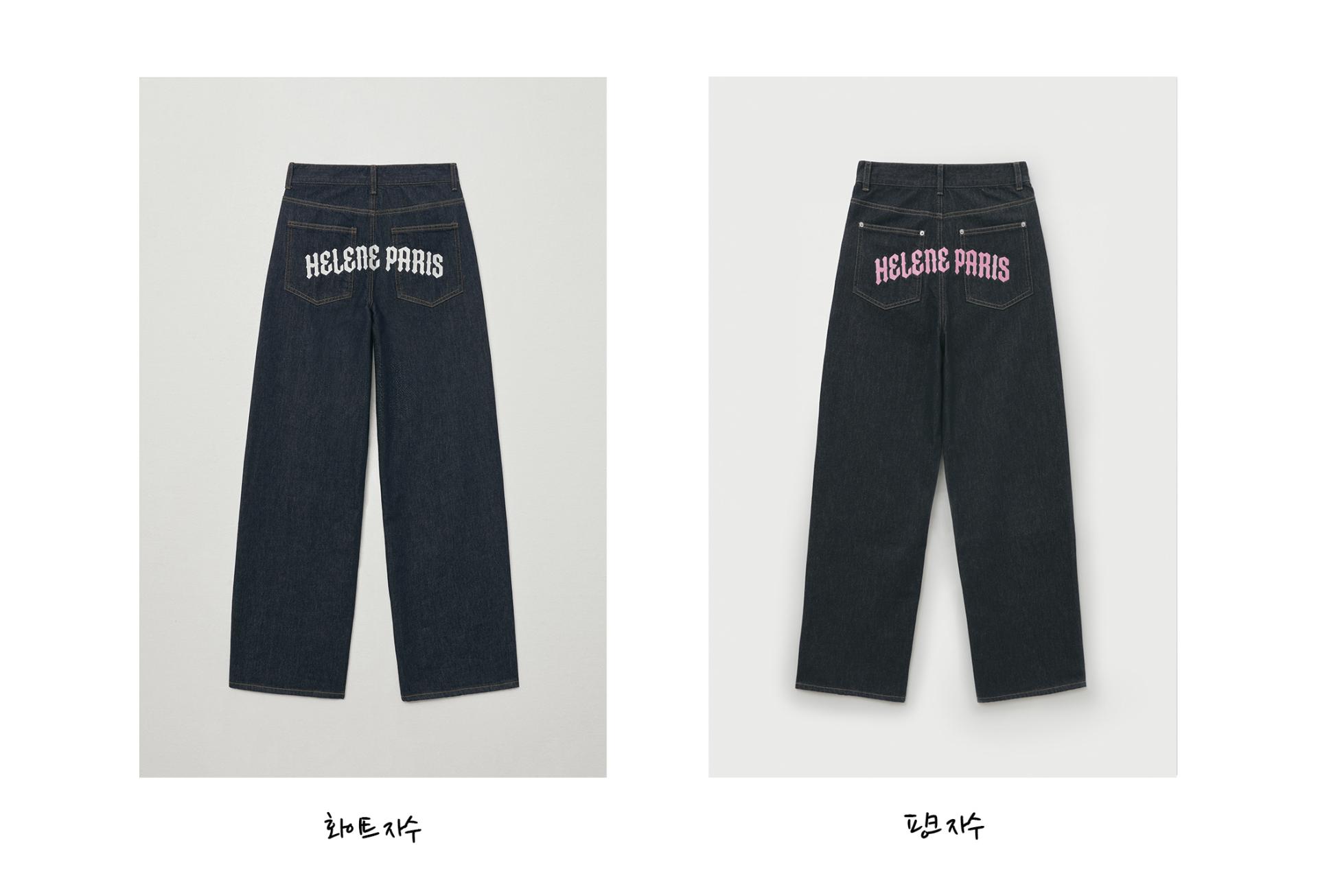 - 다리를 자연스럽게 커버해주는 와이드 핏으로 트렌디한 무드를 연출하며, 배색 스티치 디테일이 감각적인 포인트를 더해줍니다.