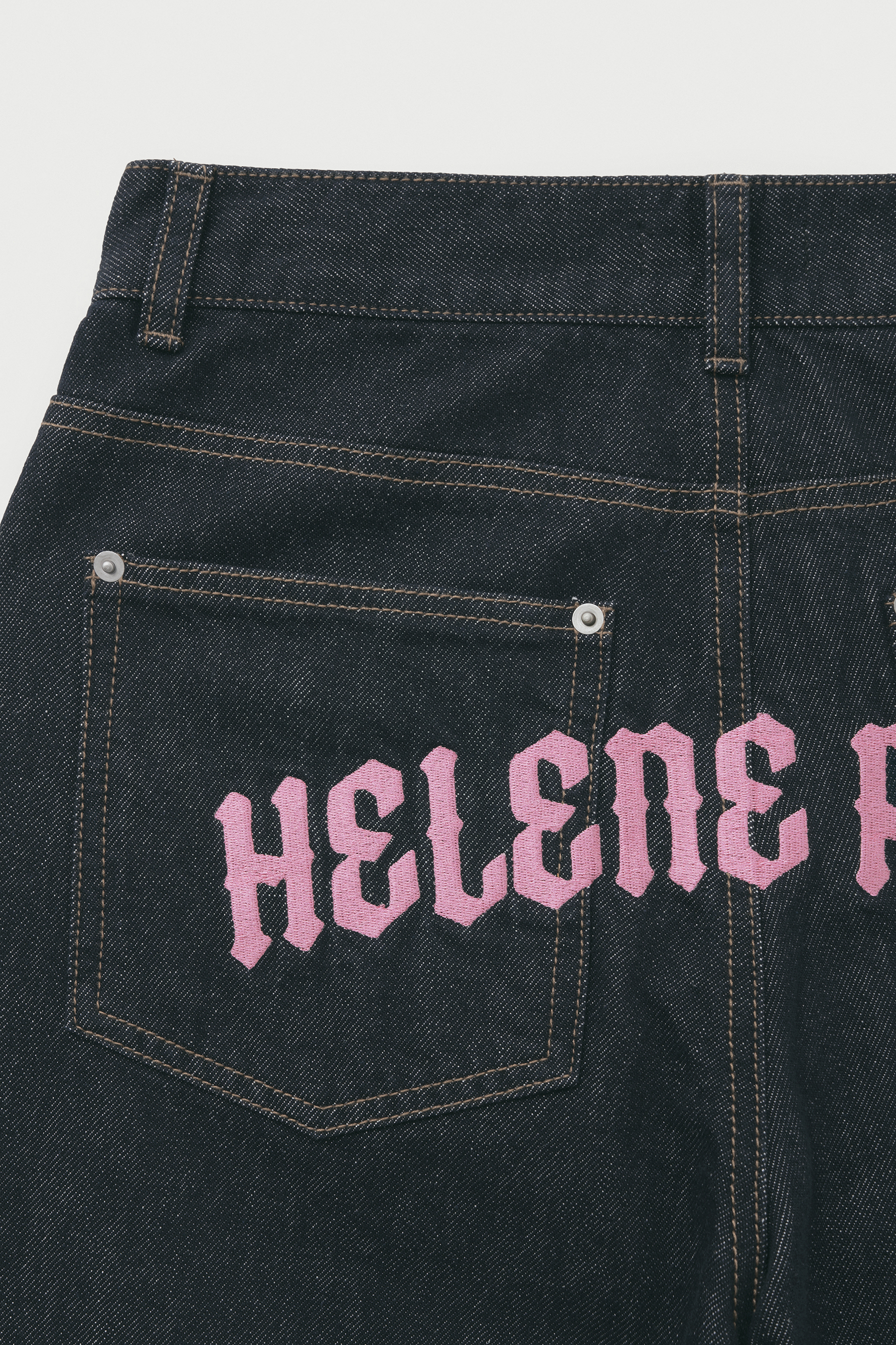 로고 니들 포인트 와이드 데님 팬츠 [니들 핑크]