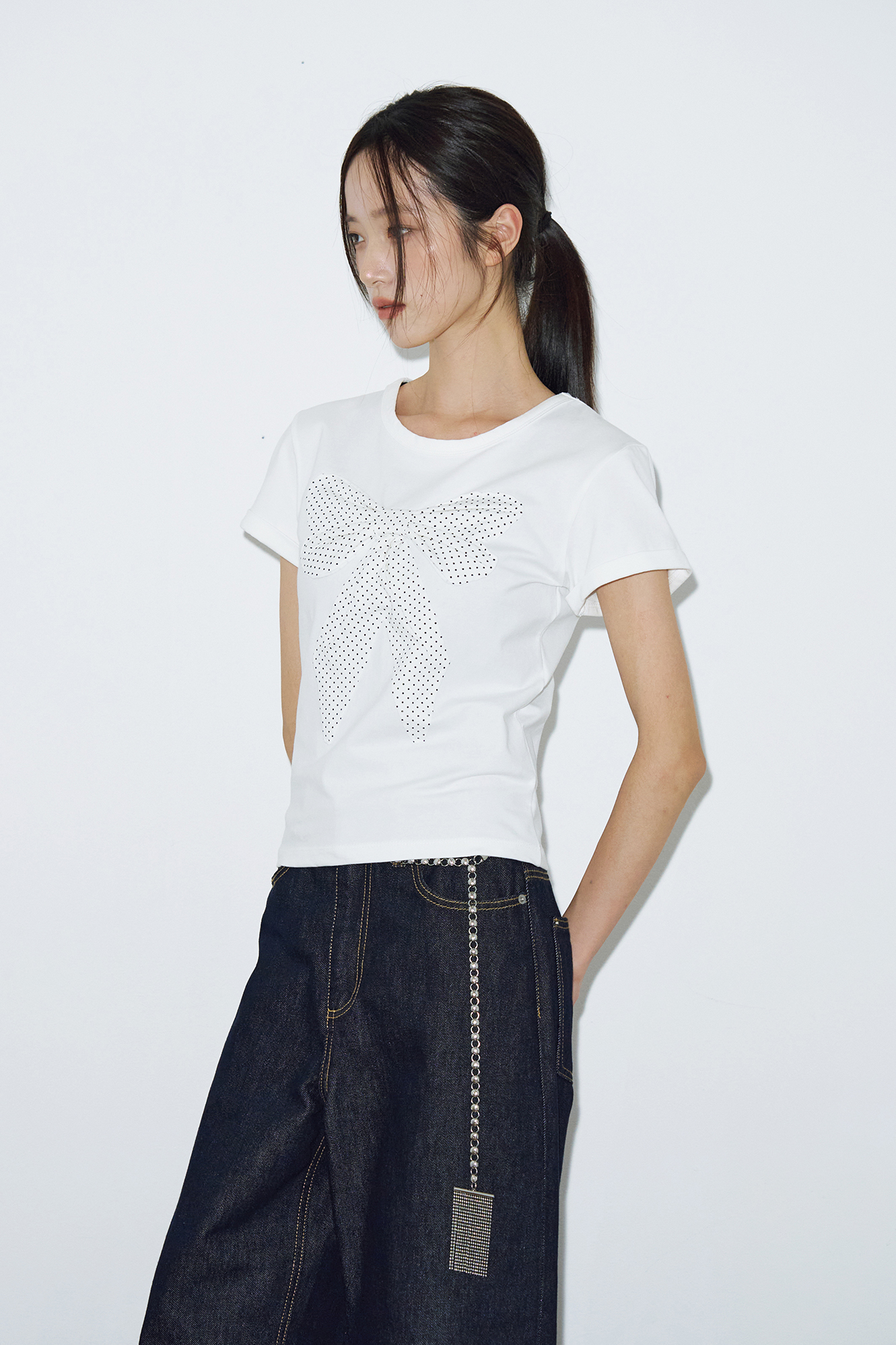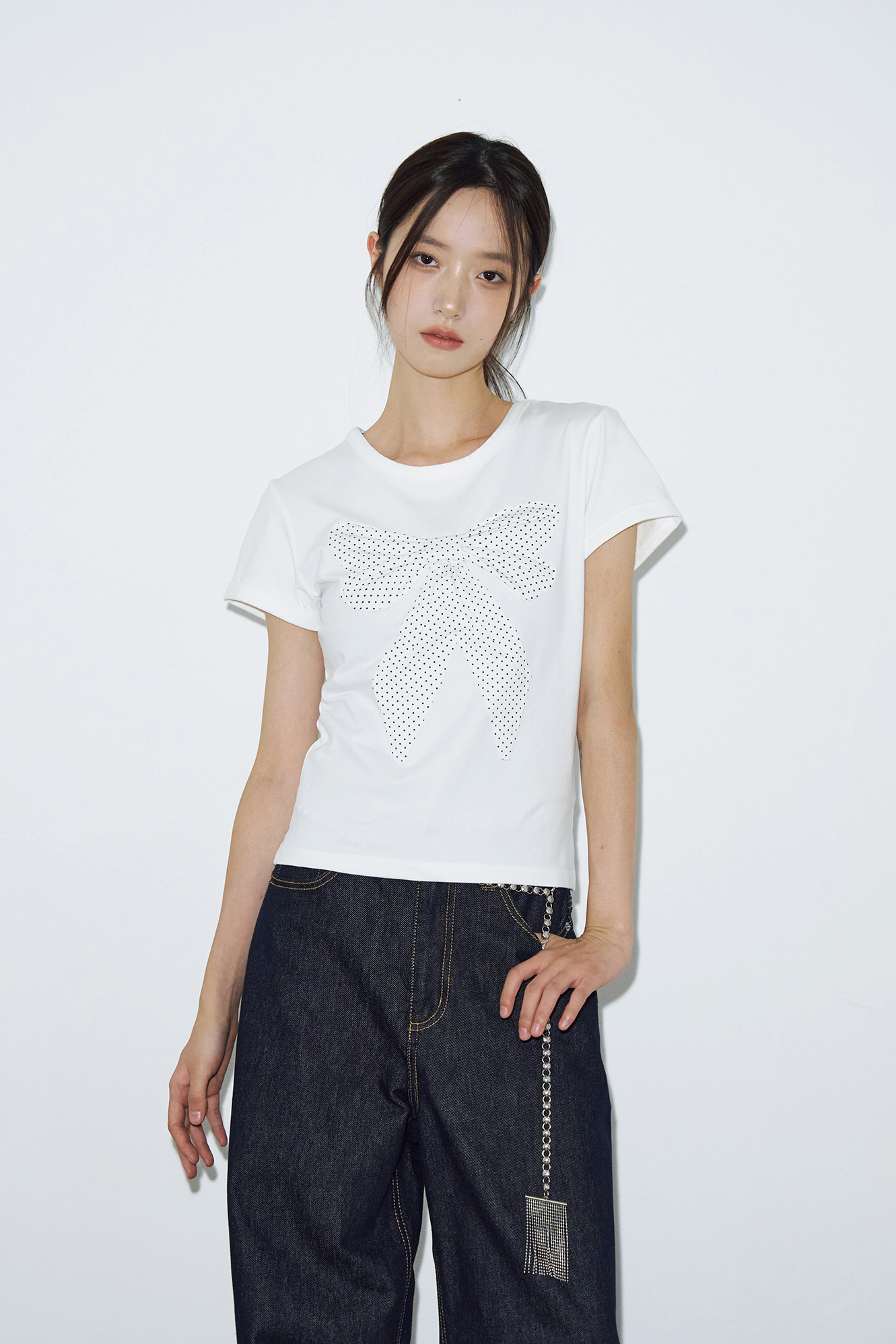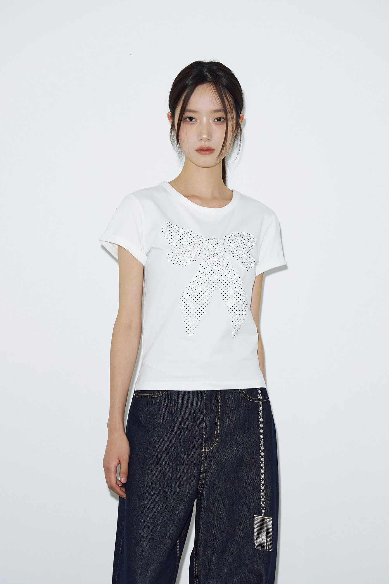 - 페미닌한 리본 아플리케 디테일이 포인트인 하프 티셔츠입니다.