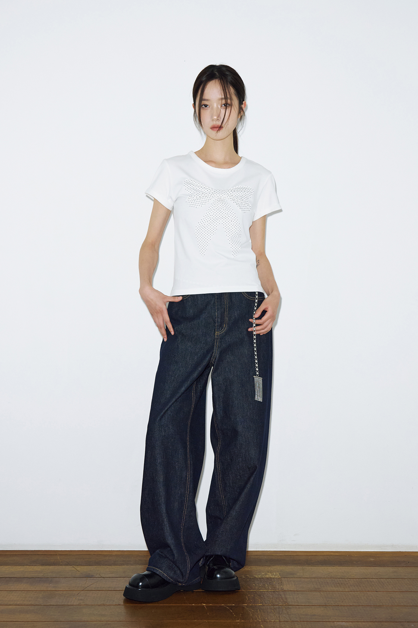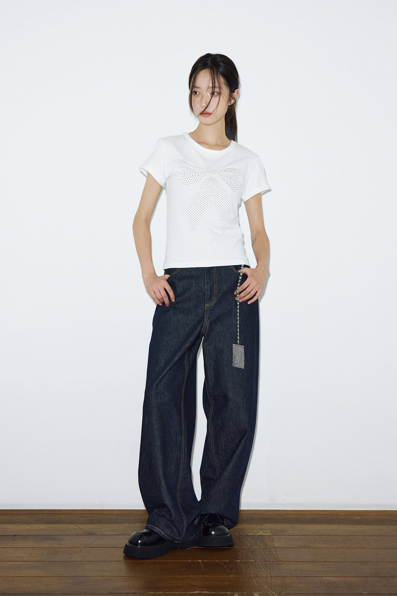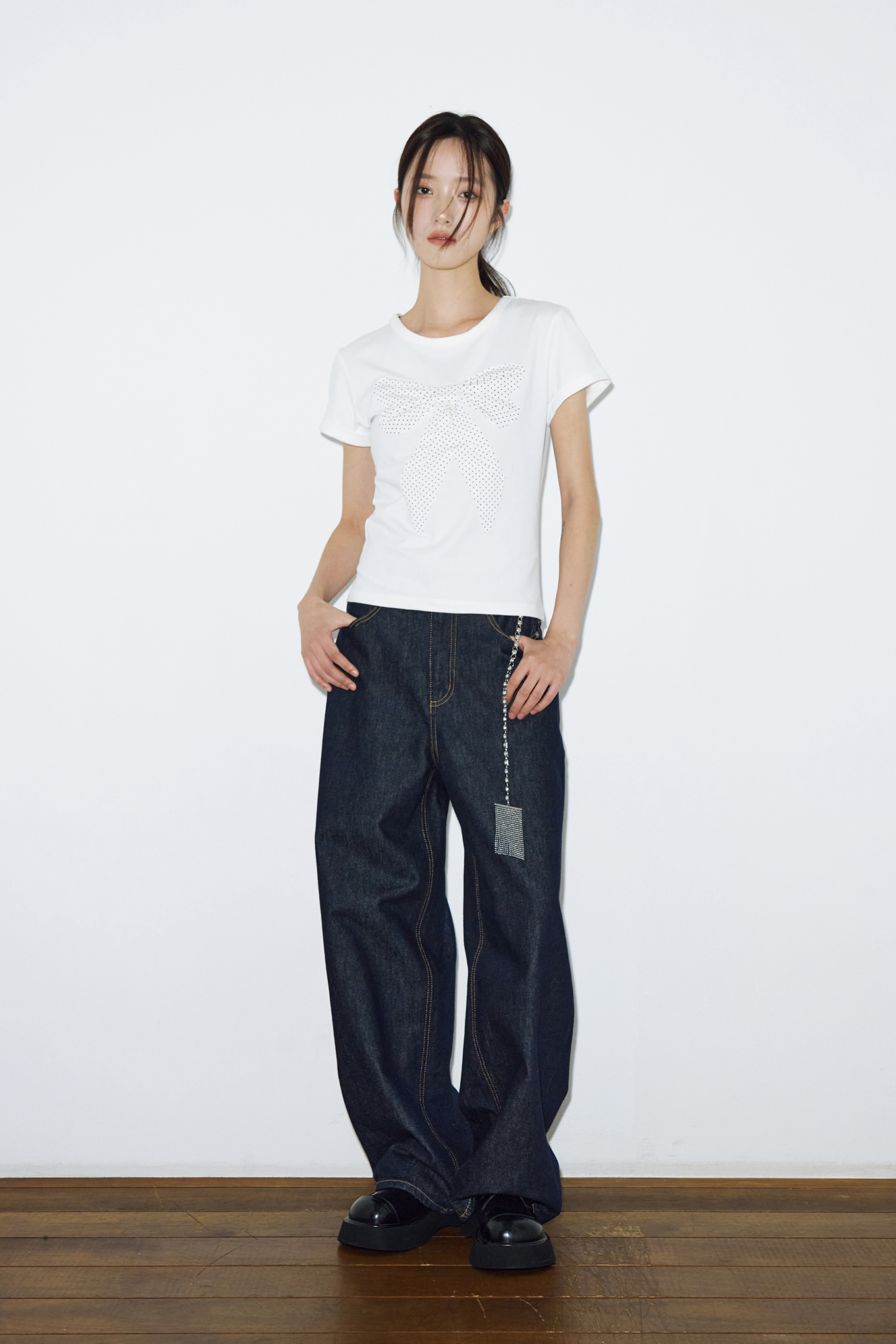 - 페미닌한 리본 아플리케 디테일이 포인트인 하프 티셔츠입니다.