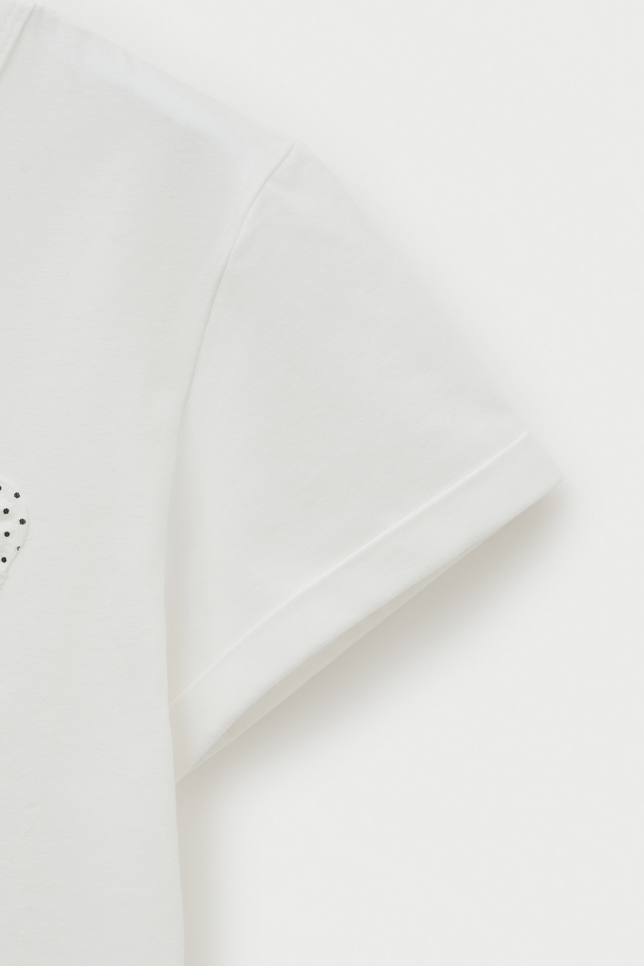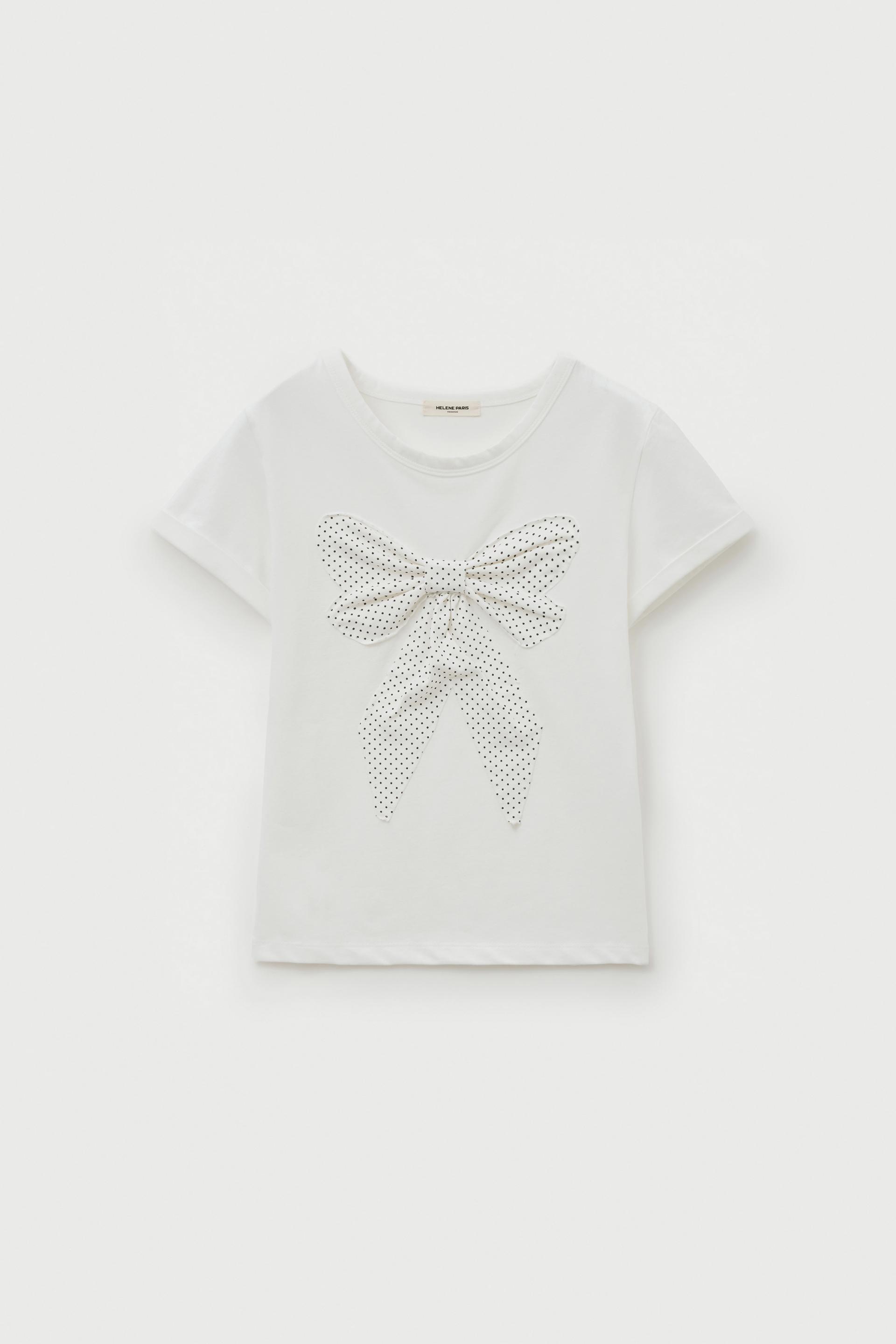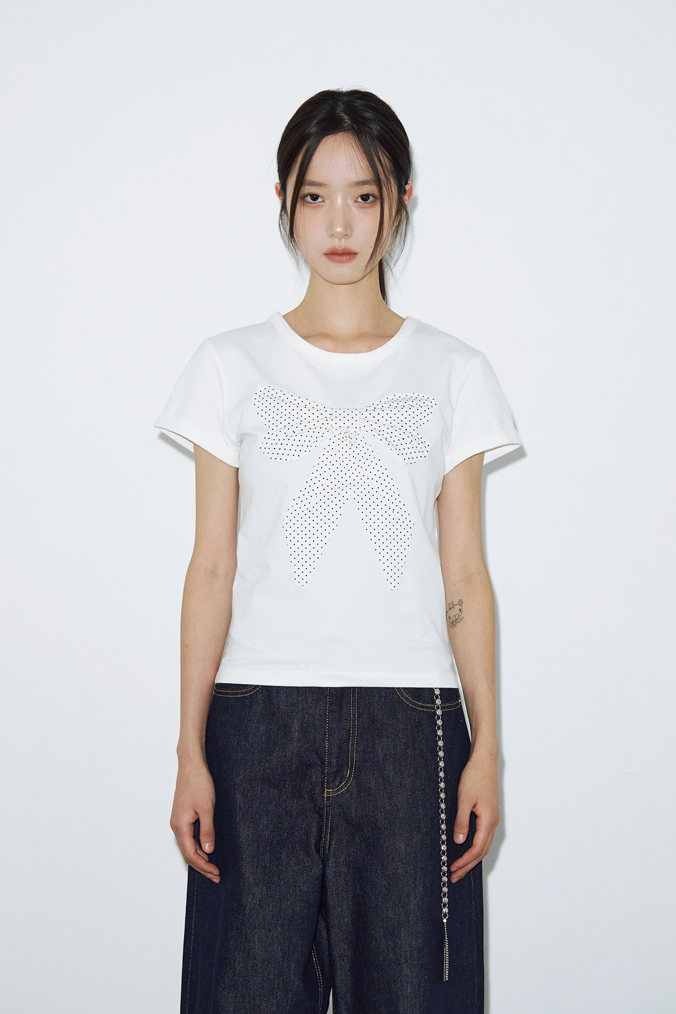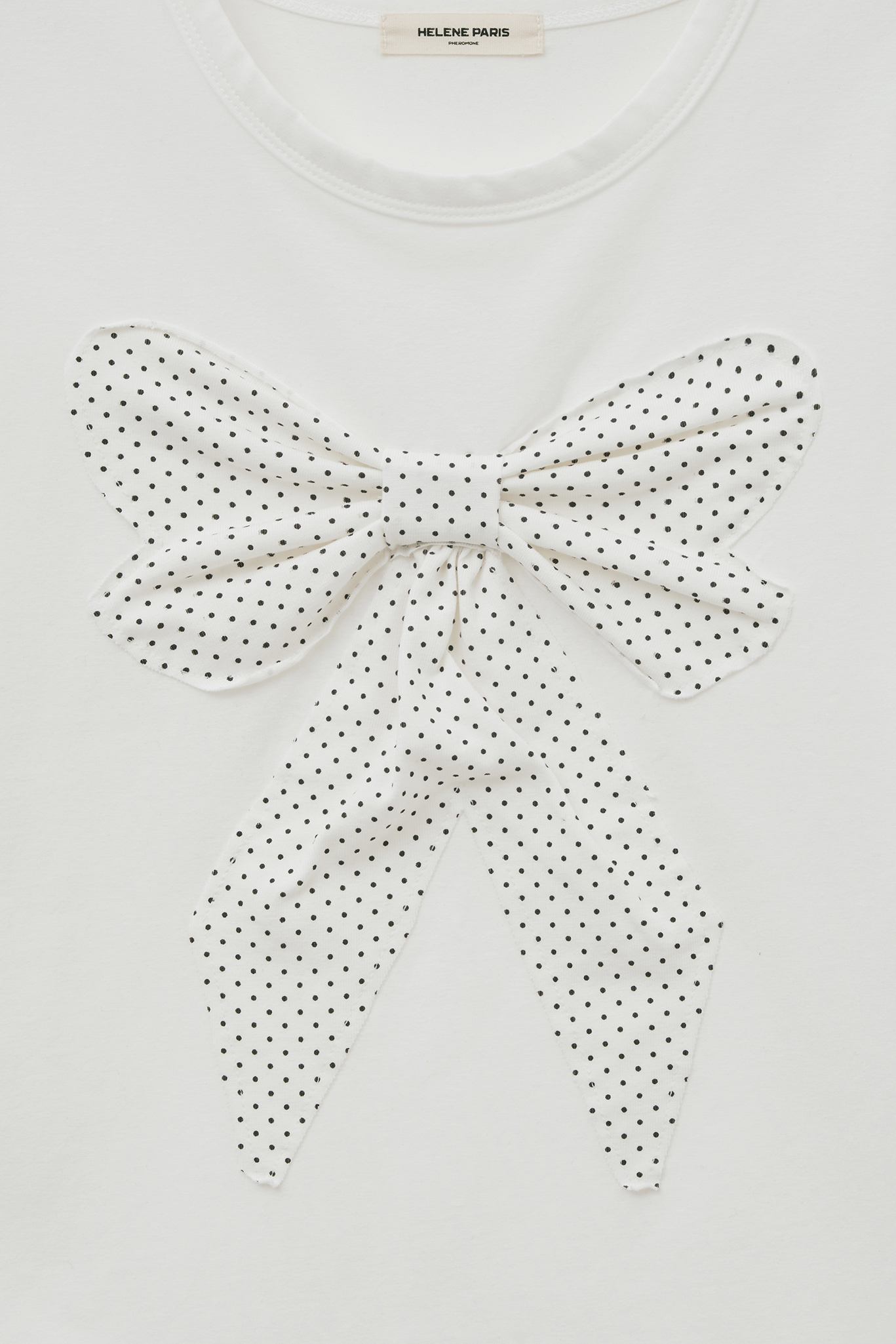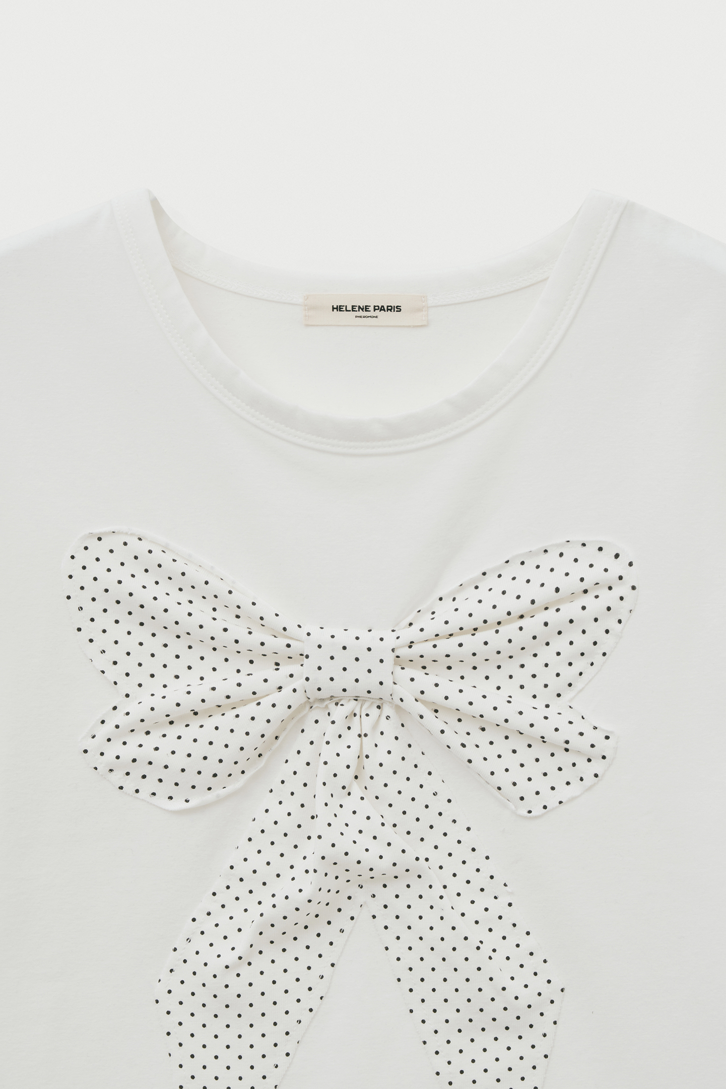 리본 아플리케 도트 하프 티셔츠 [아이보리]
