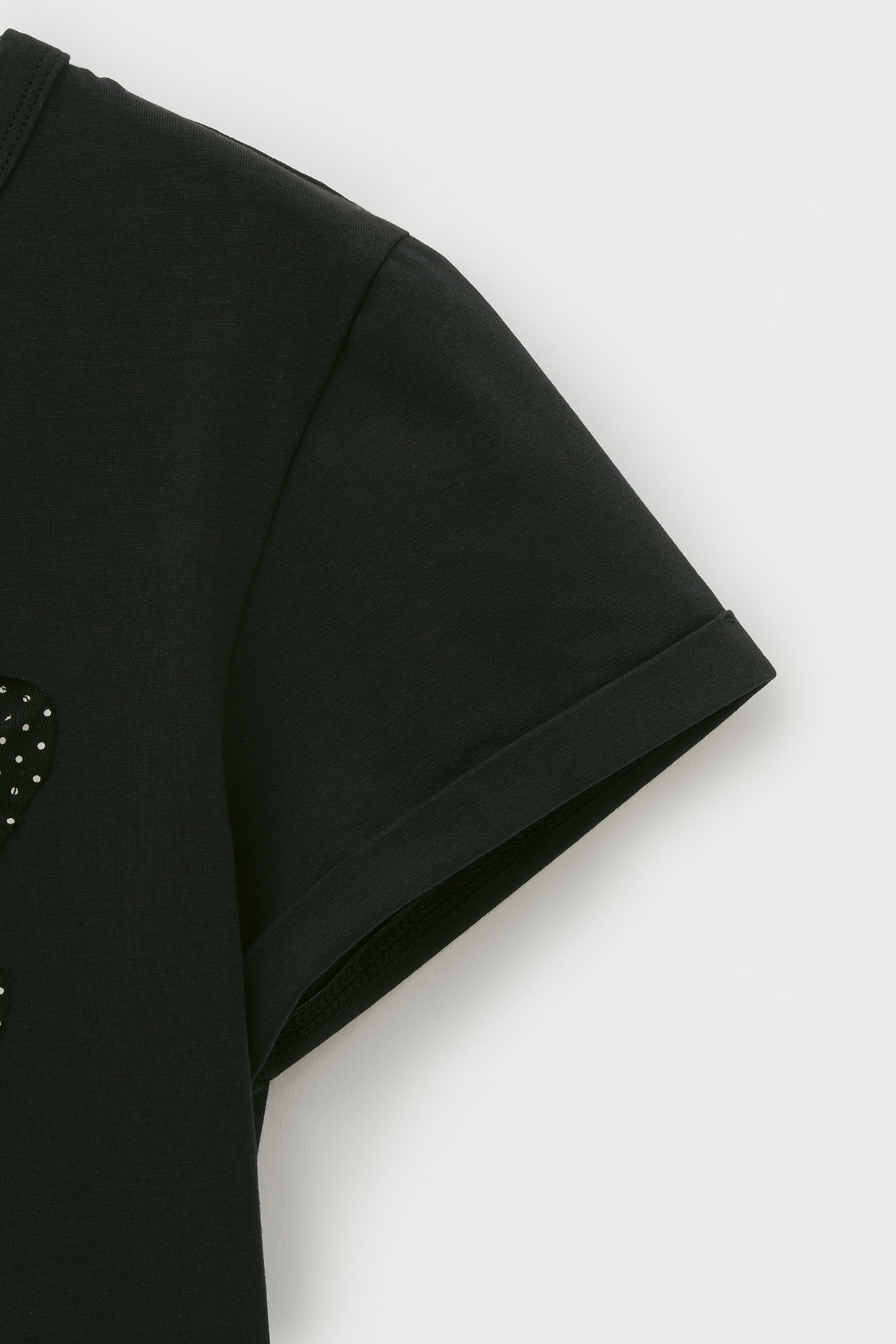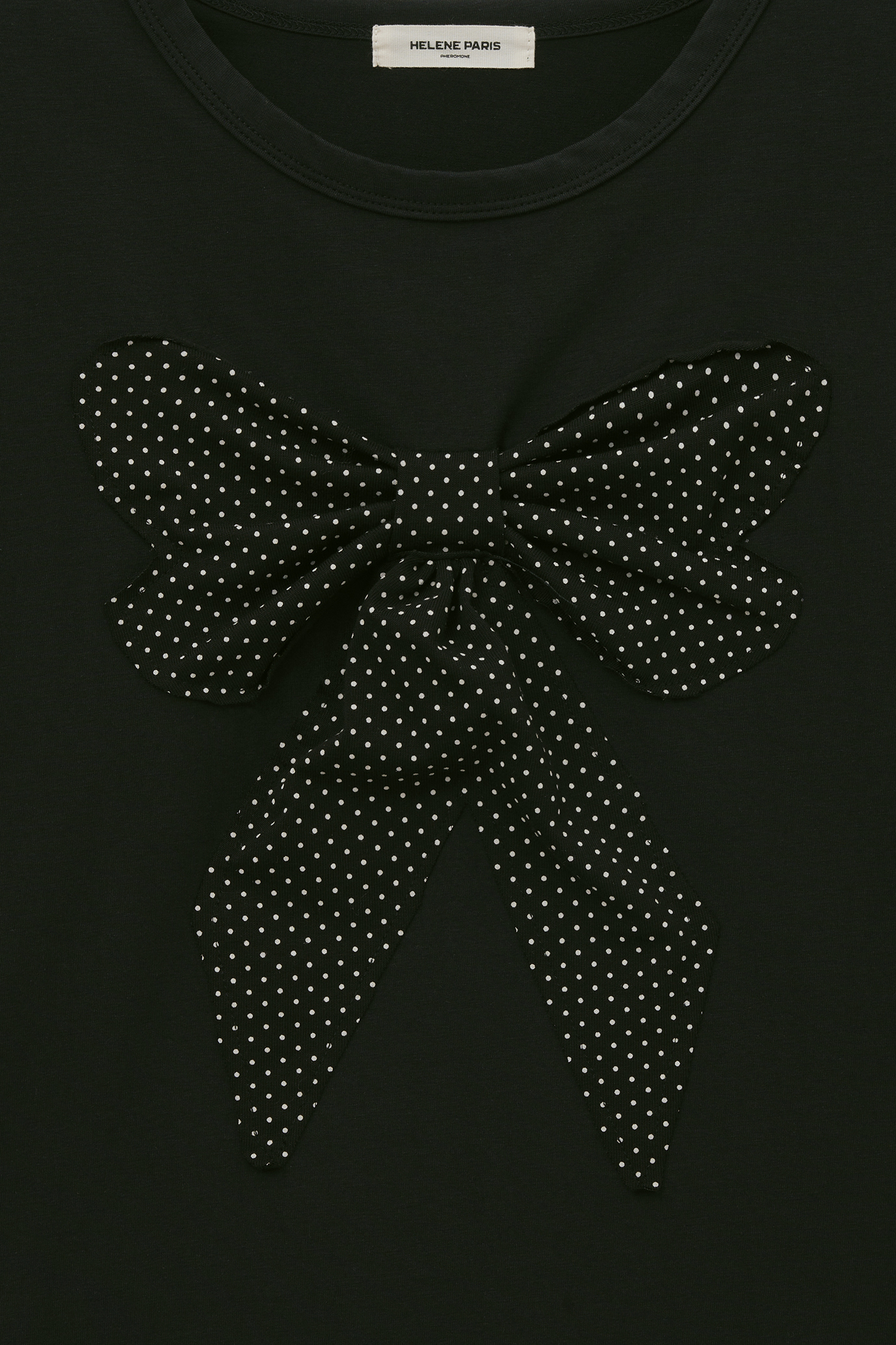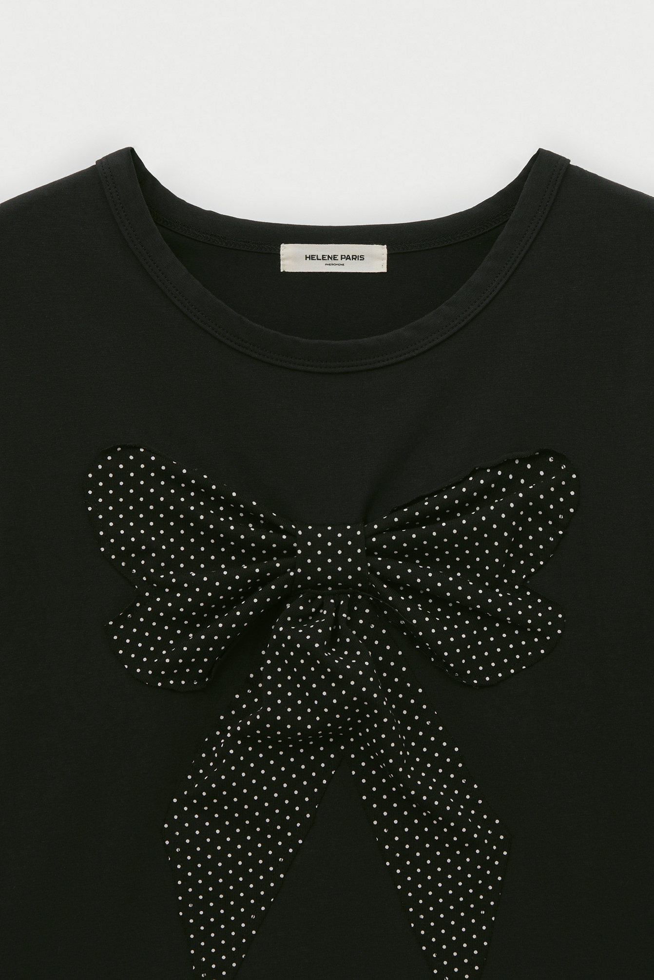 리본 아플리케 도트 하프 티셔츠 [블랙]