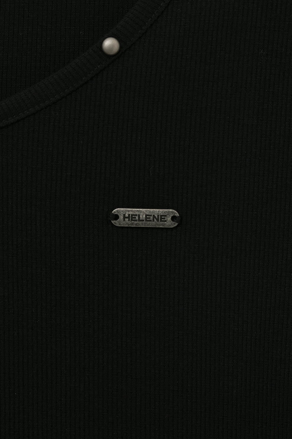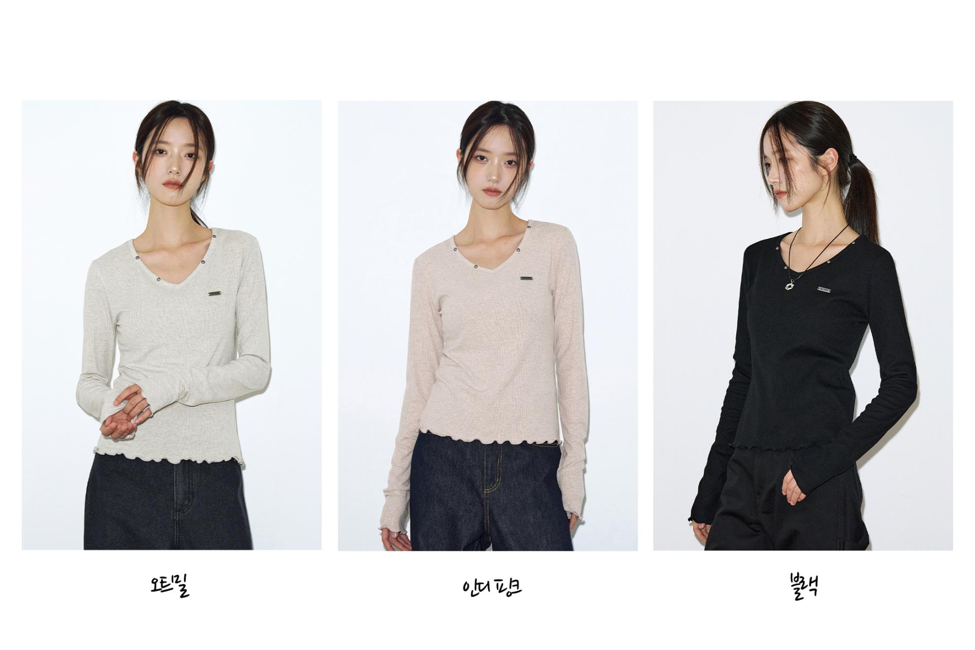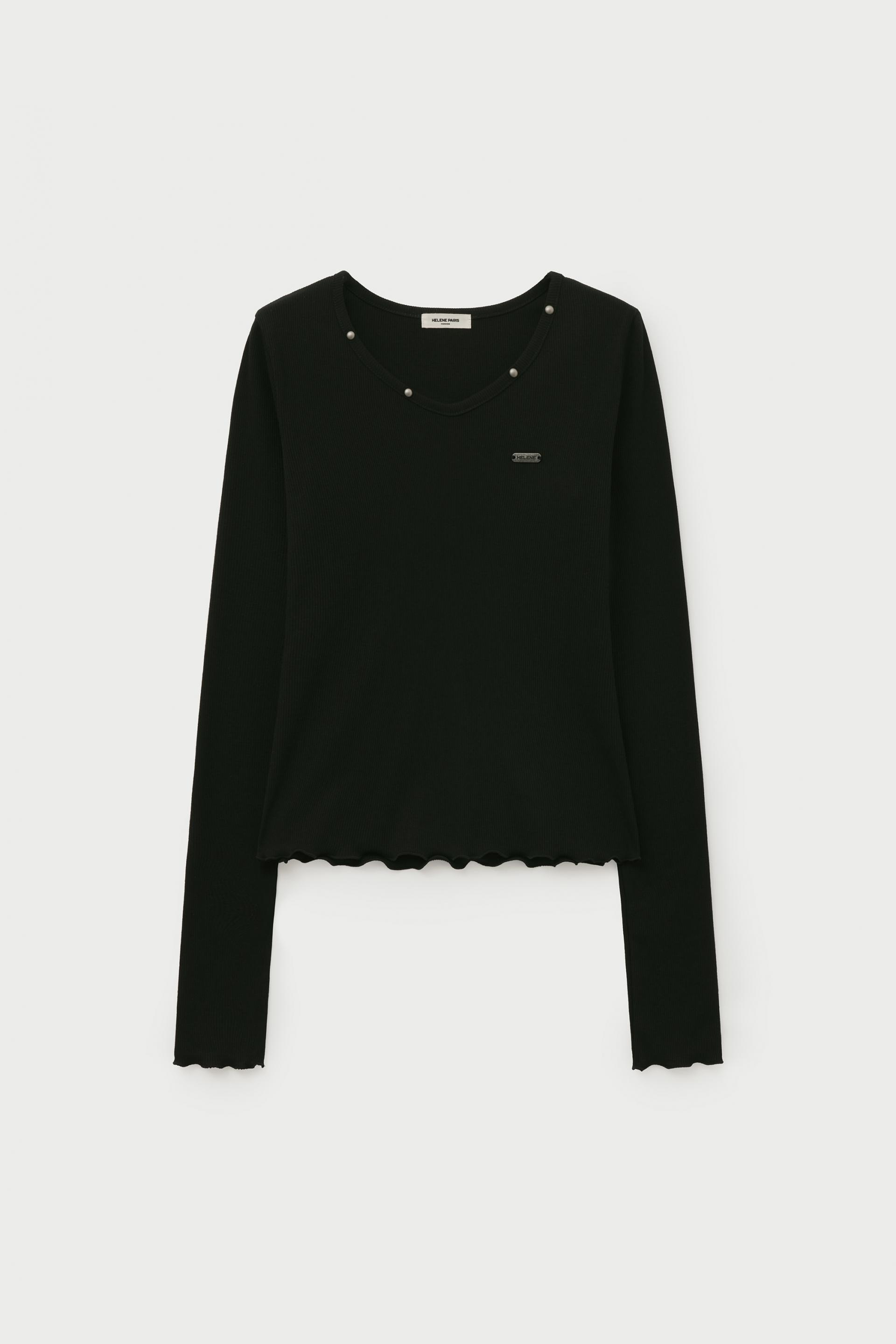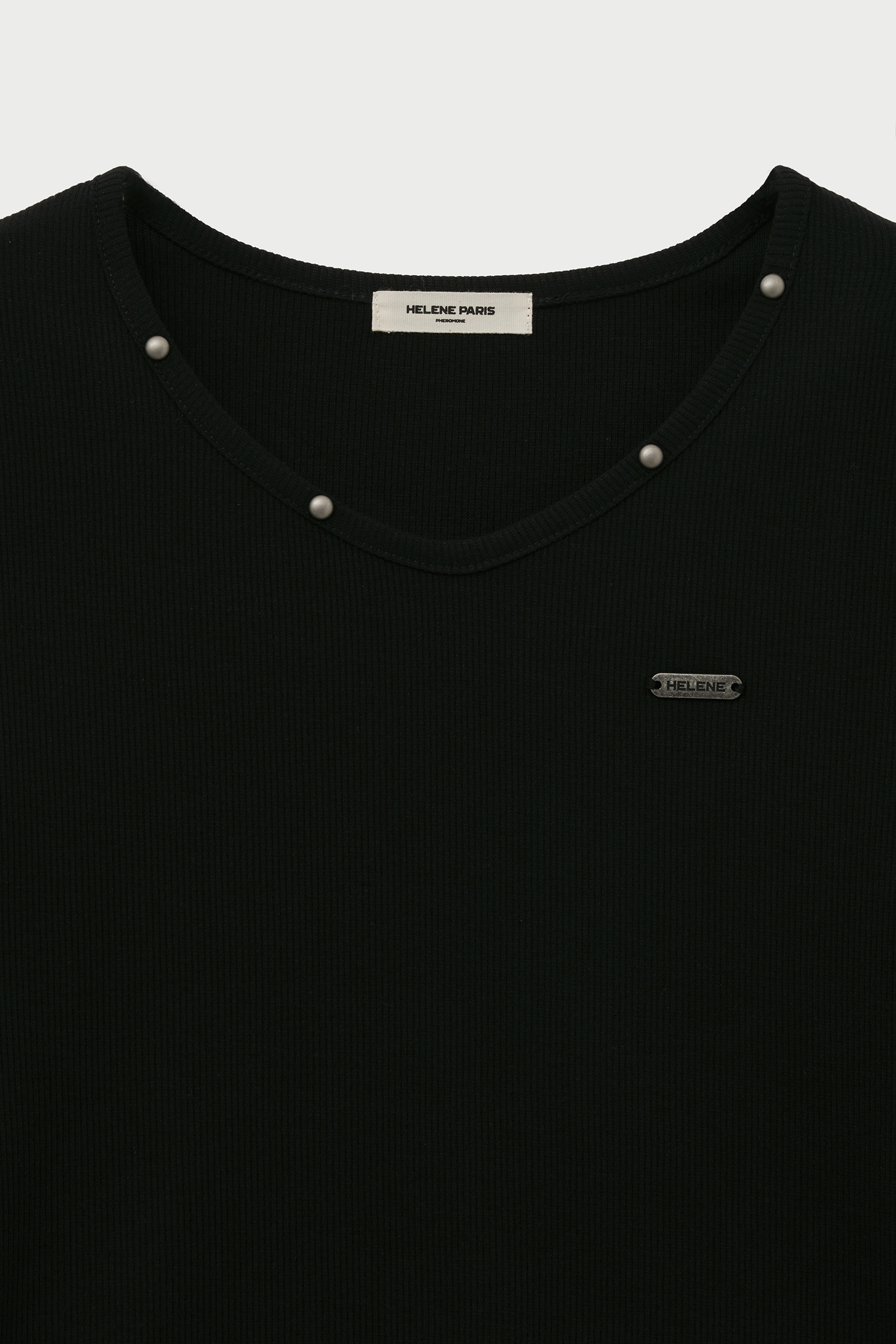 브이넥 리브드 스터드 트리밍 티셔츠 [블랙]