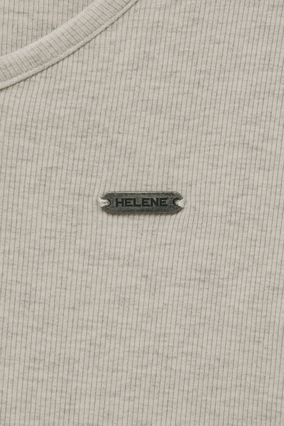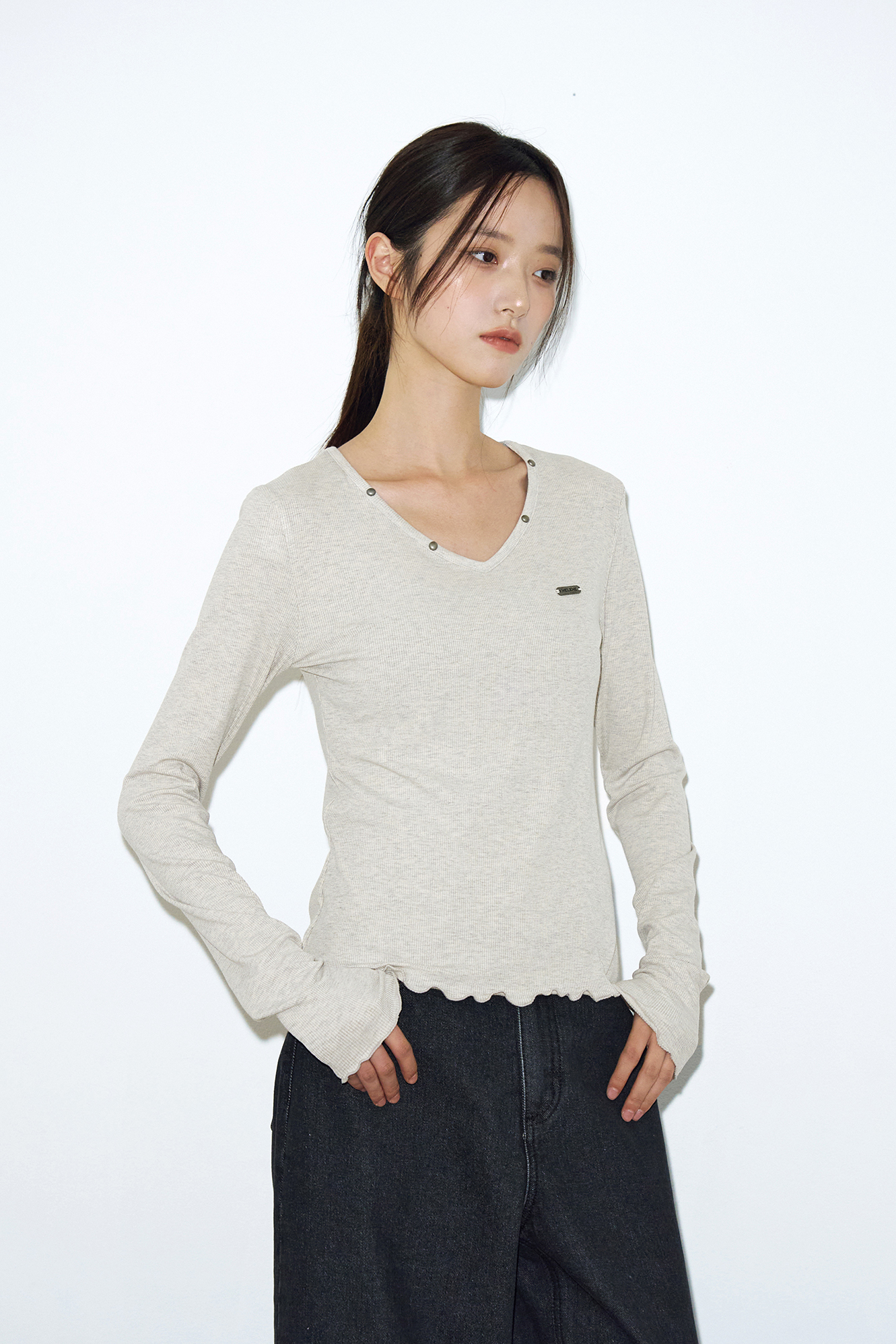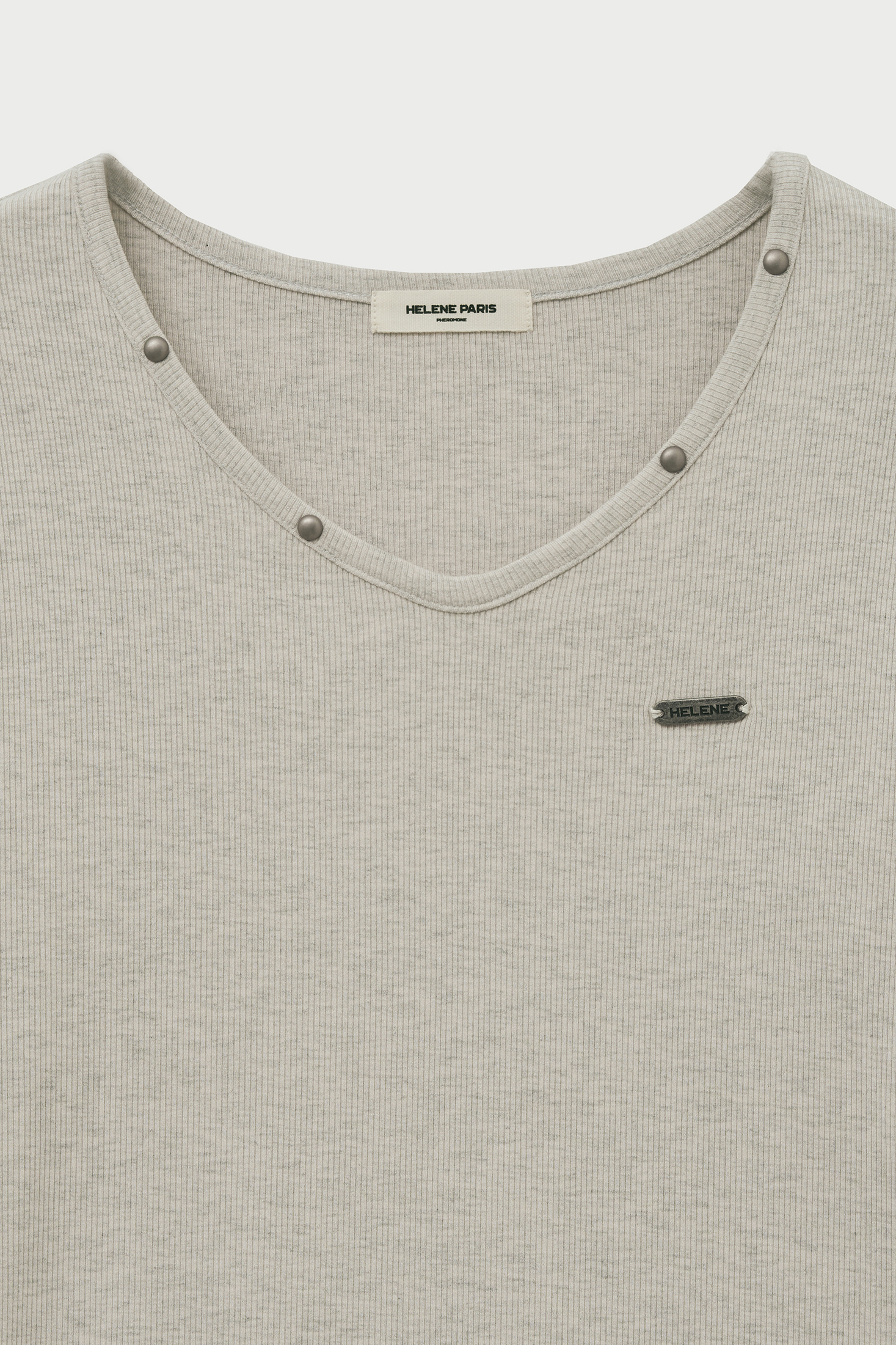 브이넥 리브드 스터드 트리밍 티셔츠 [오트밀]